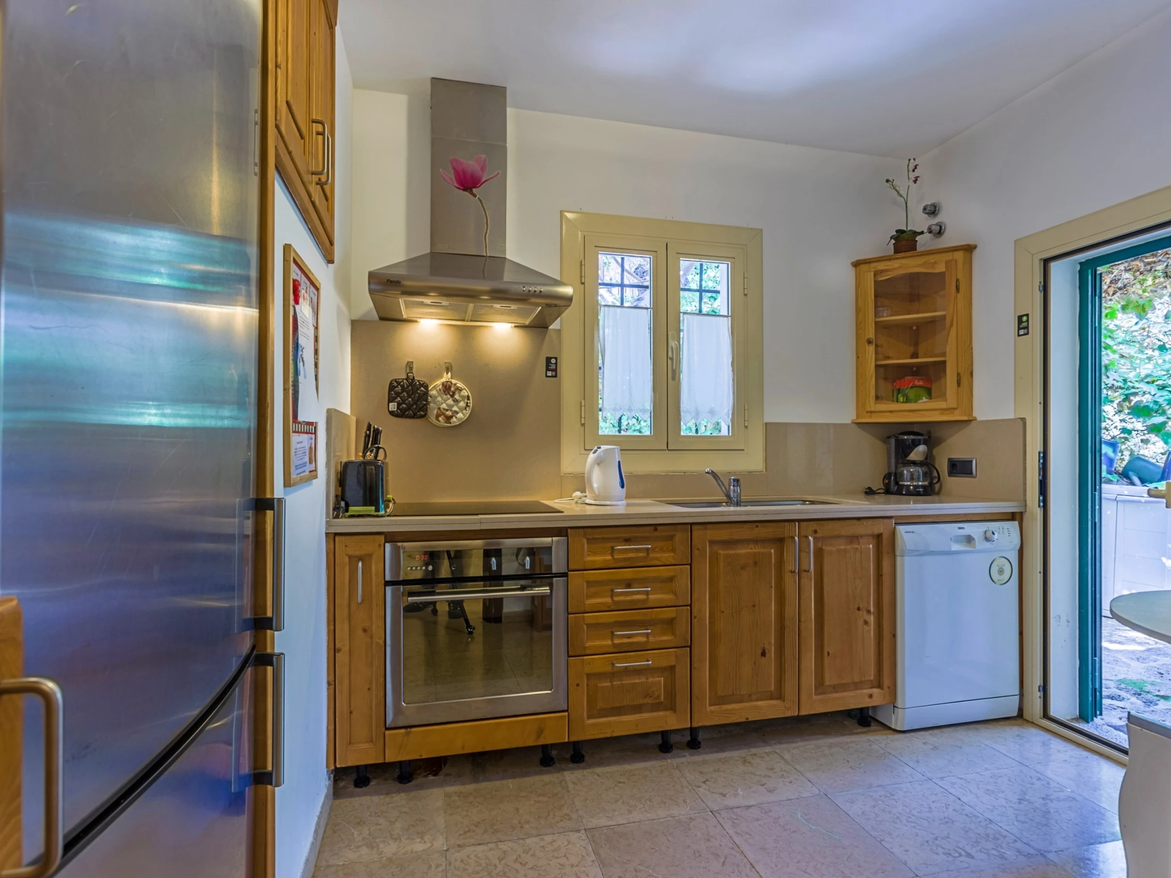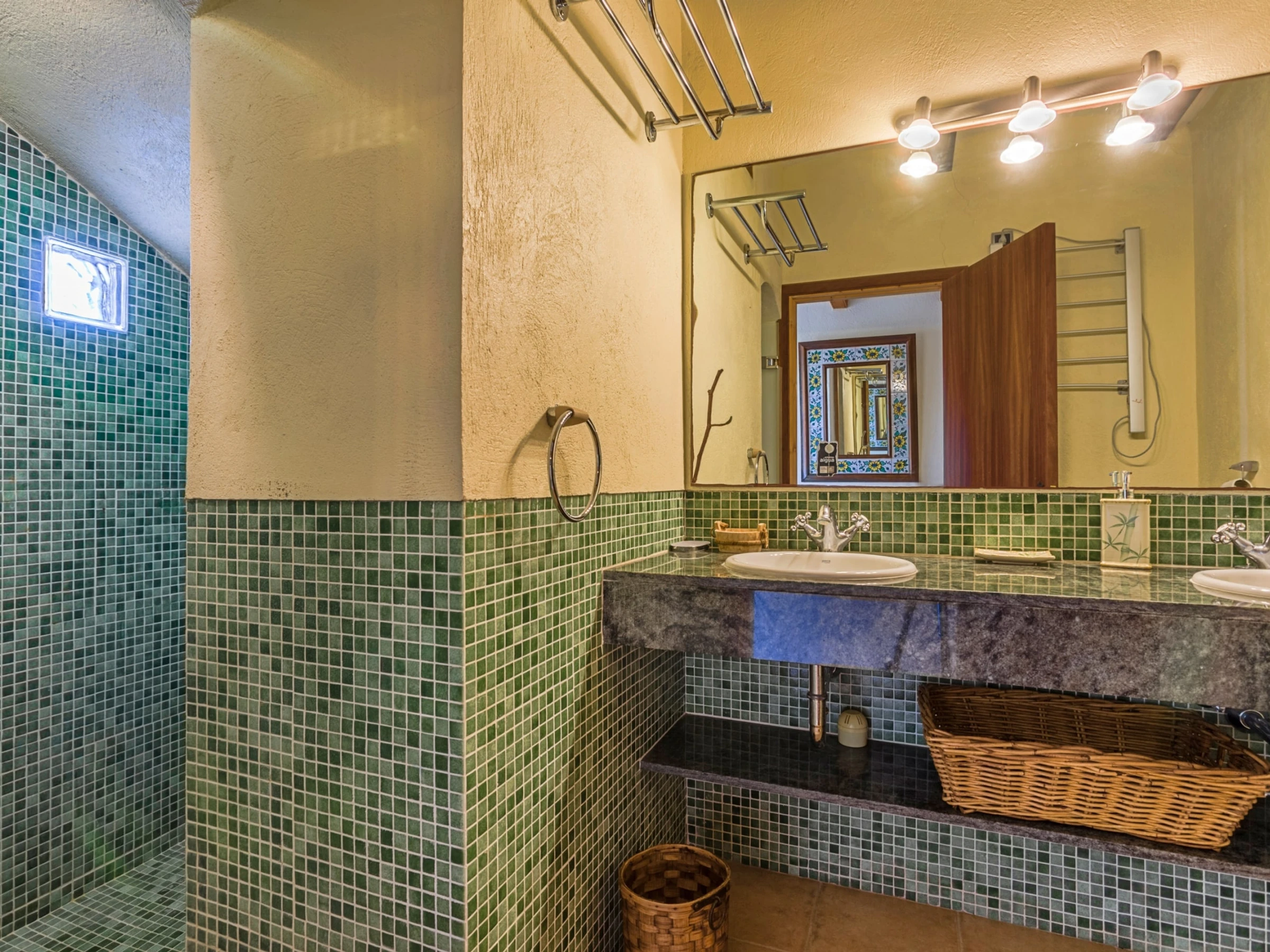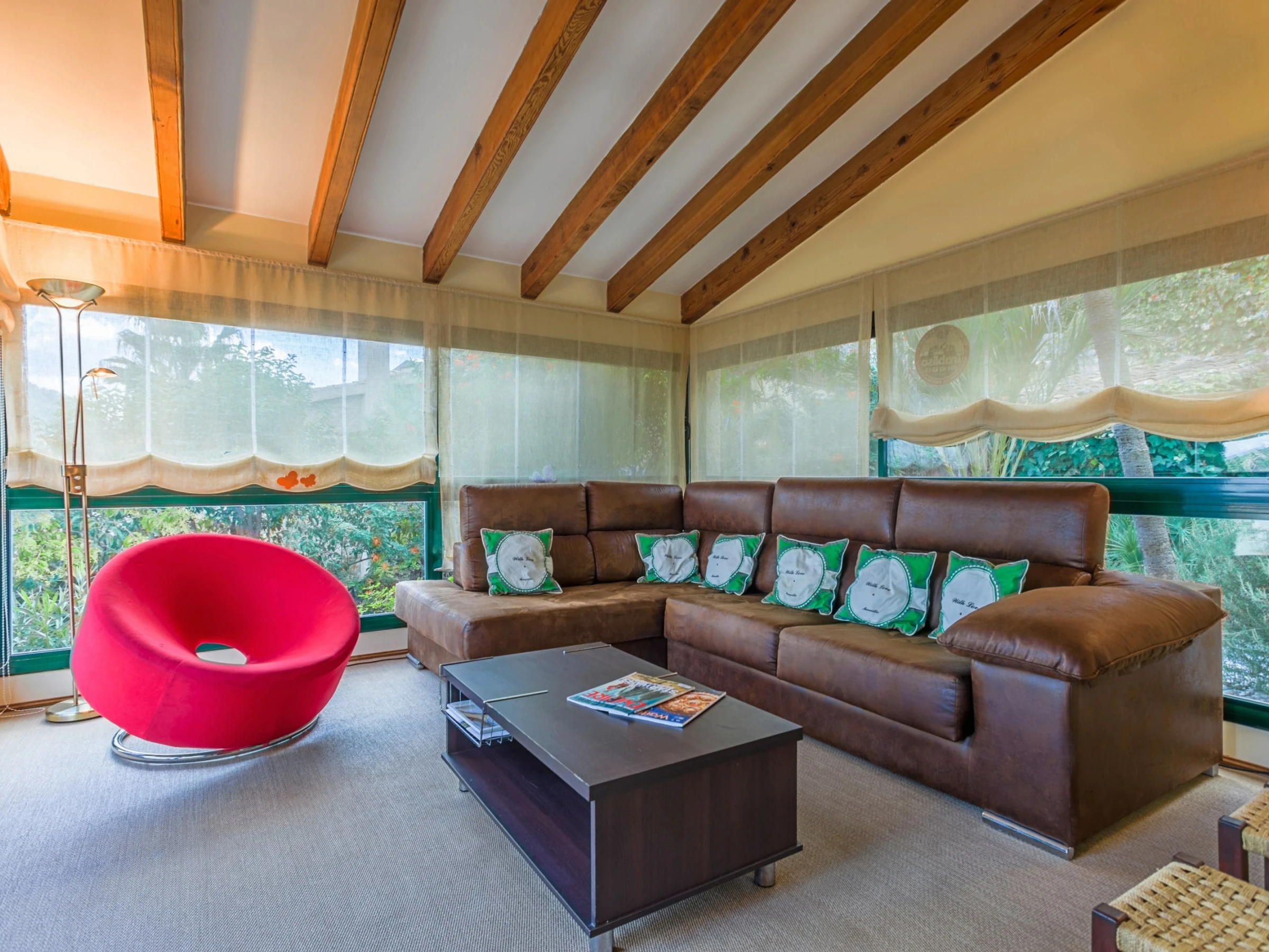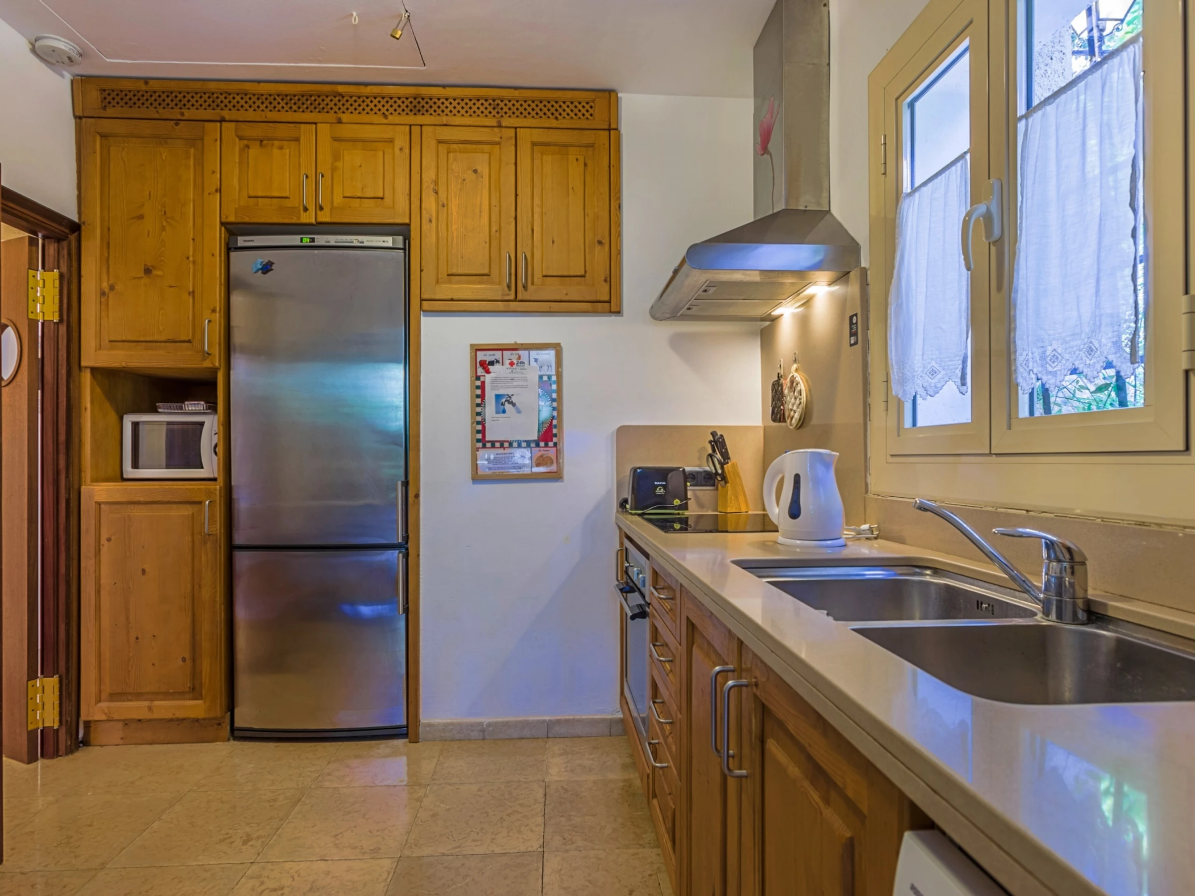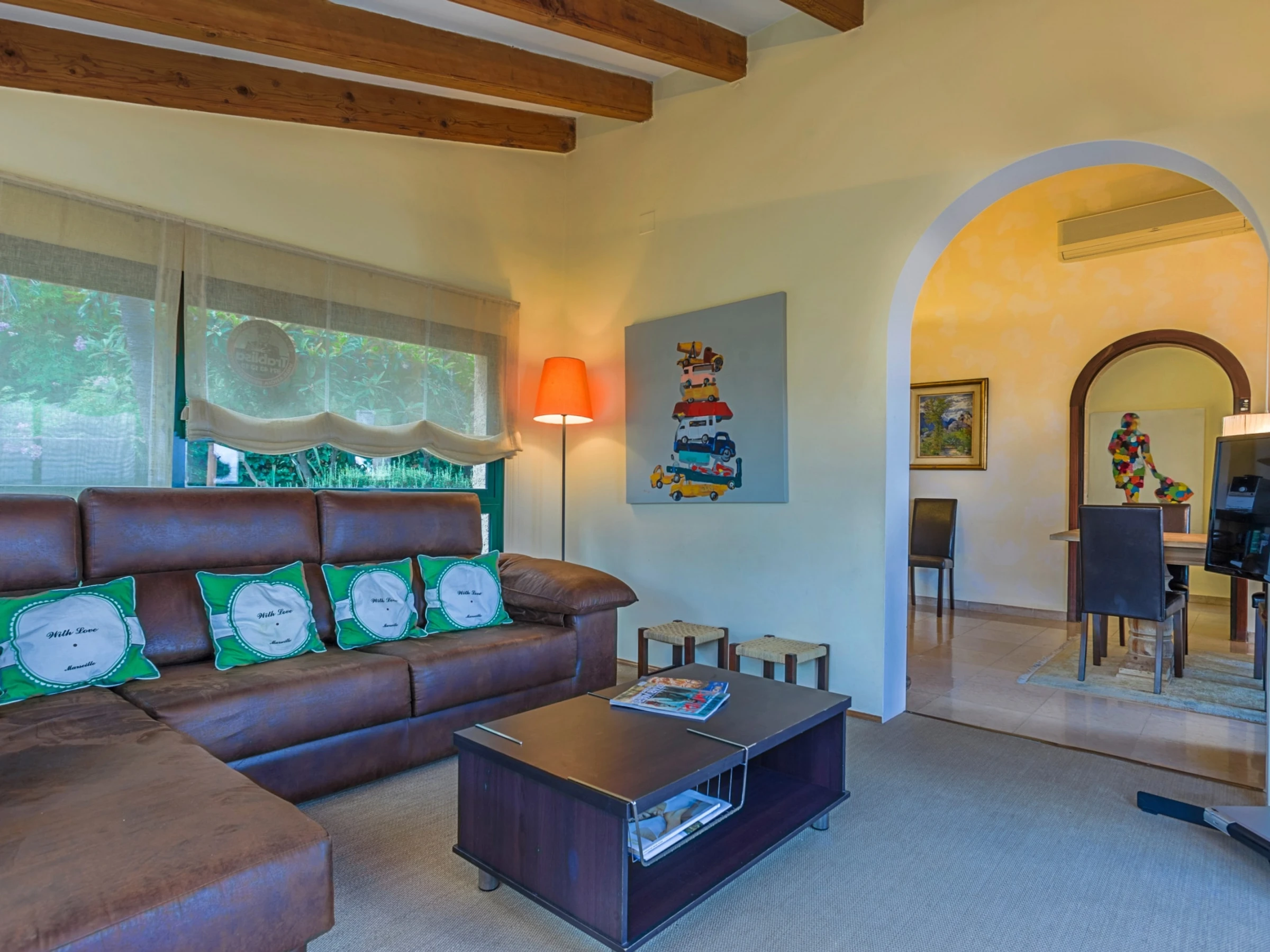 Desde la puerta de entrada, unos escalones conducen a un patio, con una encantadora zona de estar y un jardín. La puerta principal conduce al comedor, con paredes bellamente decoradas y grandes ventanales franceses que dan a la terraza. Desde el comedor, un arco conduce al amplio y luminoso salón con grandes ventanales que ofrecen hermosas vistas de la ciudad de Pollensa. La cocina independiente, totalmente equipada, tiene una puerta que da a una terraza cubierta (pérgola) que proporciona acceso directo a la zona de barbacoa y piscina (a través de unos escalones). Justo al lado del pasillo, hay una habitación doble y una habitación con dos camas individuales. Ambas habitaciones comparten un amplio vestidor y un baño completo. Más abajo, por los escalones de piedra exteriores, se accede a una habitación con dos camas individuales que tiene un baño completo con ducha y acceso directo a la terraza cubierta. También hay un segundo salón en este nivel, que una vez más disfruta de acceso directo a la terraza cubierta. Esta terraza está elegantemente amueblada con cómodos muebles de patio.