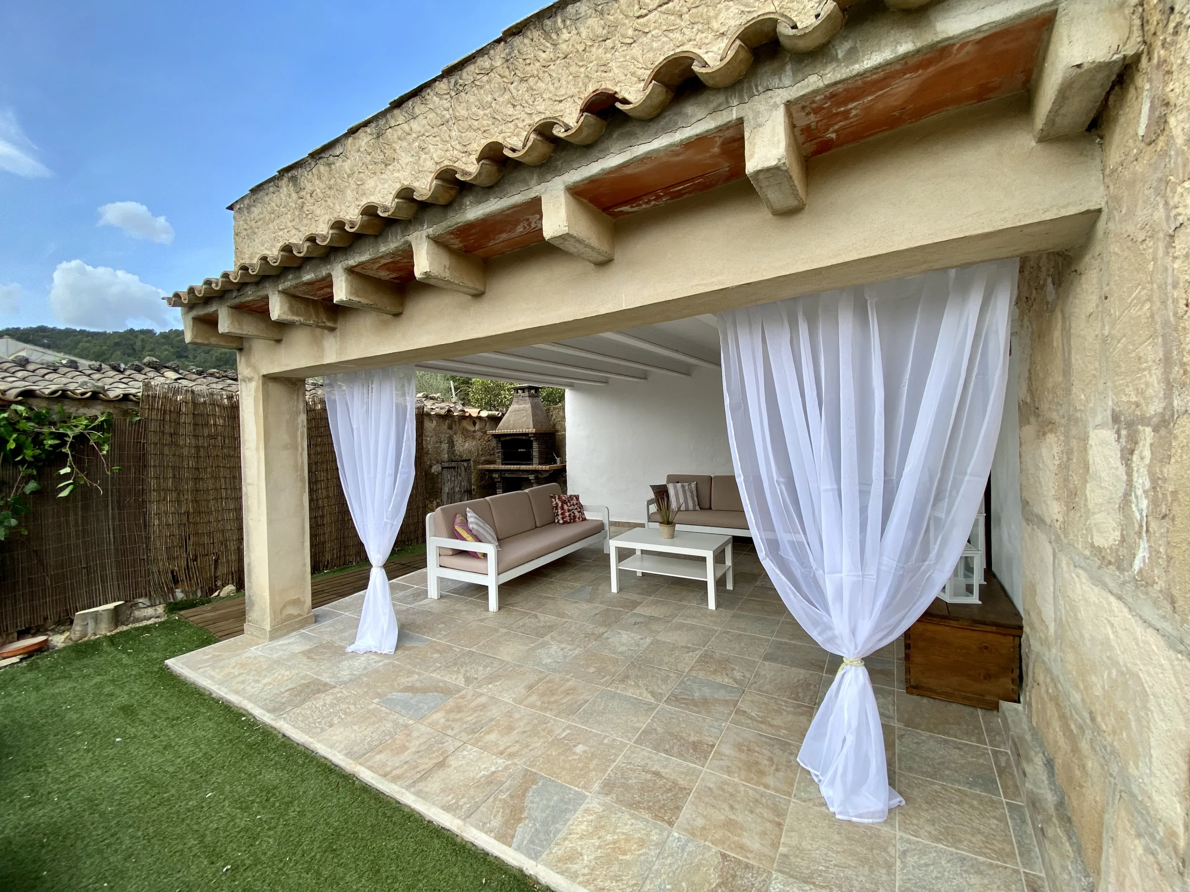 Una propiedad única en el pueblo de Pollença, ubicada a muy poca distancia del centro, a sólo un corto paseo de la plaza principal. La casa ha sido cuidadosamente restaurada, conservando el suelo original de terracota y las vigas de madera en toda la propiedad. Cuenta con un gran y bonito jardín y zona de aparcamiento. Justo en el centro del jardín, se encuentra un moderno jacuzzi y tumbonas a su alrededor, y junto a éste hay una mesa con sillas, ideal para comer al aire libre. Hay una terraza cubierta independiente con cómodos asientos junto a la barbacoa de obra, y otro bonito rincón con mecedoras tradicionales mallorquinas, a la sombra de una pérgola.