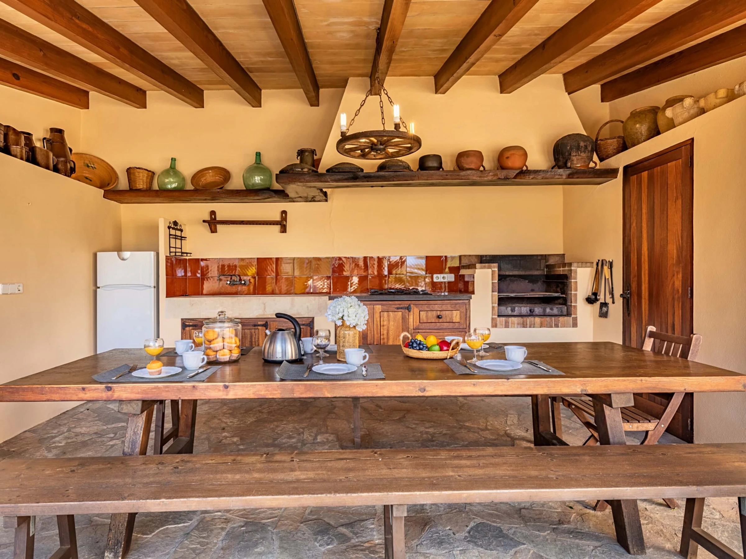 En el exterior destaca la gran piscina estilo romano con tumbonas, una cocina de verano equipada y una barbacoa, perfectas para cenas al aire libre. Los amplios jardines invitan a pasear o simplemente relajarse.