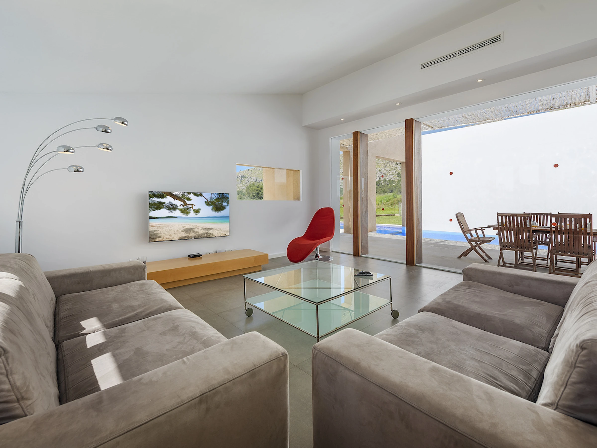 Ubicada en la exclusiva urbanización El Vila, entre Pollença y Puerto Pollença, esta villa contemporánea combina el diseño moderno con materiales naturales. Rodeada de paisajes impresionantes, ofrece vistas impresionantes de las montañas y el campo.