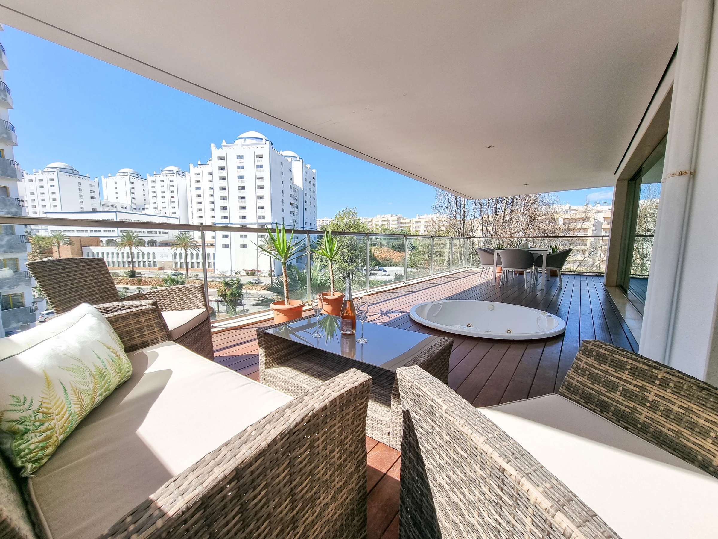 Lujoso Apartamento T3 amueblado y equipado para vacaciones en Praia da Rocha, insertado en un condominio único que se distingue por el confort y el ocio en un solo lugar que contribuyeron a que en 2010 ganara el premio de "Mejor Edificio Residencial del Algarve", con SPA en el interior del edificio (piscina interior, jacuzzi, sauna, sala de juegos y gimnasio), le proporciona toda la calidad de unas vacaciones inolvidables, así como la posibilidad de tener espacios sociales para divertirse y convivir.