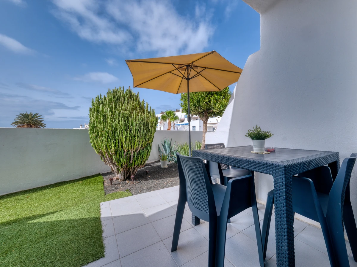 La terraza privada es uno de los rincones más agradables de la casa. Amueblada con mesa y sillas de exterior, es ideal para desayunar al aire libre, tomar el sol o relajarse al atardecer con una copa de vino. Un espacio pensado para disfrutar del clima cálido de Lanzarote en total tranquilidad.