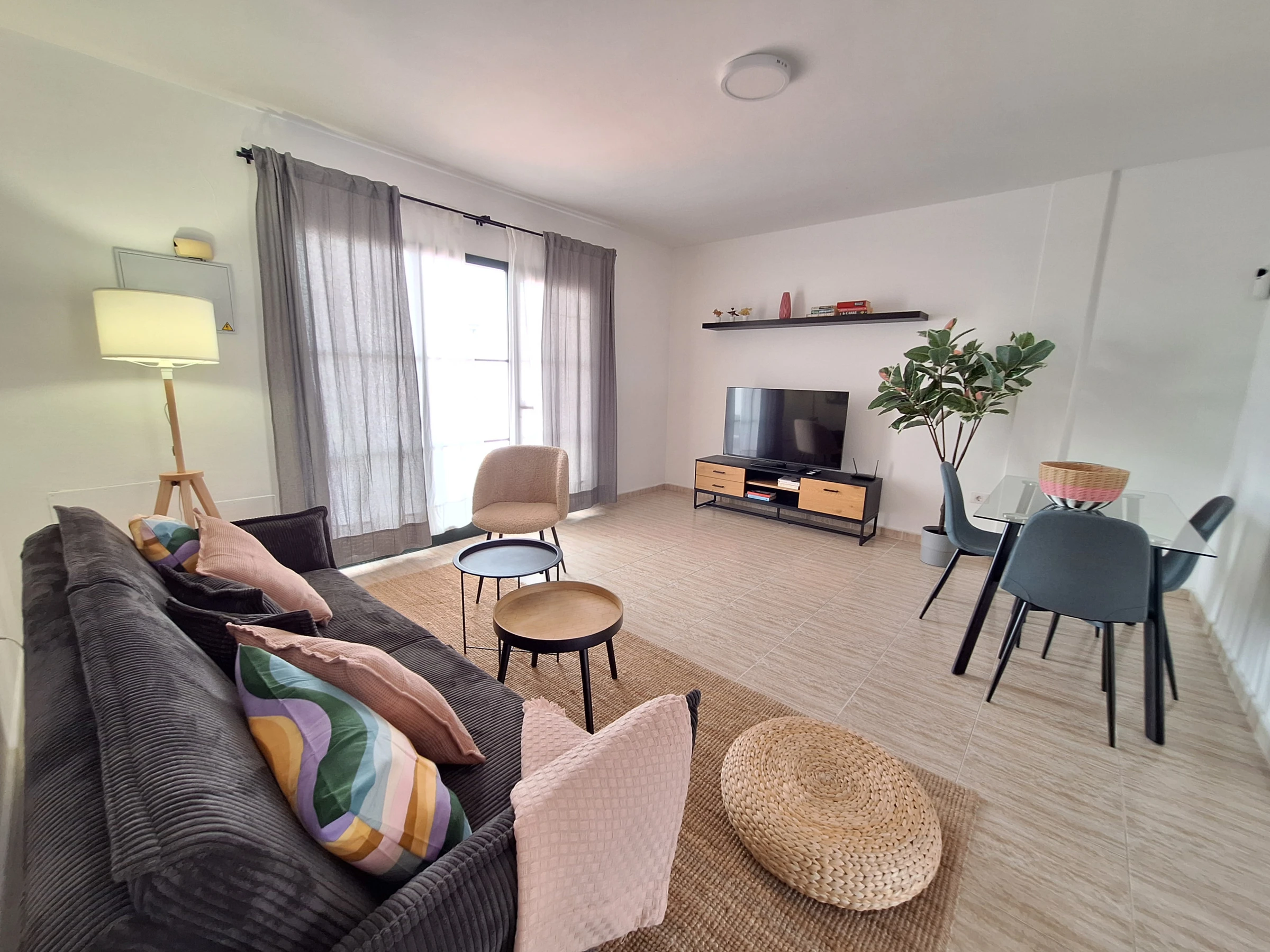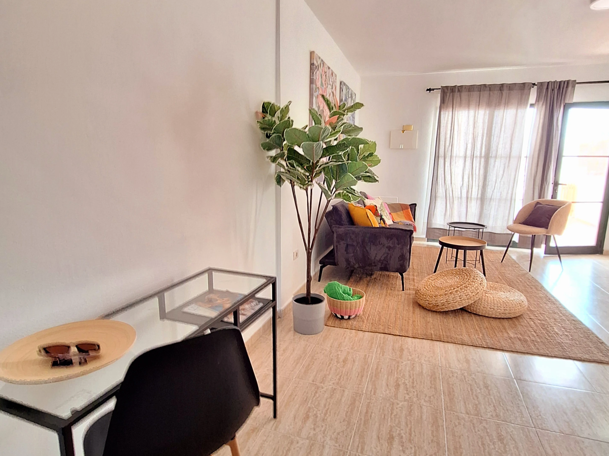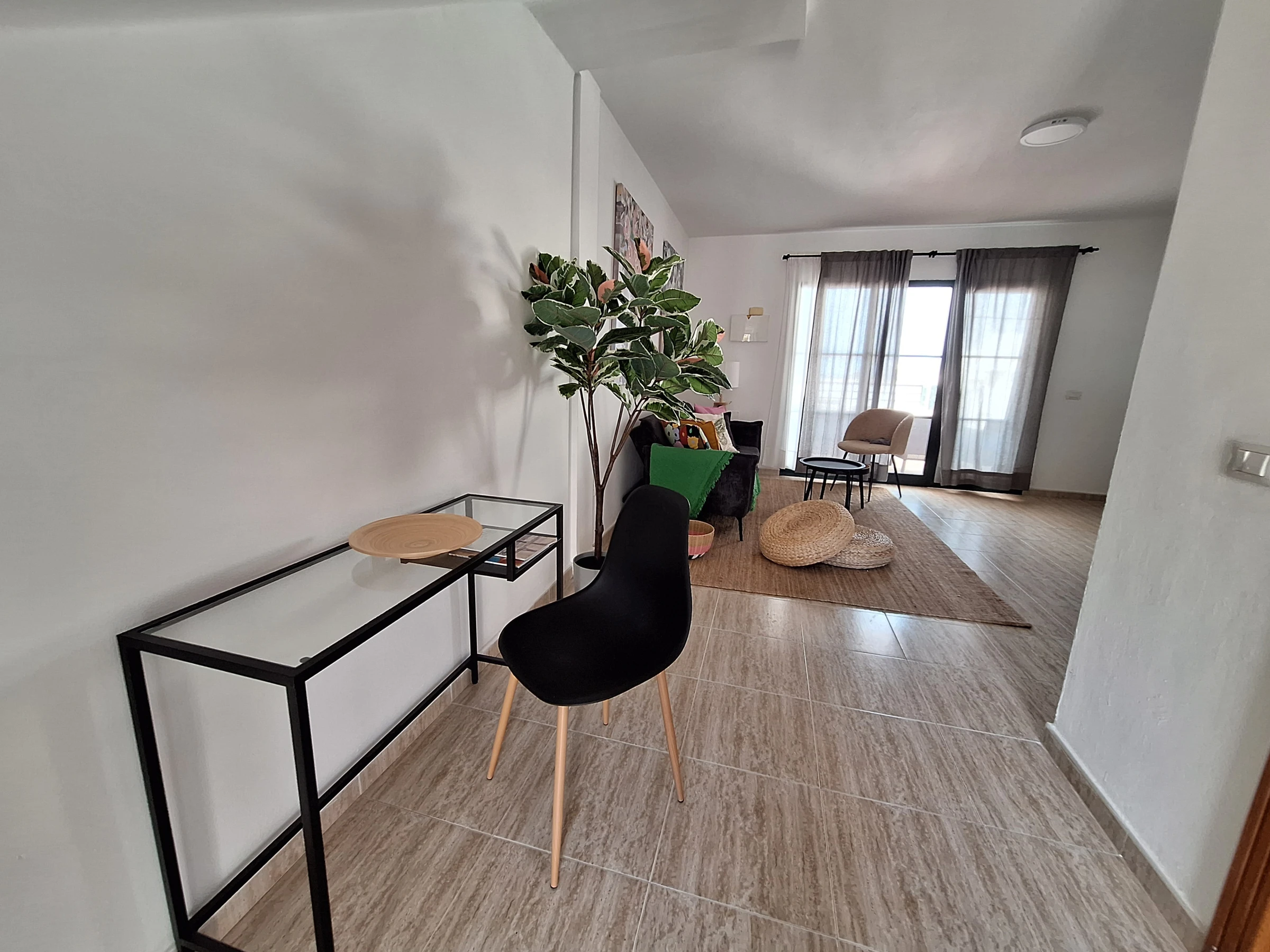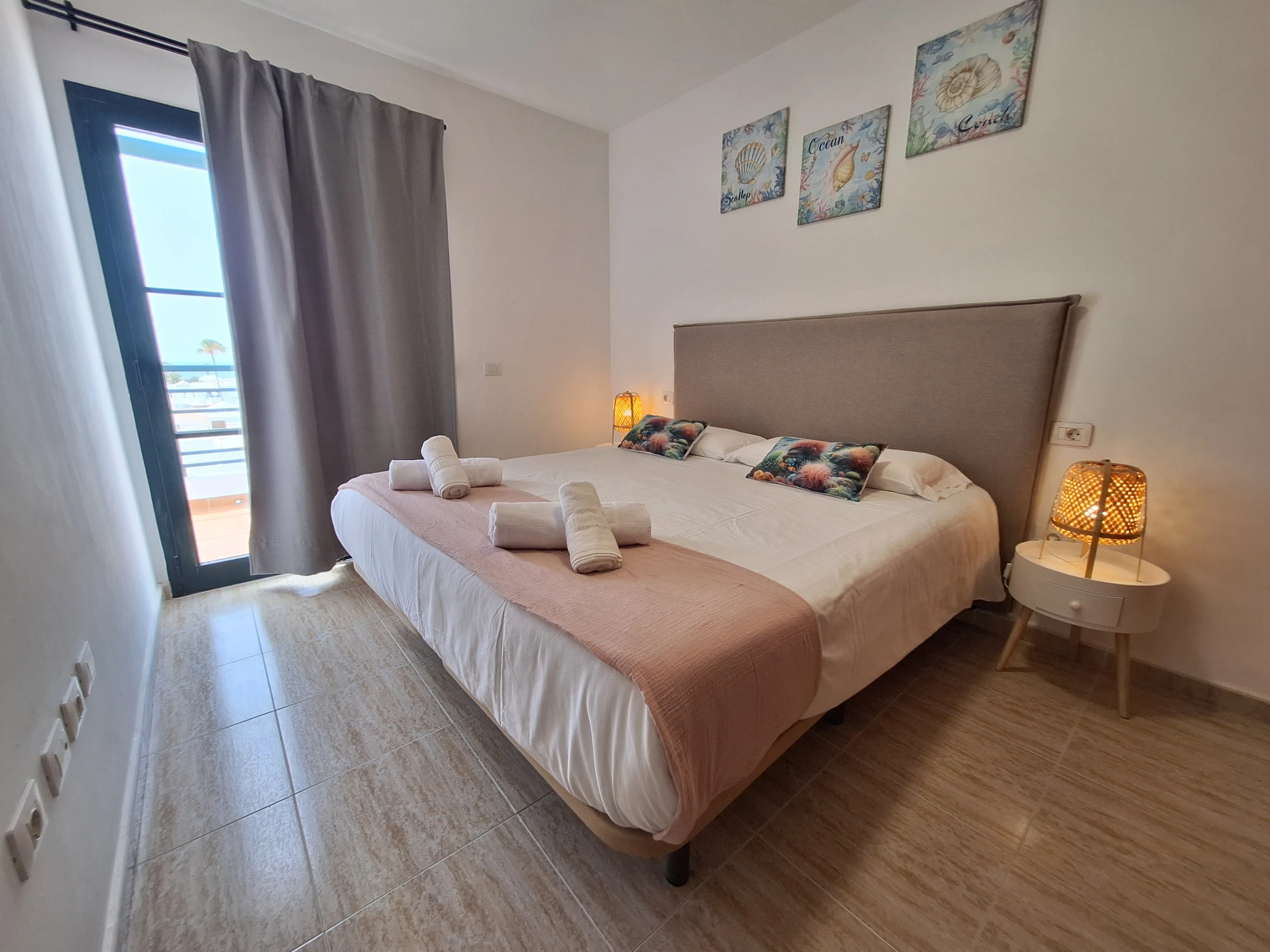 Nuestros modernos dúplex ofrecen un amplio espacio para disfrutar de tus vacaciones con total comodidad. En la planta baja, encontrará una cocina totalmente reformada, equipada con menaje y electrodomésticos propios de un hogar. El amplio salón-comedor, con acceso a una terraza amueblada, es el lugar perfecto para disfrutar de momentos de tranquilidad y compañía. Además, en este espacio exterior, podrás relajarte en una piscina privada de 3 x 3. La planta baja cuenta con un baño completo con ducha. En la planta alta, a la que se accede por escaleras internas, se encuentran tres dormitorios. Disponen de una cama de matrimonio con ropero empotrado. El segundo dormitorio cuenta con dos camas individuales de 90 cm y ropero empotrado, y el tercero tiene una cama individual de 90 cm. Además, en esta planta se encuentra un baño completo con ducha y un balcón con vistas al mar. Este dúplex tiene capacidad para hasta 5 personas más un bebé (cuna disponible bajo previa petición). No dispone de camas supletorias ni sofá cama. Entre otros servicios, el alojamiento ofrece Wi-Fi gratuito en las instalaciones, y fácil aparcamiento (no privado). Los dúplex no dispone de aire acondicionado, ventiladores ni calefactores. Ideal para familias, grupos de amigos y trabajadores en remoto.