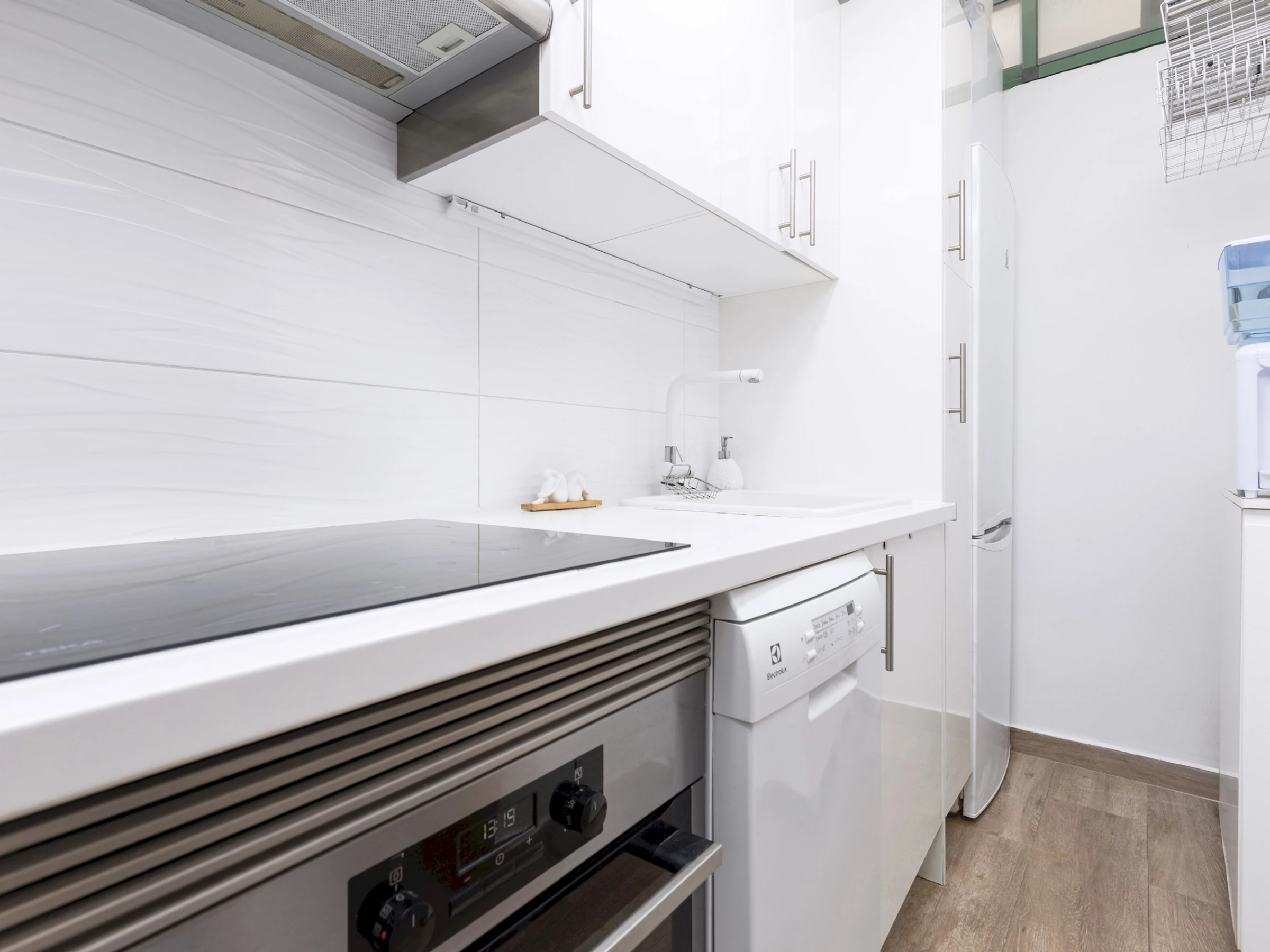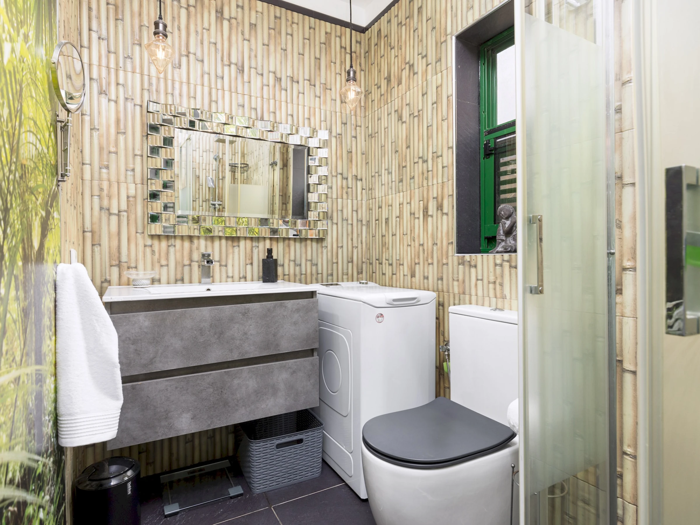 Distribuido en dos plantas, el piso inferior cuenta con una amplia terraza privada, perfecta para relajarse al aire libre, un salón-comedor luminoso con Smart TV, una cocina completamente equipada con electrodomésticos modernos y televisión, y un aseo adicional para mayor comodidad.