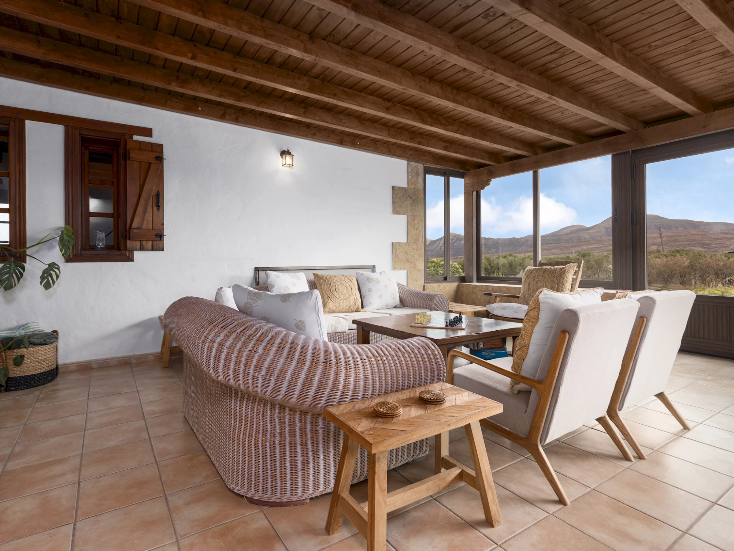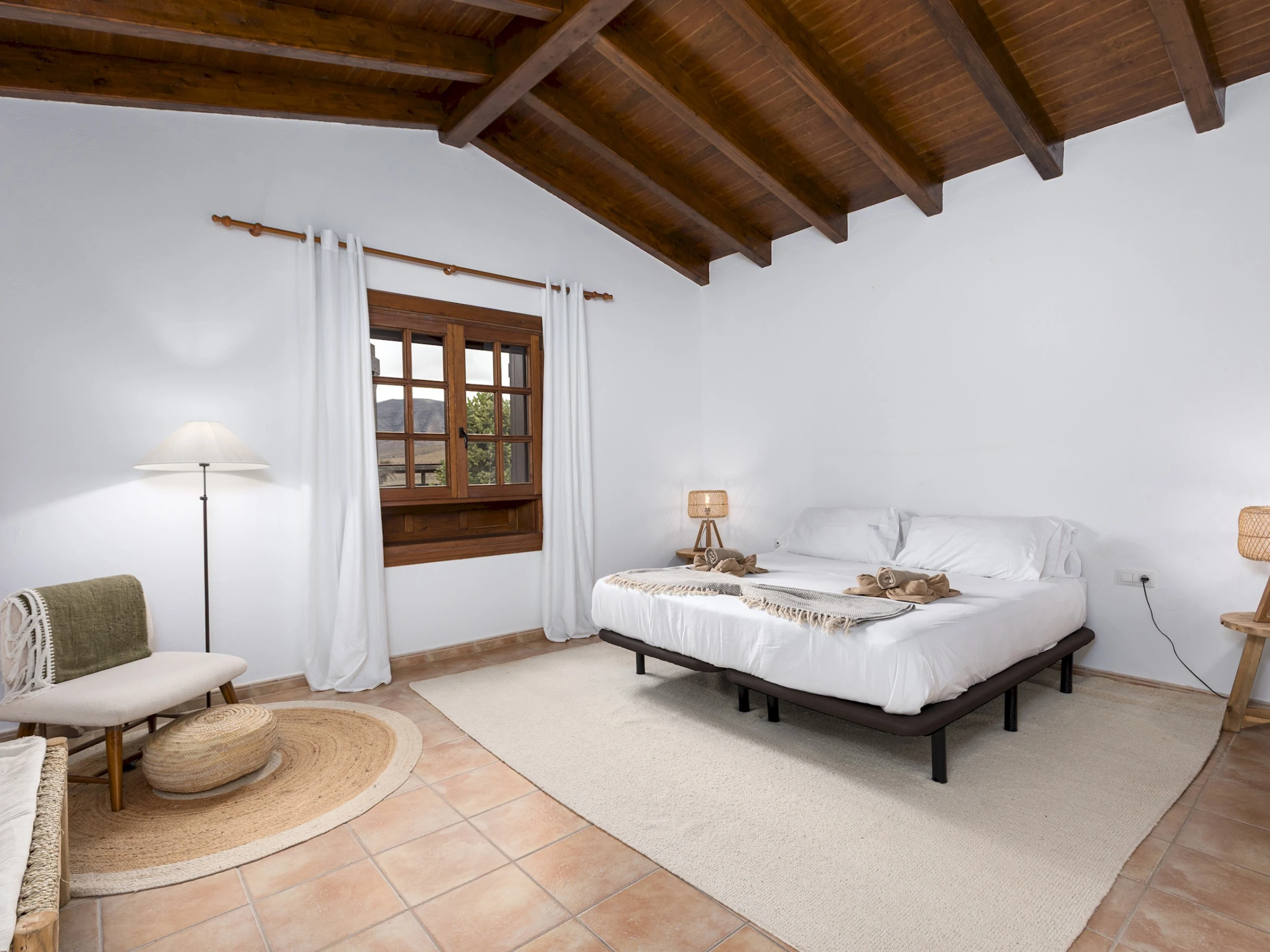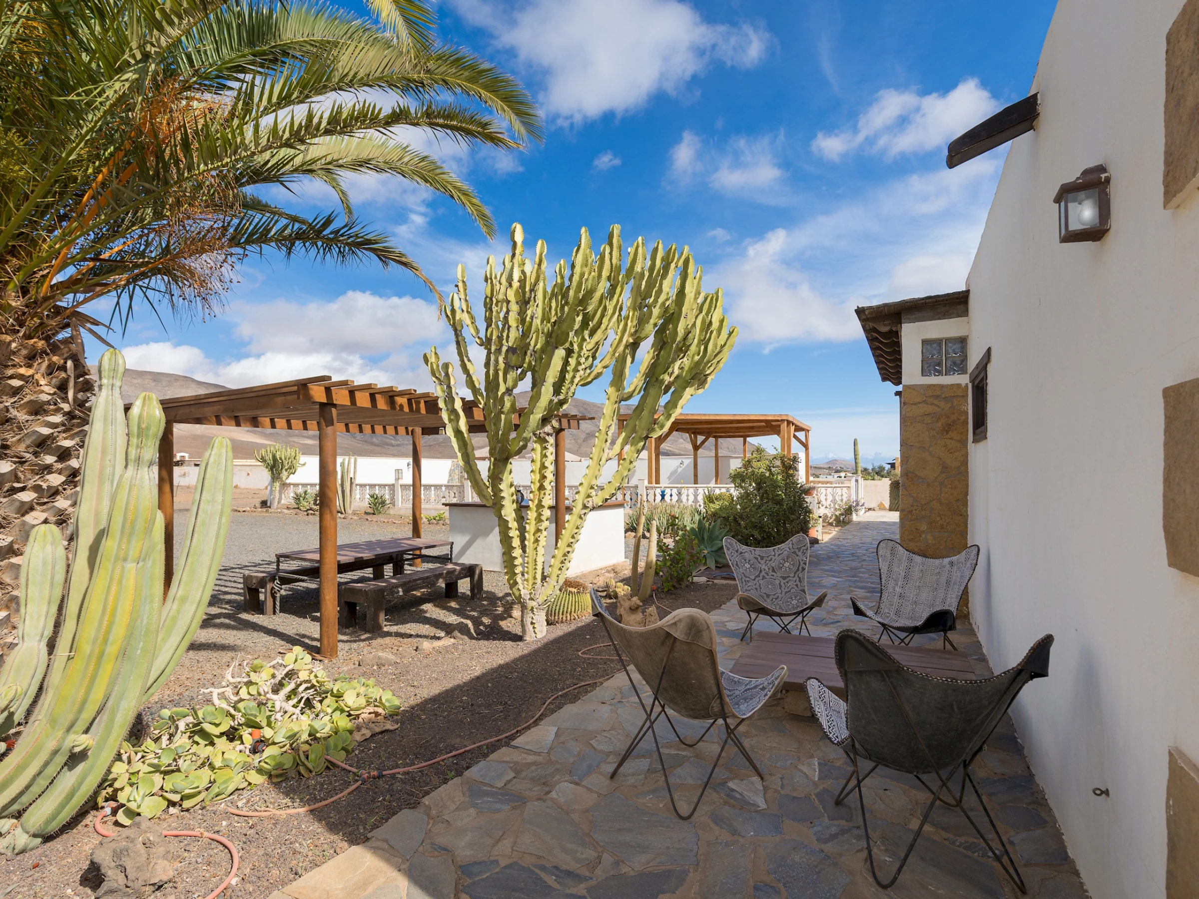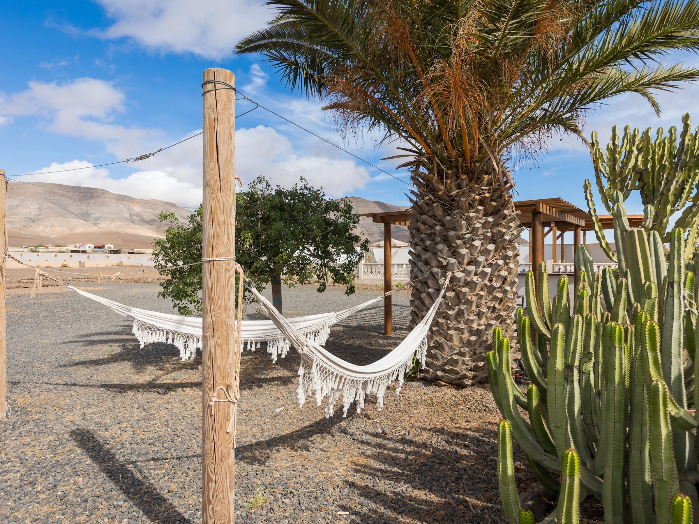 Situada en Casillas del Ángel, una tranquila localidad del interior de Fuerteventura, la casa se encuentra rodeada de montañas y paisajes áridos típicos de la isla. A tan solo 10 minutos en coche se llega a Puerto del Rosario, donde se concentran tiendas, restaurantes y todos los servicios. La ubicación ofrece fácil acceso a las playas del este y al centro de la isla, ideal para explorar rincones naturales como Betancuria o las playas de El Castillo y Corralejo.