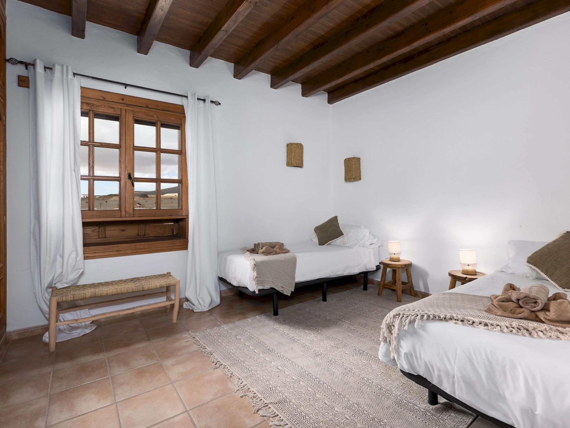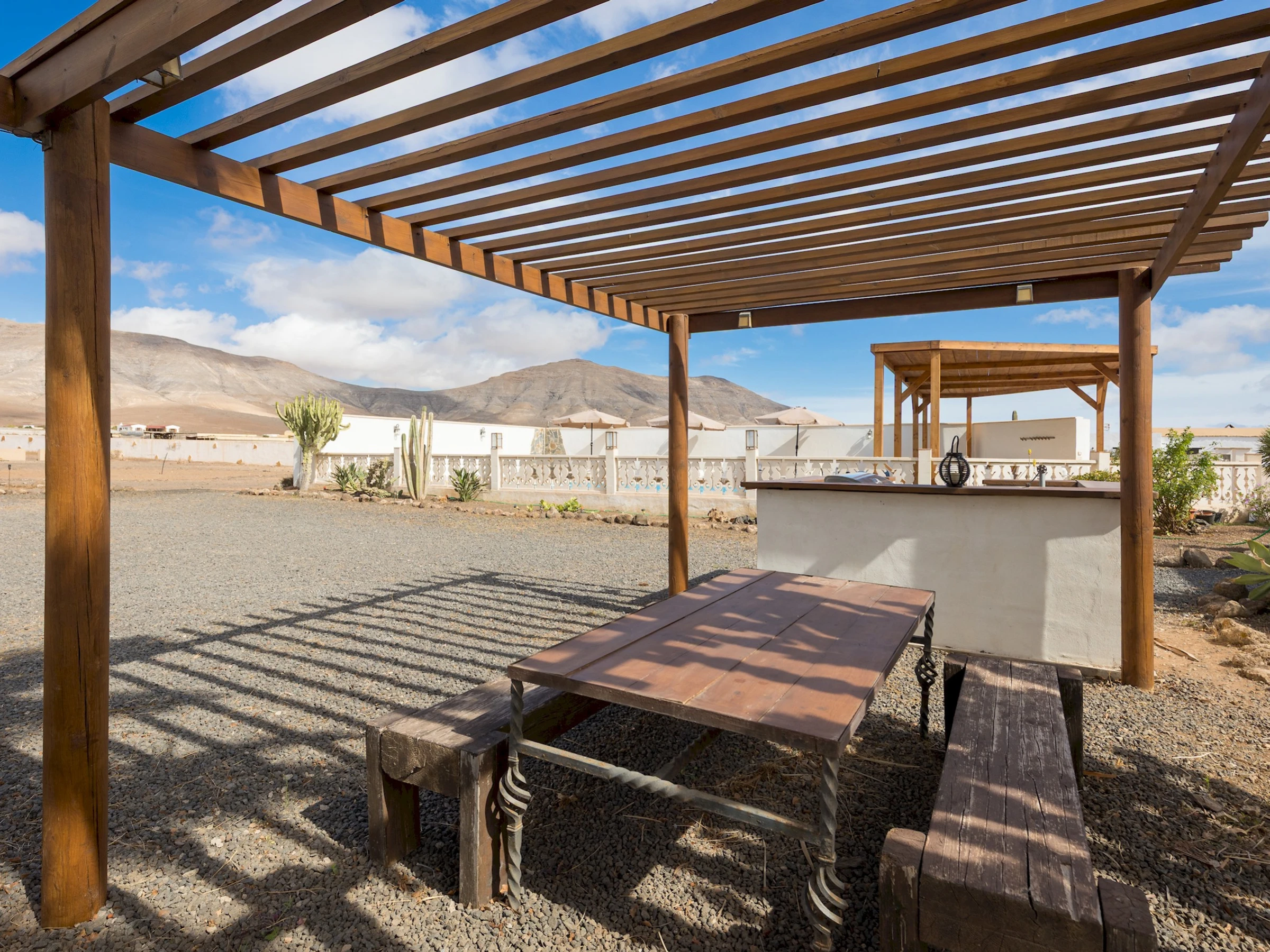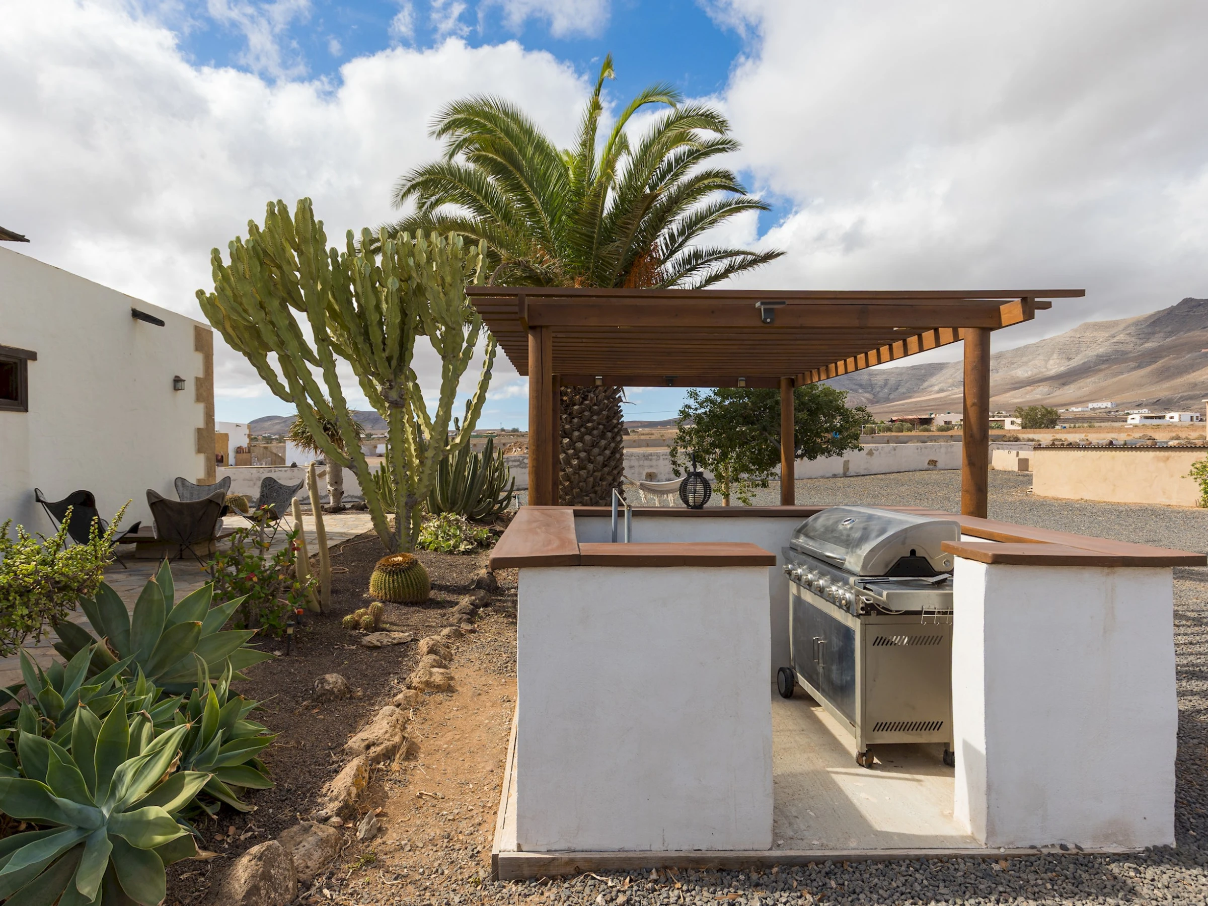 Situada en Casillas del Ángel, una tranquila localidad del interior de Fuerteventura, la casa se encuentra rodeada de montañas y paisajes áridos típicos de la isla. A tan solo 10 minutos en coche se llega a Puerto del Rosario, donde se concentran tiendas, restaurantes y todos los servicios. La ubicación ofrece fácil acceso a las playas del este y al centro de la isla, ideal para explorar rincones naturales como Betancuria o las playas de El Castillo y Corralejo.