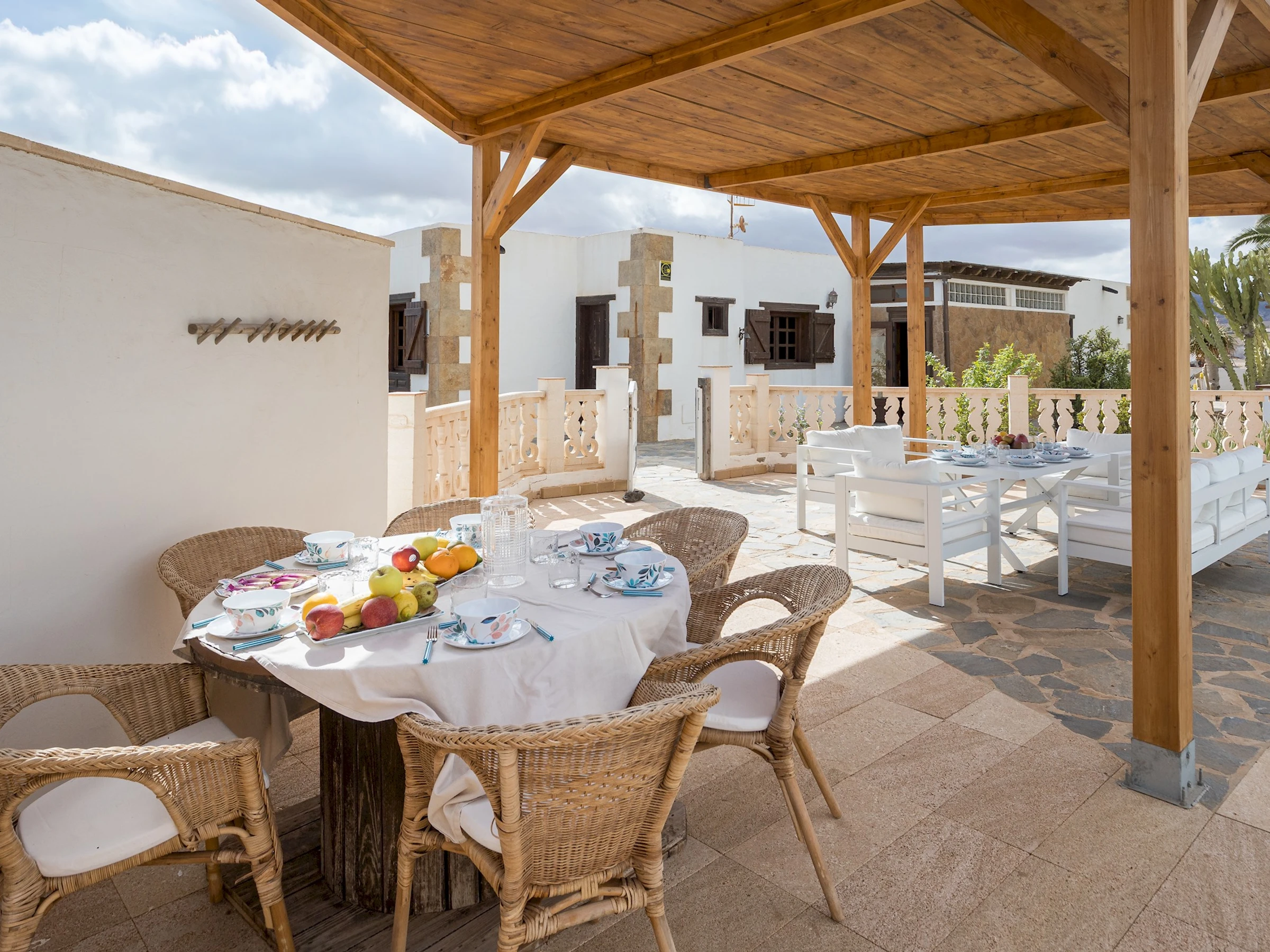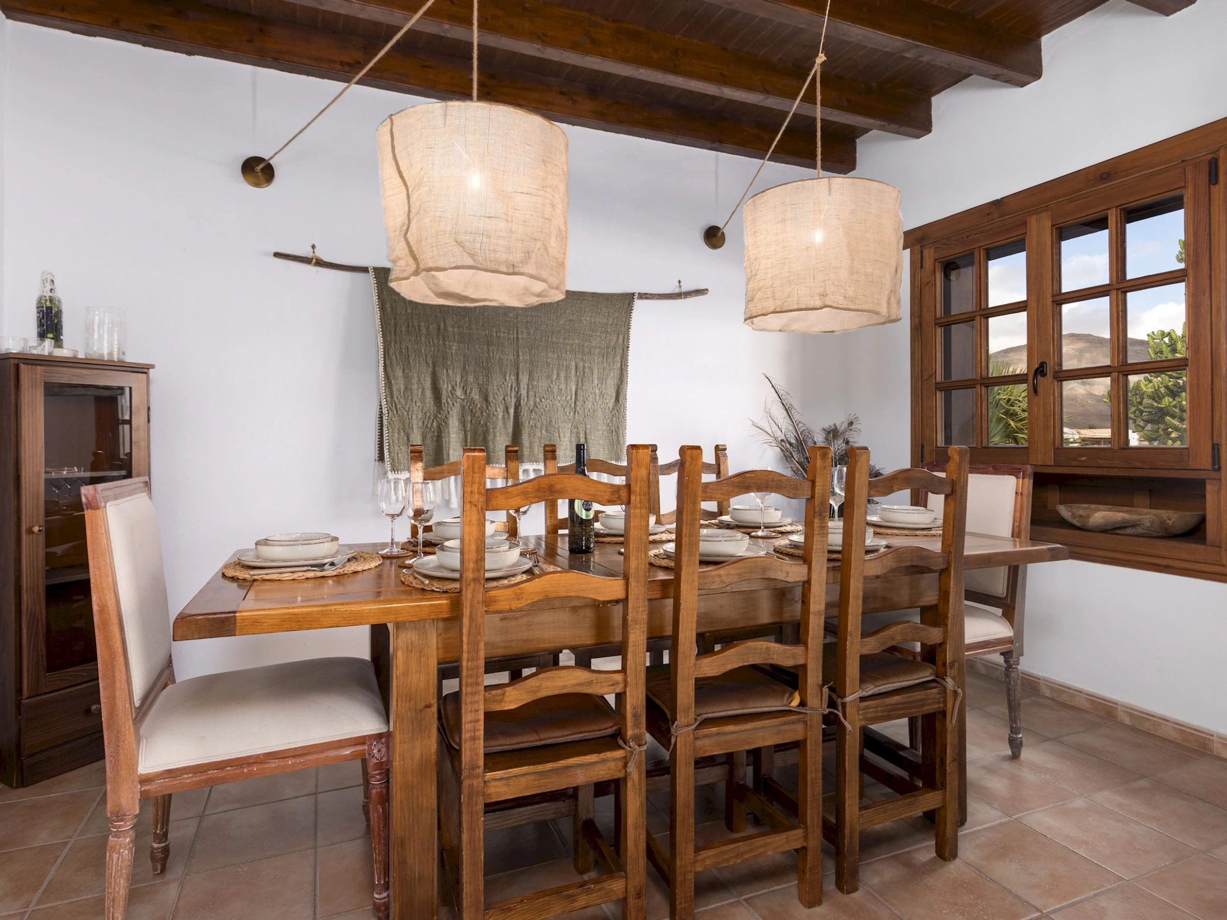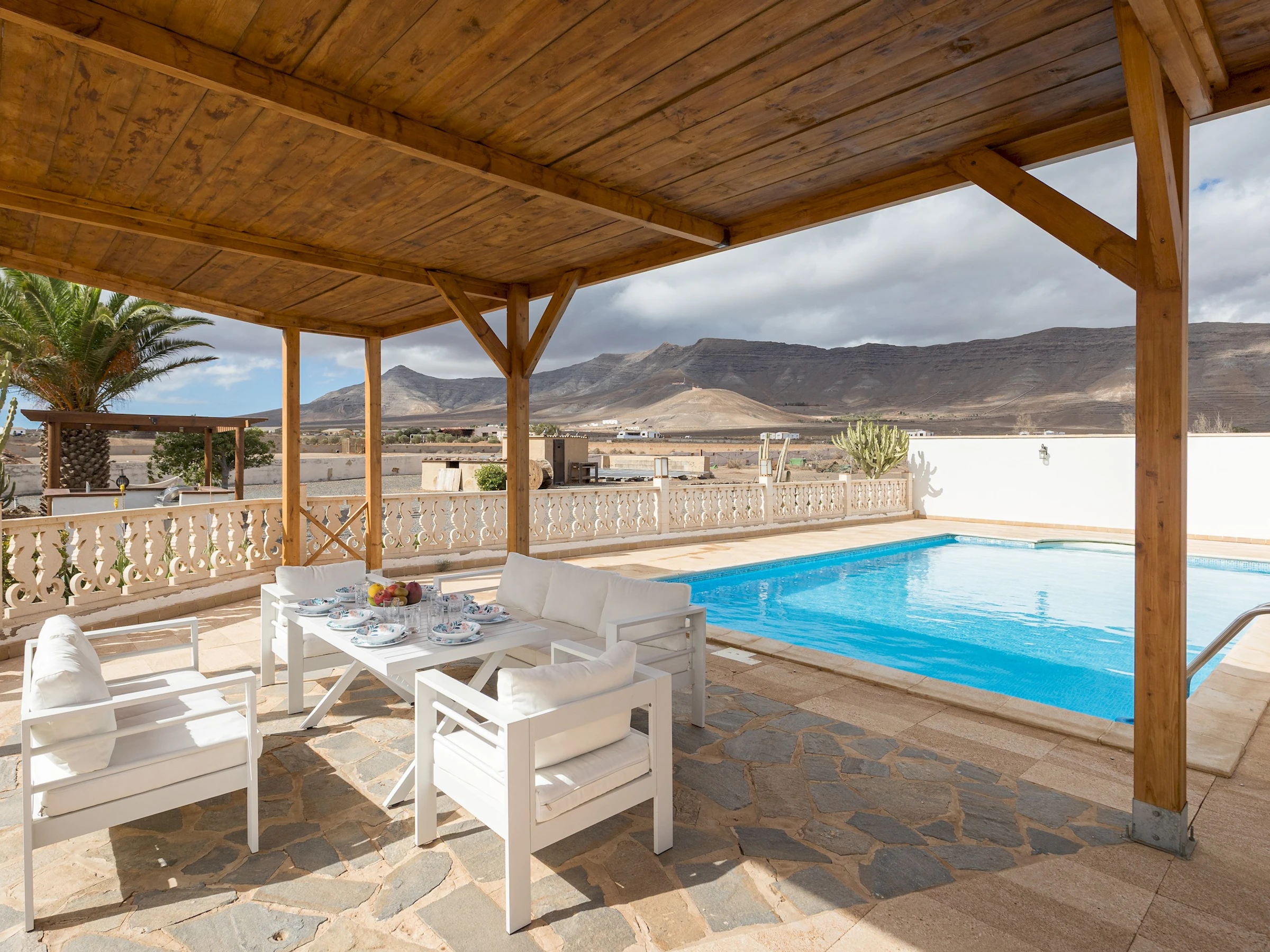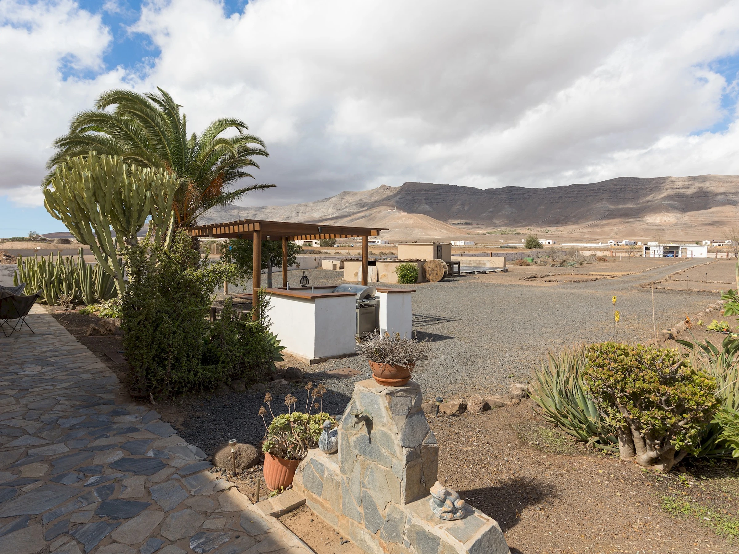 Situada en Casillas del Ángel, una tranquila localidad del interior de Fuerteventura, la casa se encuentra rodeada de montañas y paisajes áridos típicos de la isla. A tan solo 10 minutos en coche se llega a Puerto del Rosario, donde se concentran tiendas, restaurantes y todos los servicios. La ubicación ofrece fácil acceso a las playas del este y al centro de la isla, ideal para explorar rincones naturales como Betancuria o las playas de El Castillo y Corralejo.