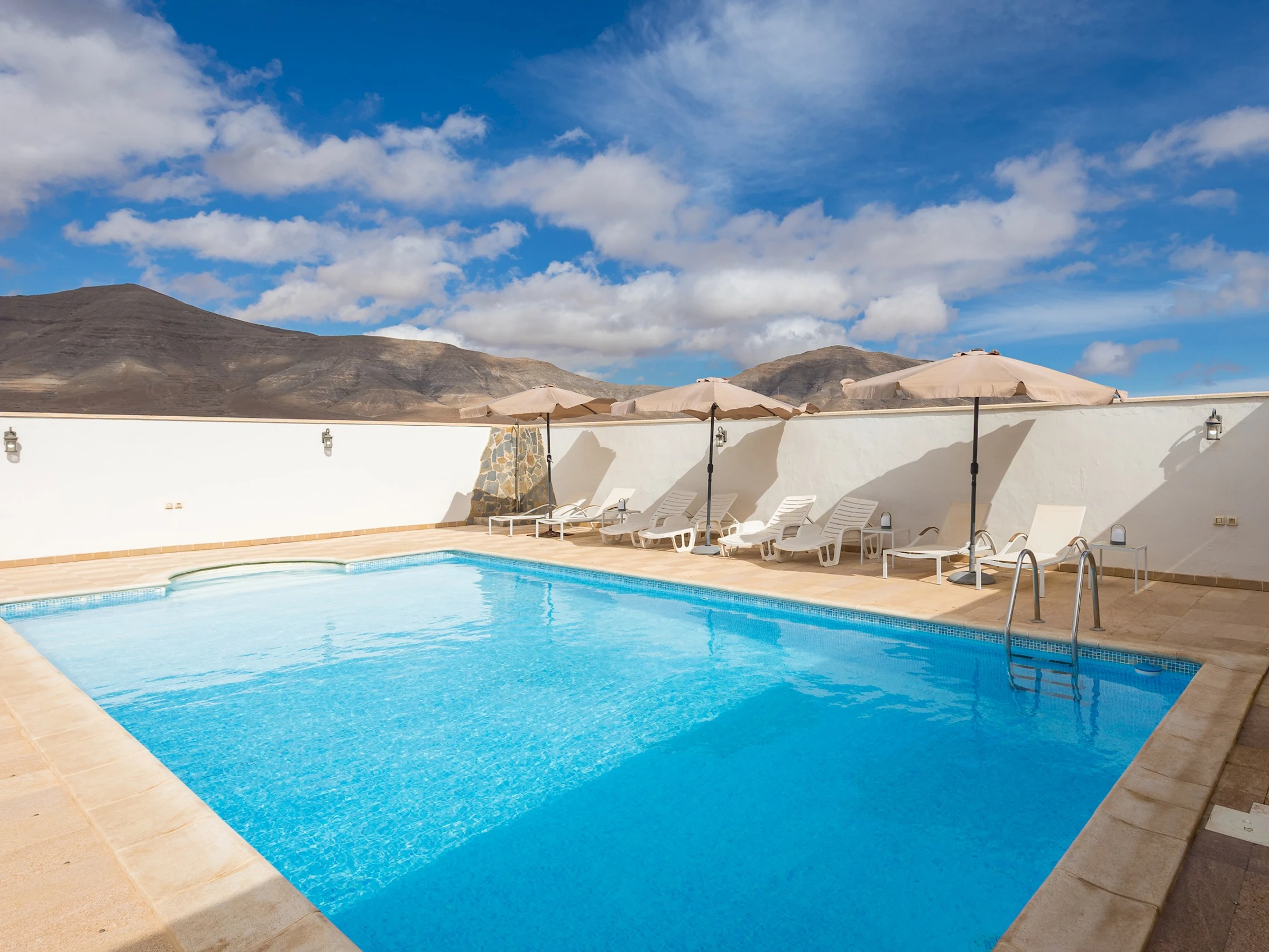 Amplia casa terrera en Casillas del Ángel, en el municipio de Puerto del Rosario, ideal para familias o grupos que buscan descanso y privacidad en un entorno natural. Con capacidad para 8 personas, esta vivienda combina el encanto rural de Fuerteventura con todas las comodidades modernas. Destaca por su amplia zona exterior con piscina privada, mobiliario de exterior y espacios pensados para disfrutar del clima cálido de la isla durante todo el año.
