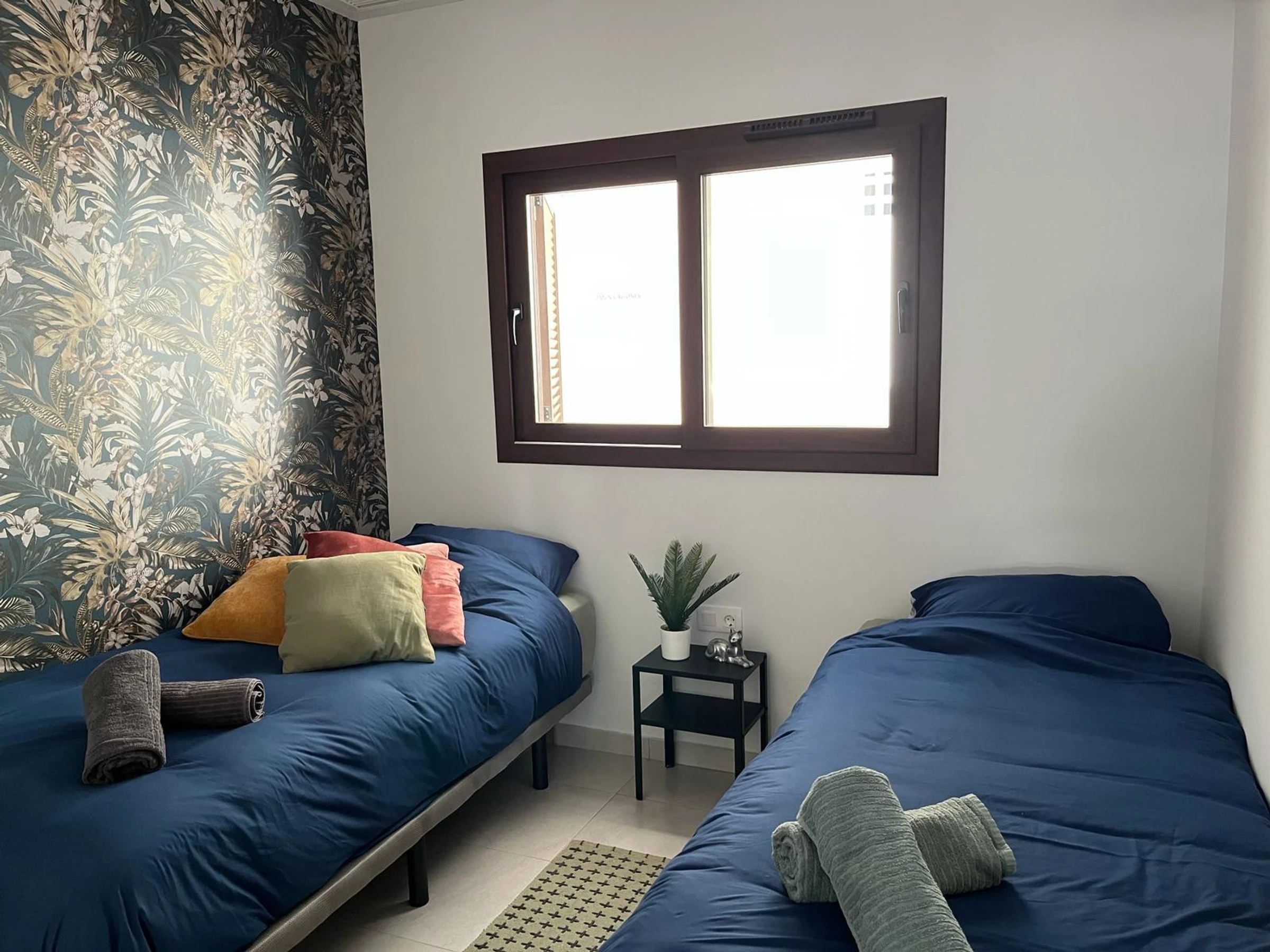 Interior del apartamentoSalón con aire acondicionado y televisiónComedorBalcón cubierto2 dormitorios y 1 bañoTelevisión por cableLavandería con lavadora y secadoraCocinaCocina abierta con placa de inducción, horno eléctrico, microondas, lavavajillas, frigorífico-congelador, cafetera, hervidor eléctrico, tostadora y exprimidorDormitorios y bañosDormitorio con aire acondicionado, cama king size (200 x 180 cm) y baño en suiteDormitorio con aire acondicionado, 2 camas individuales (200 x 90 cm) y baño en suiteBaño en suite con ducha, inodoro y secador de peloInstalaciones y servicios privados incluidos en el precio del alquilerInternet (WiFi)Aspiradora, plancha y tabla de plancharRopa de cama y toallasServicio de emergencia 24 horasCalefacción por aire