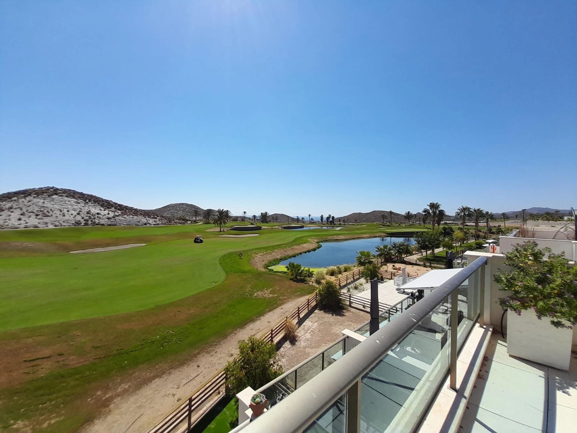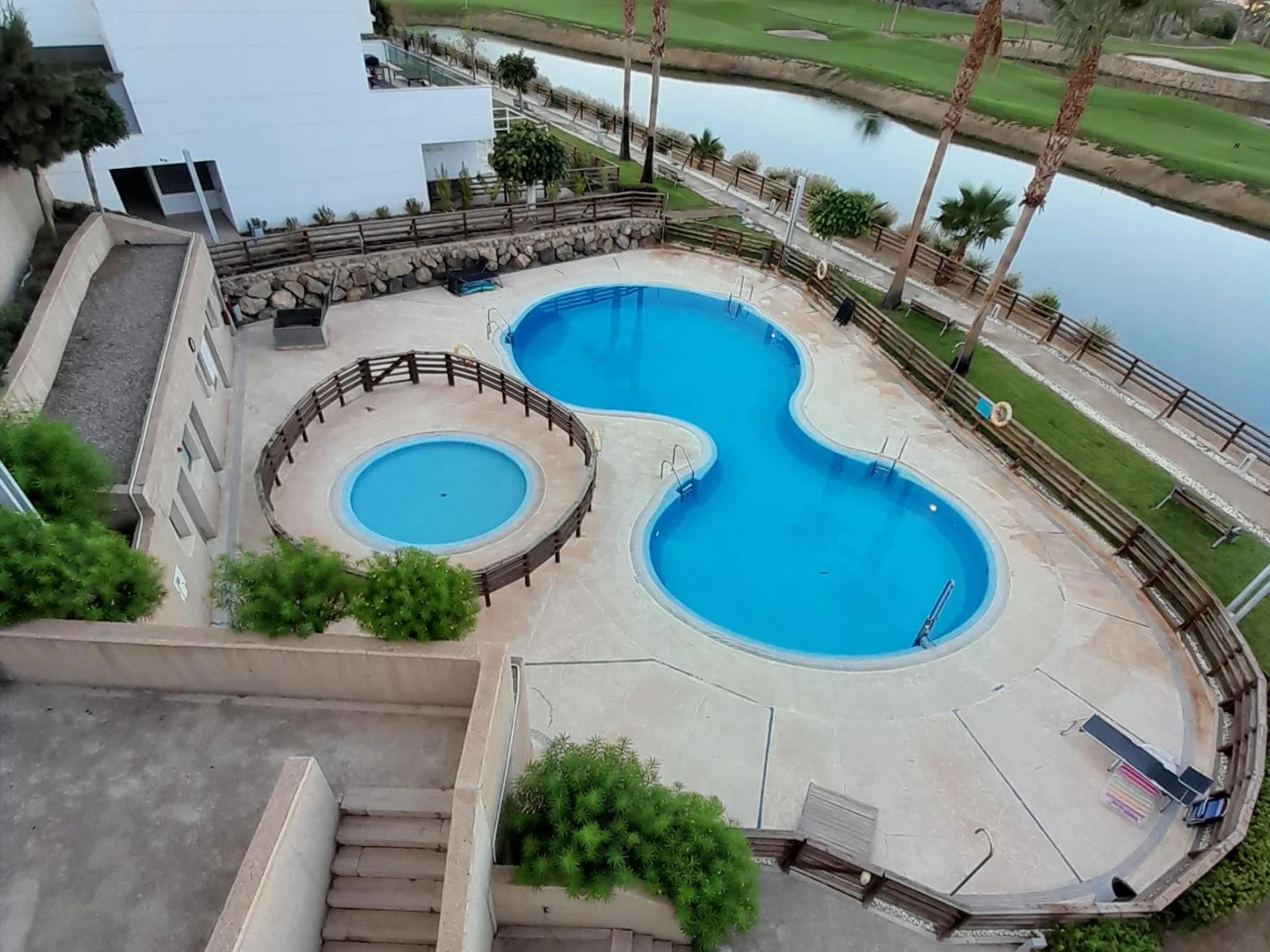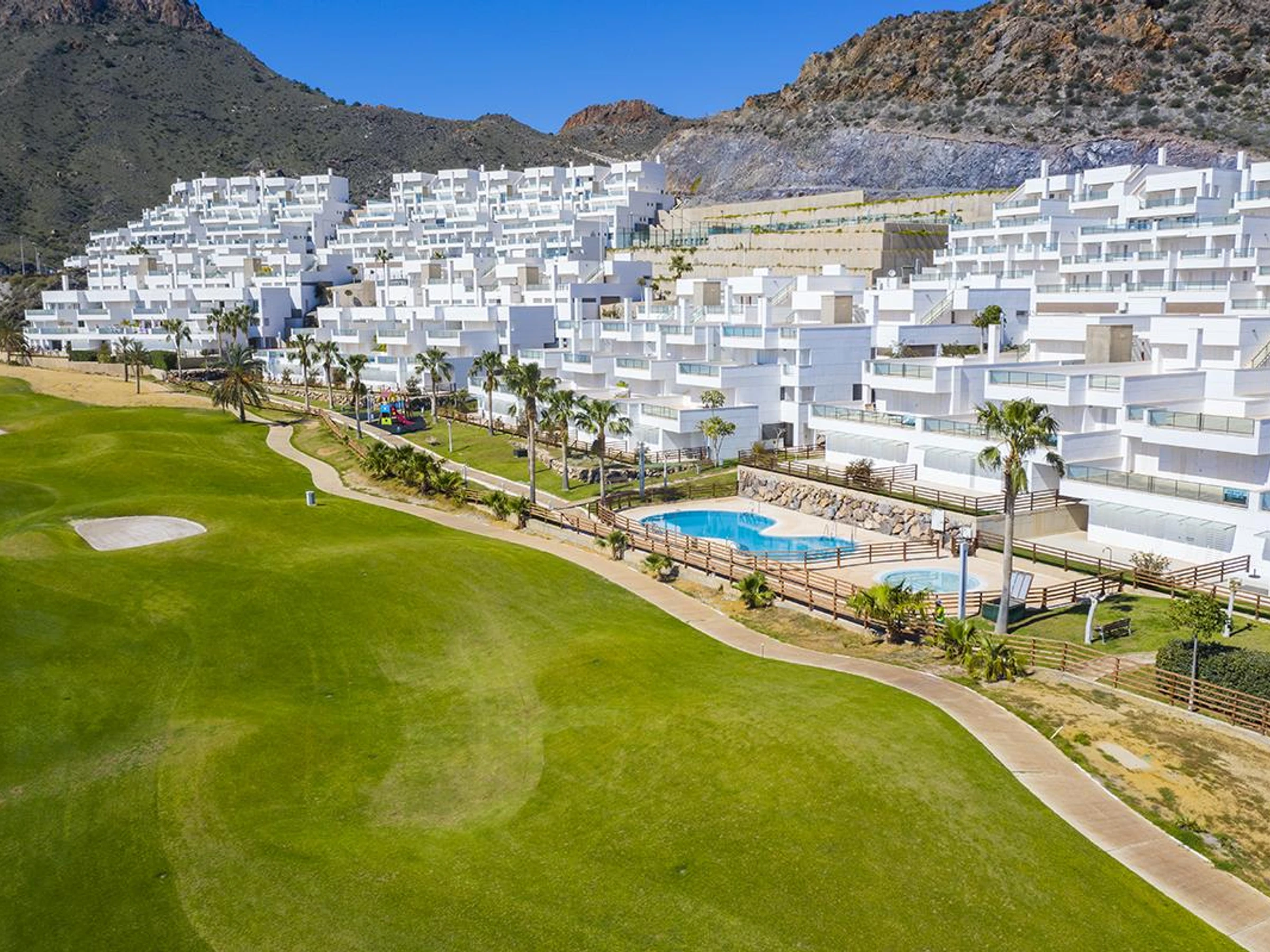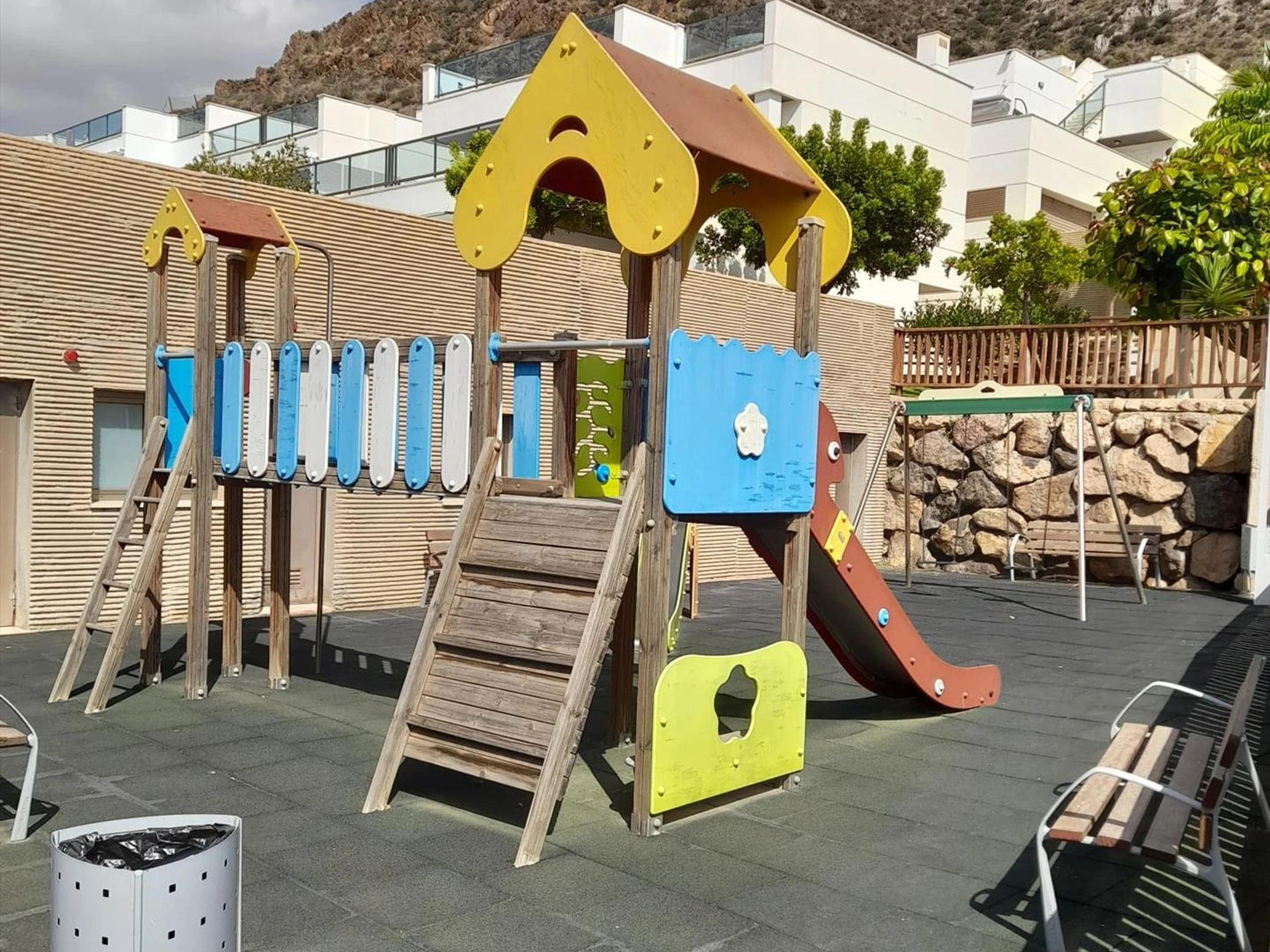 Hermoso y cómodo apartamento en Pulpí, Andalucía, España para 4 personas. El apartamento está situado en un complejo vacacional con bar y restaurante, a 3 km de la playa Playa la [hidden] apartamento cuenta con 2 dormitorios y 2 baños. El alojamiento ofrece un jardín comunitario con césped, maravillosas vistas al campo de golf, y hermosas vistas a la bahía, el mar, el valle, las montañas y el jardín. La proximidad a la playa, actividades deportivas, lugares de interés y cultura hacen de este un excelente apartamento para pasar tus vacaciones en España con familia o amigos.Exterior del apartamentopiscina comunitariajardín comunitario con césped2 terrazaszona de estar exterior y zona de comedor exterior2 plazas de aparcamiento cubiertas privadas y plaza de aparcamiento comunitariaterraza en la azoteaInstalaciones / servicios comunitarios con cargo extrapista de pádel