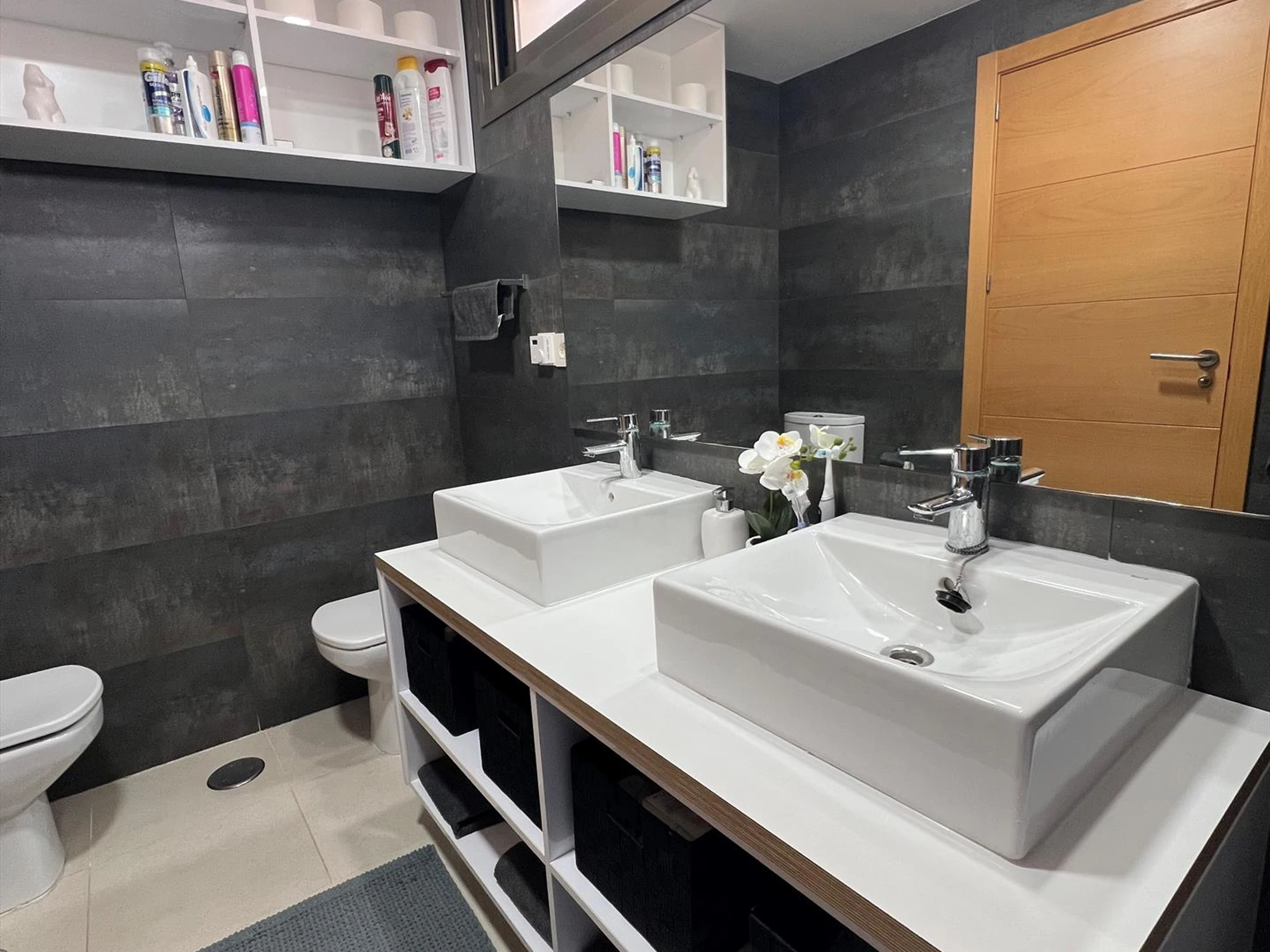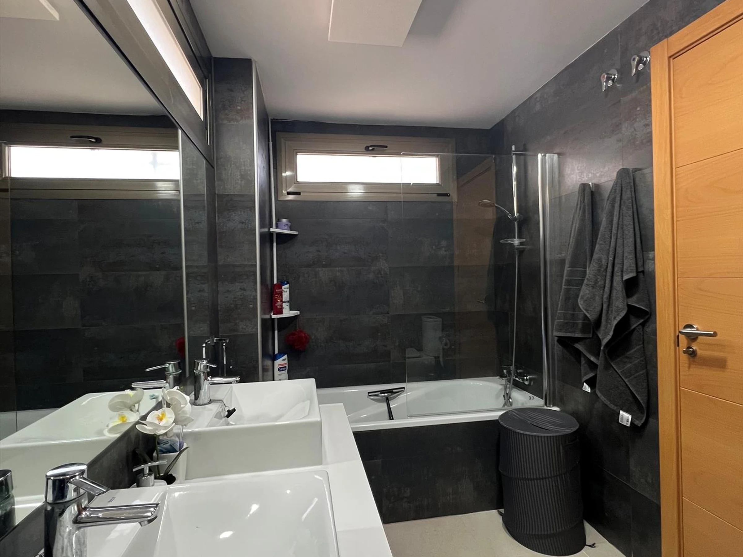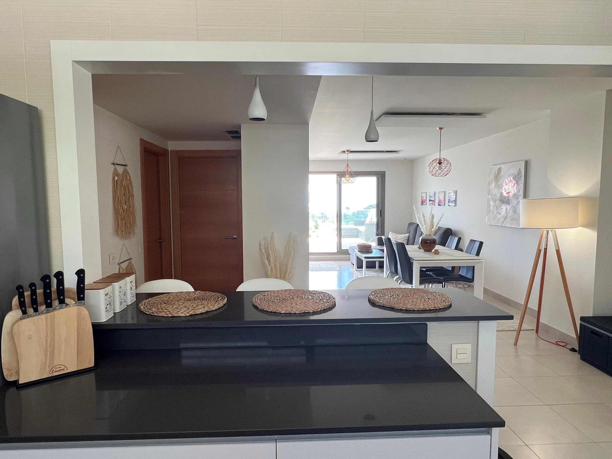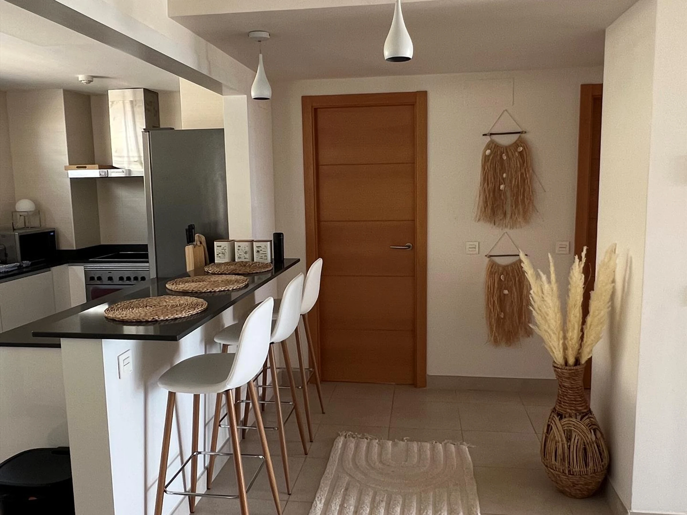 Interior del apartamentoSalón con aire acondicionado y televisiónBalcón2 dormitorios y 2 bañosTelevisión por cable (Smart TV)Lavadero con lavadoraCocinaCocina con placa eléctrica, horno eléctrico, lavavajillas, nevera, cafetera, hervidor eléctrico y exprimidorDormitorios y bañosDormitorio con aire acondicionado y baño en suiteDormitorio adicionalBaño con lavabo doble, bañera, ducha, bidé, inodoro y secador de peloBaño con lavabo sencillo, ducha, inodoro y secador de peloServicios y equipamientos privados incluidos en el precio del alquilerInternet (WiFi)Aspiradora, plancha y tabla de plancharRopa de cama y toallasServicio de recepciónCalefacción por aire