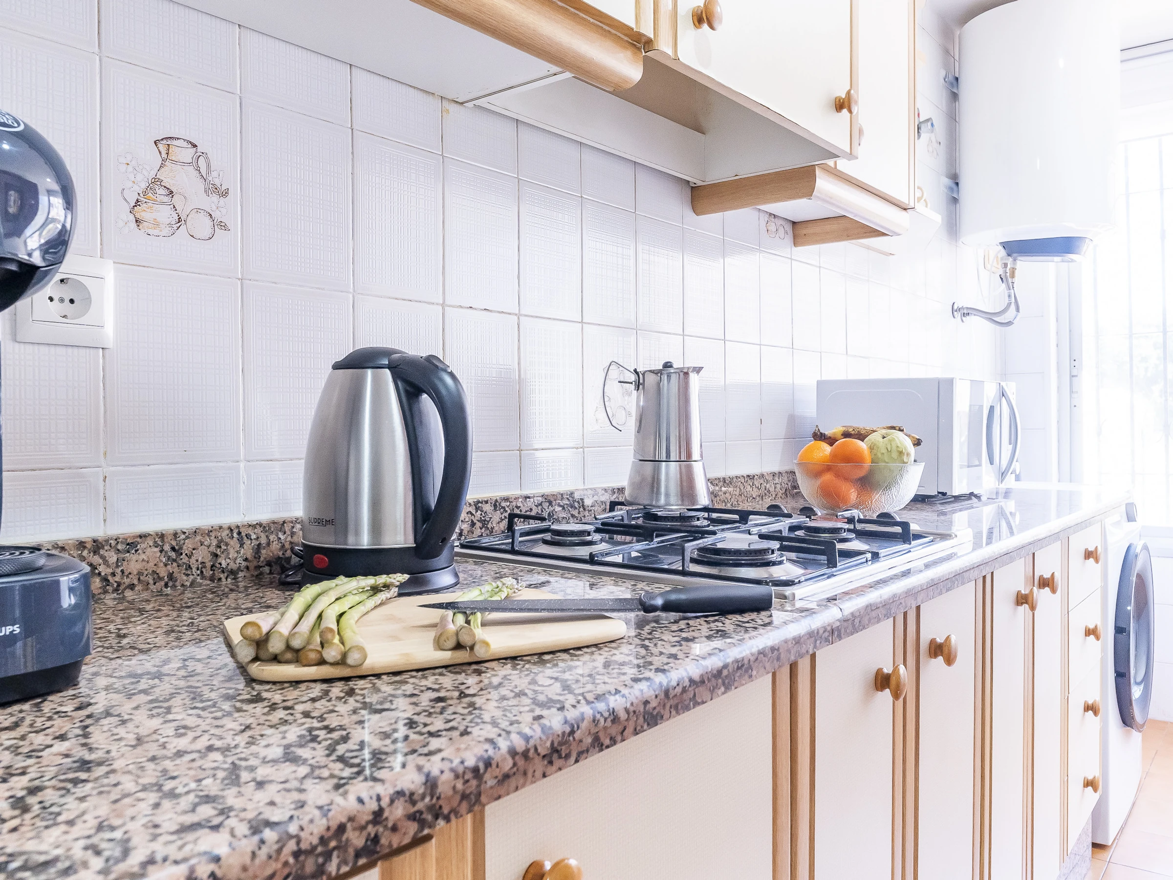 🍳 Cocina independiente de gas equipada: nevera, microondas, menaje completo, cafetera, tostadora, hervidor y exprimidor.