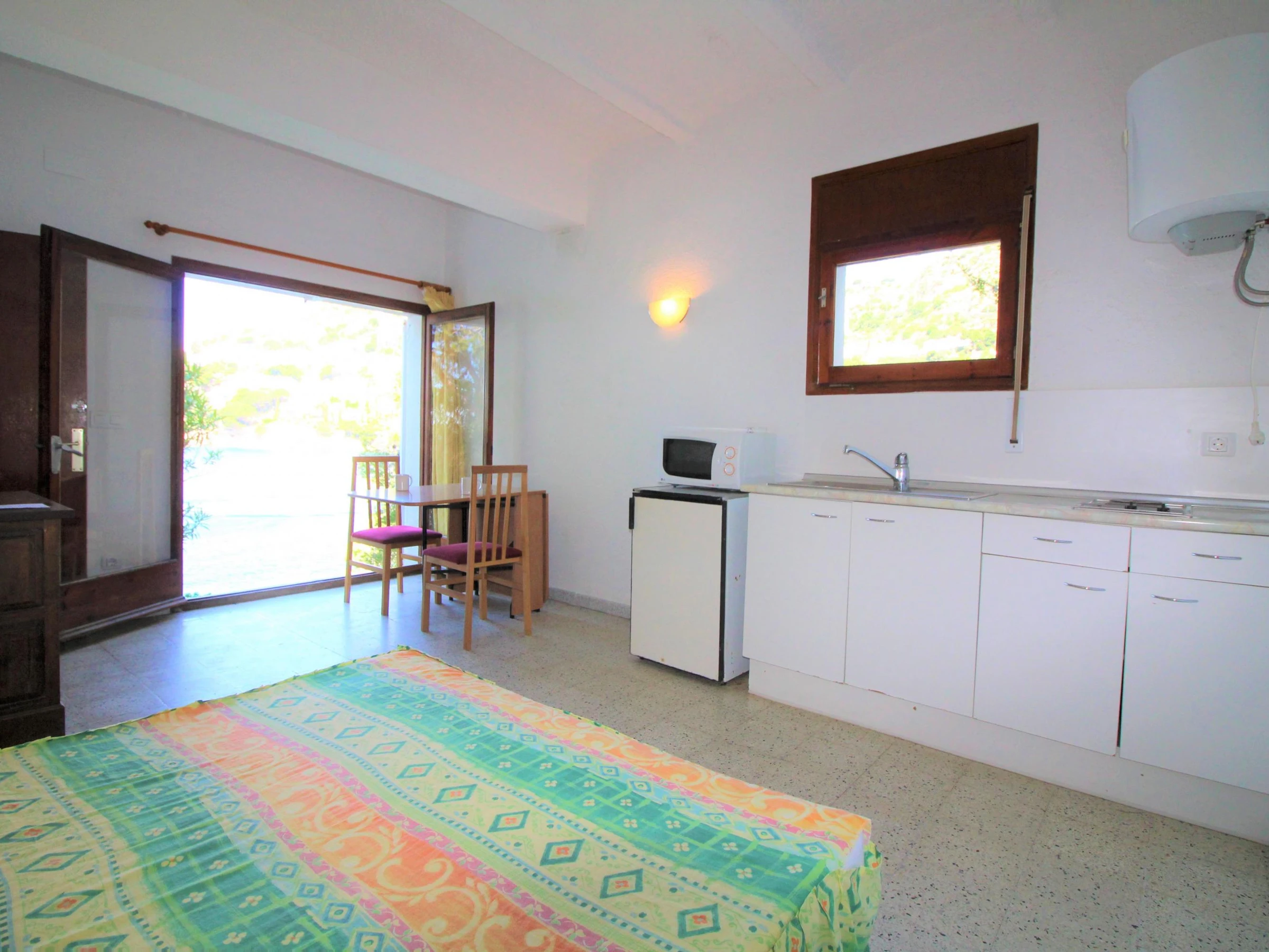 Situación única para este inmueble edificado en los años 70. Sólo oirá el ruido del mar, podrá bajar directamente a las rocas o ir andando (50 mts) por el camino de Ronda hasta la preciosa cala de Canyelles Petites. 20m2 para 2 pers.: 1 cama x 1,40. Terraza comunitaria de 20m2, parking privado exterior.