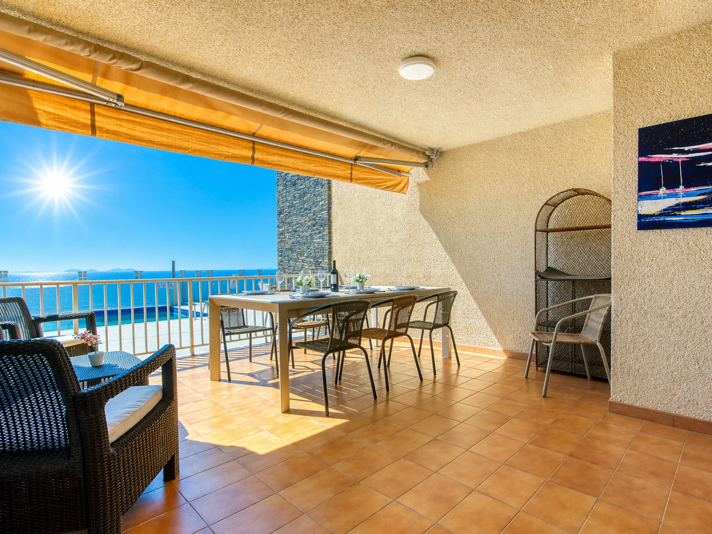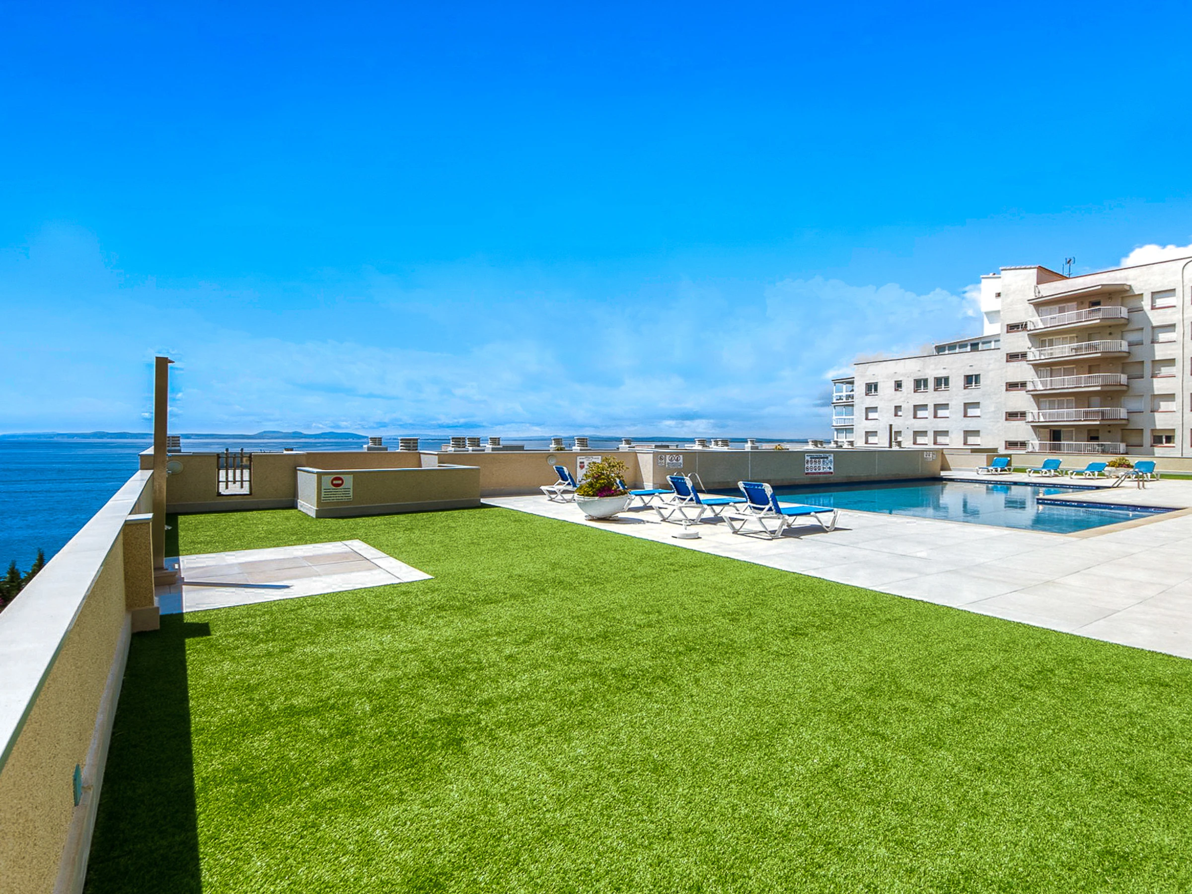 Apartamento situado en una zona privilegiada de Roses, con vistas preciosas al mar. Está distribuido de un salón comedor ámplio con una gran mesa, zona de sofá con TV que da acceso a la gran terraza. En la terraza hay mobiliario exterior para poder disfrutar de la barbacoa, las bonitas vistas a la bahía y la piscina.