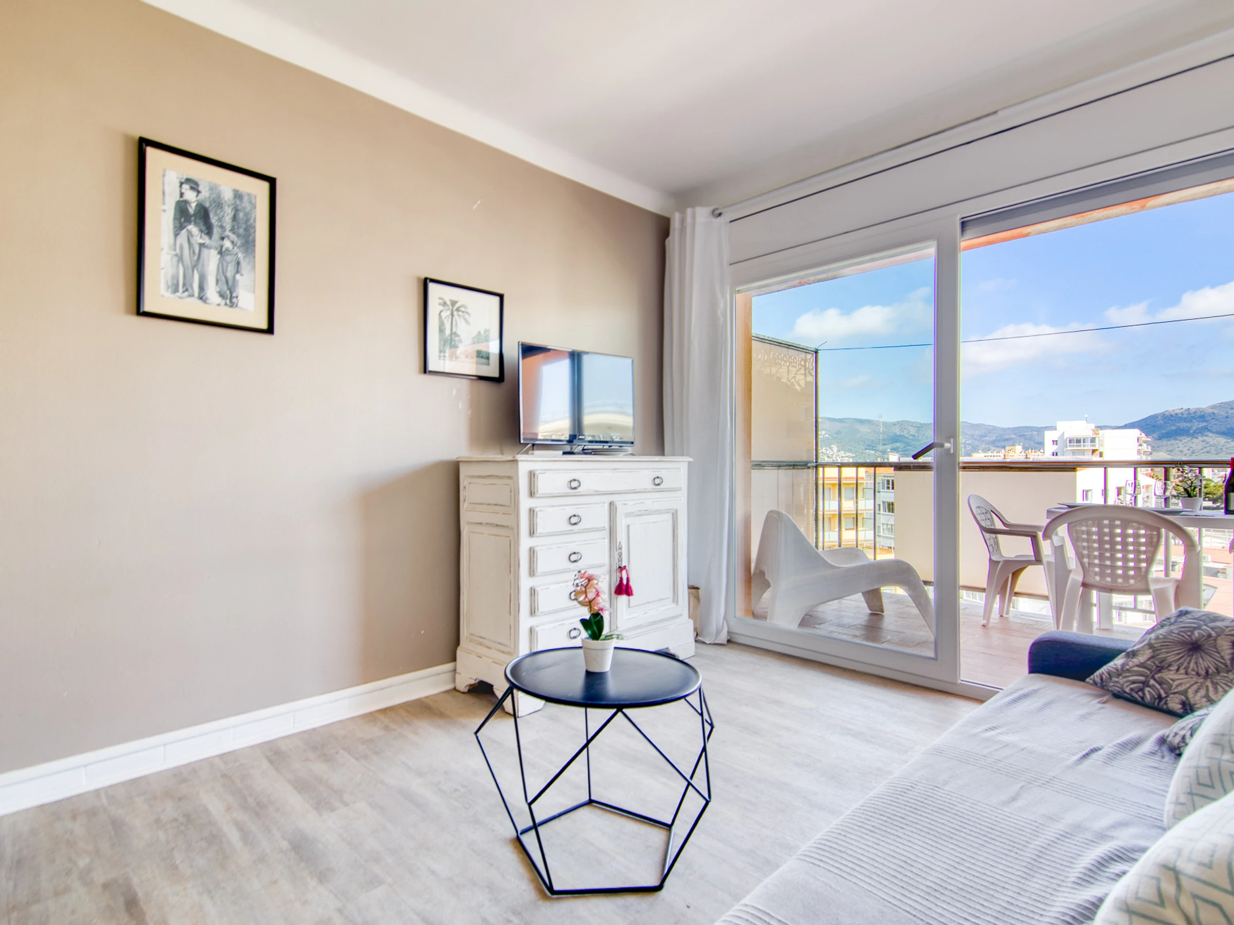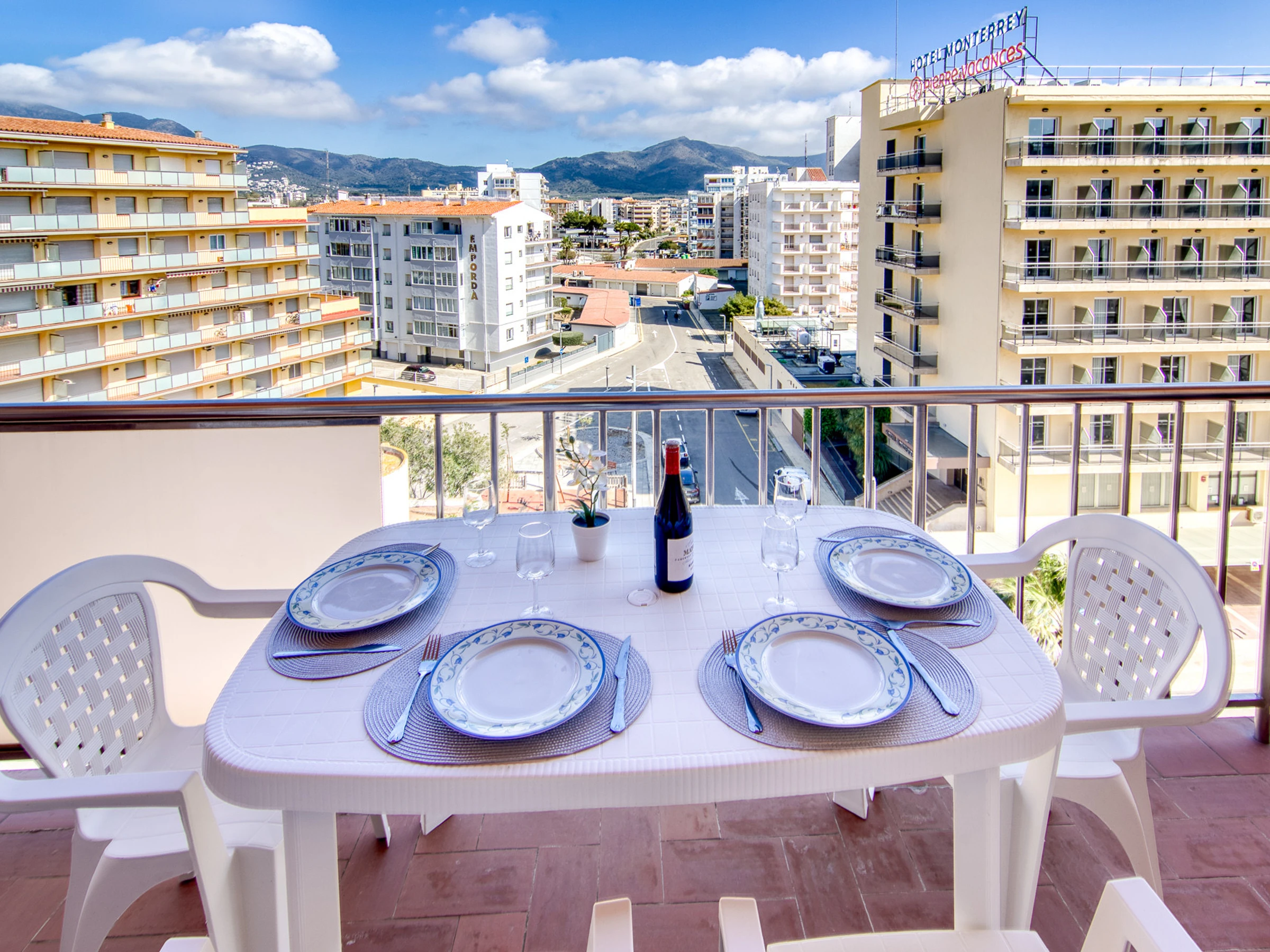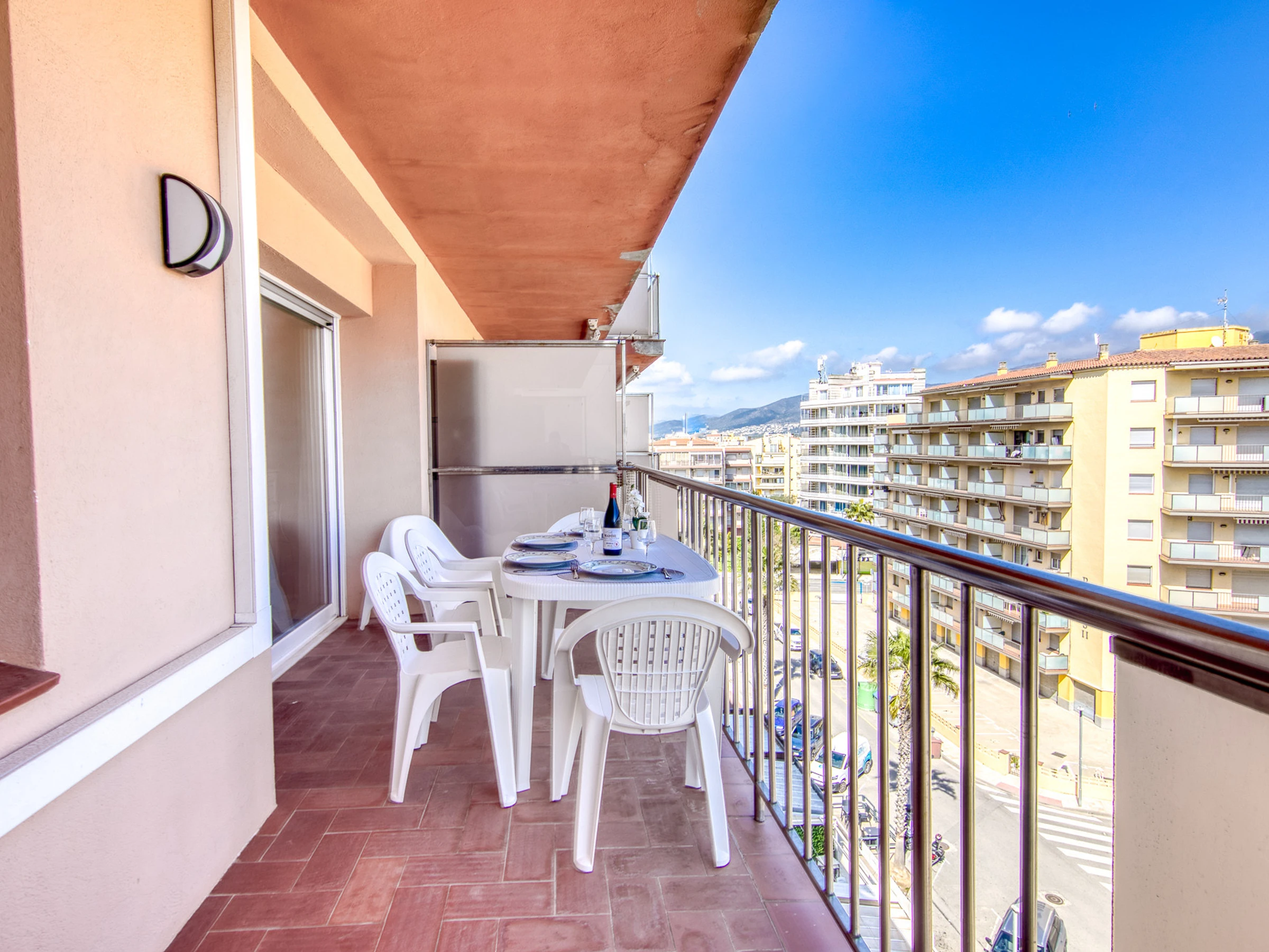 Terraza muy acogedora de 8 m²con bonitas vistas ,agradable y cómodo mobiliario, aire acondicionado, parking privado al aire libre en el mismo edificio con acceso con mando, 1 Televisor, tv satelite.Ascensor