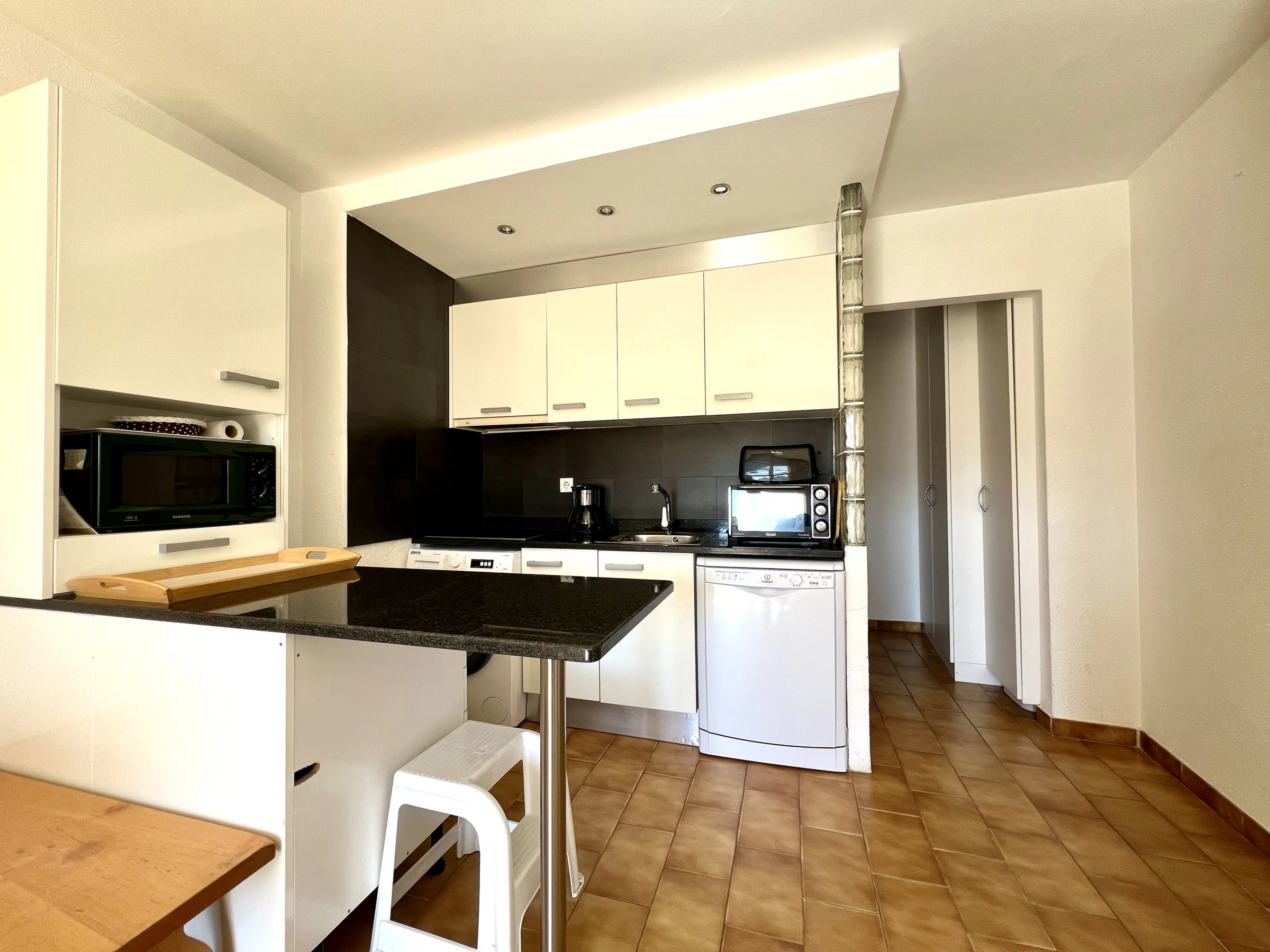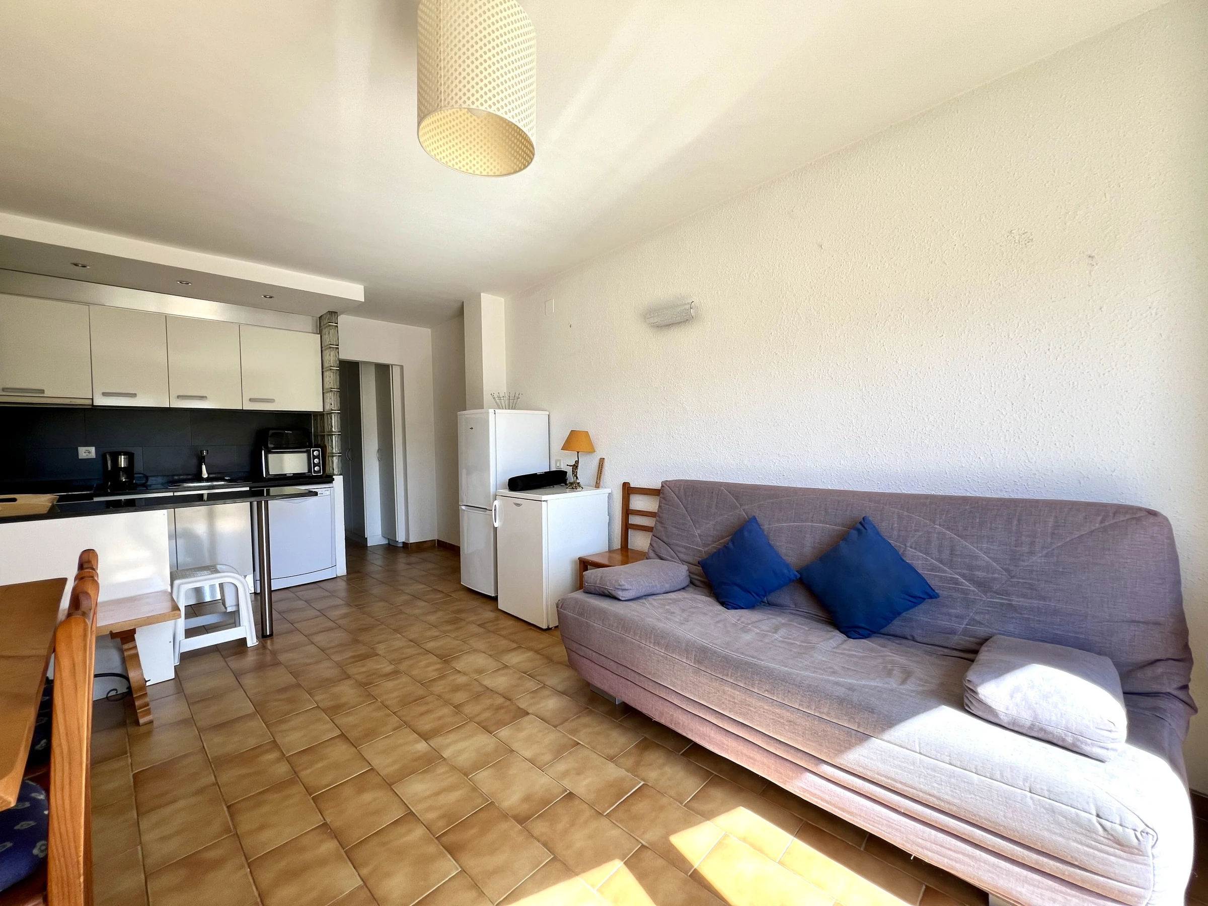El piso tiene 35 m2 y dispone de un dormitorio con cama de matrimonio y un sofá cama doble en el salón para alojar hasta 4 personas. La cocina americana está totalmente equipada para que puedas preparar tus comidas tranquilamente, y el cuarto de baño tiene una ducha para refrescarte después de un día en la playa.