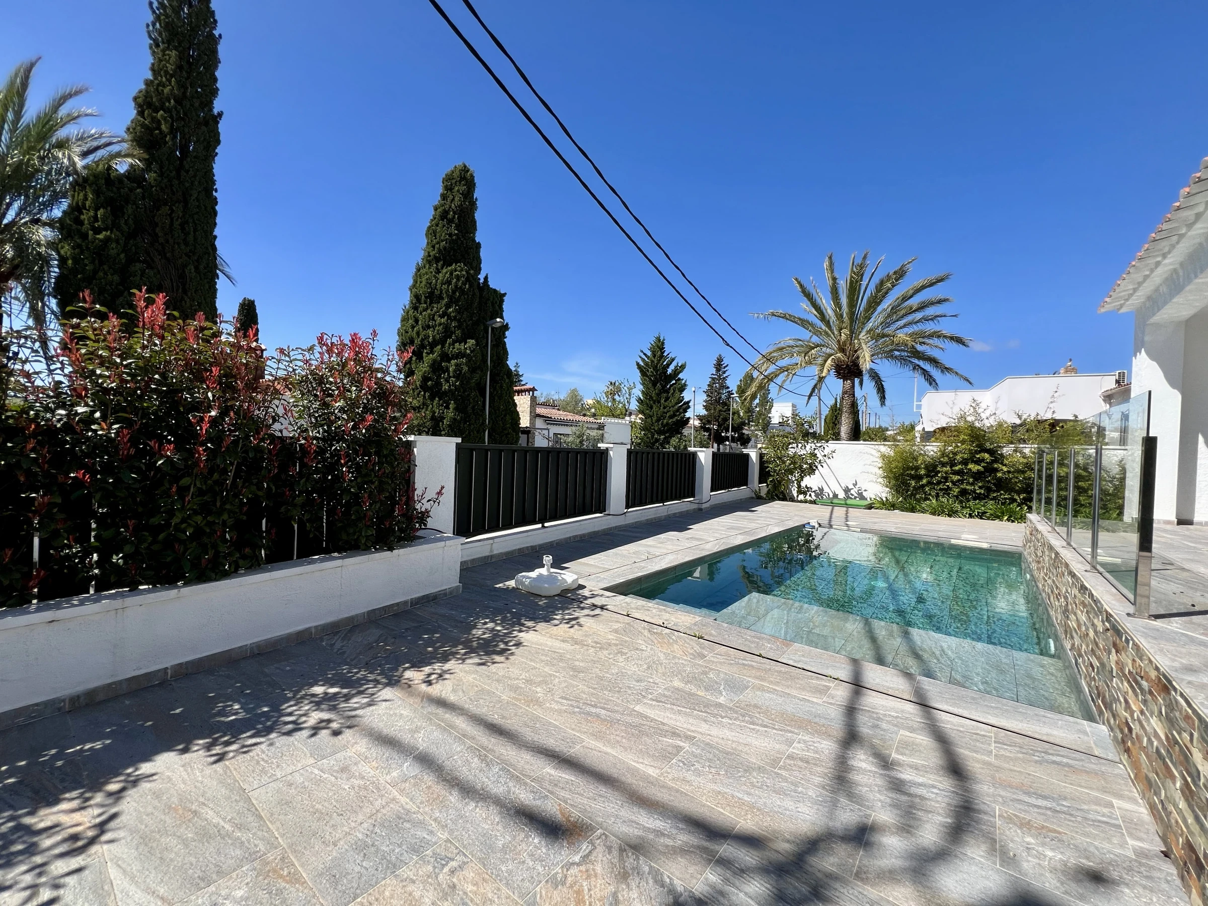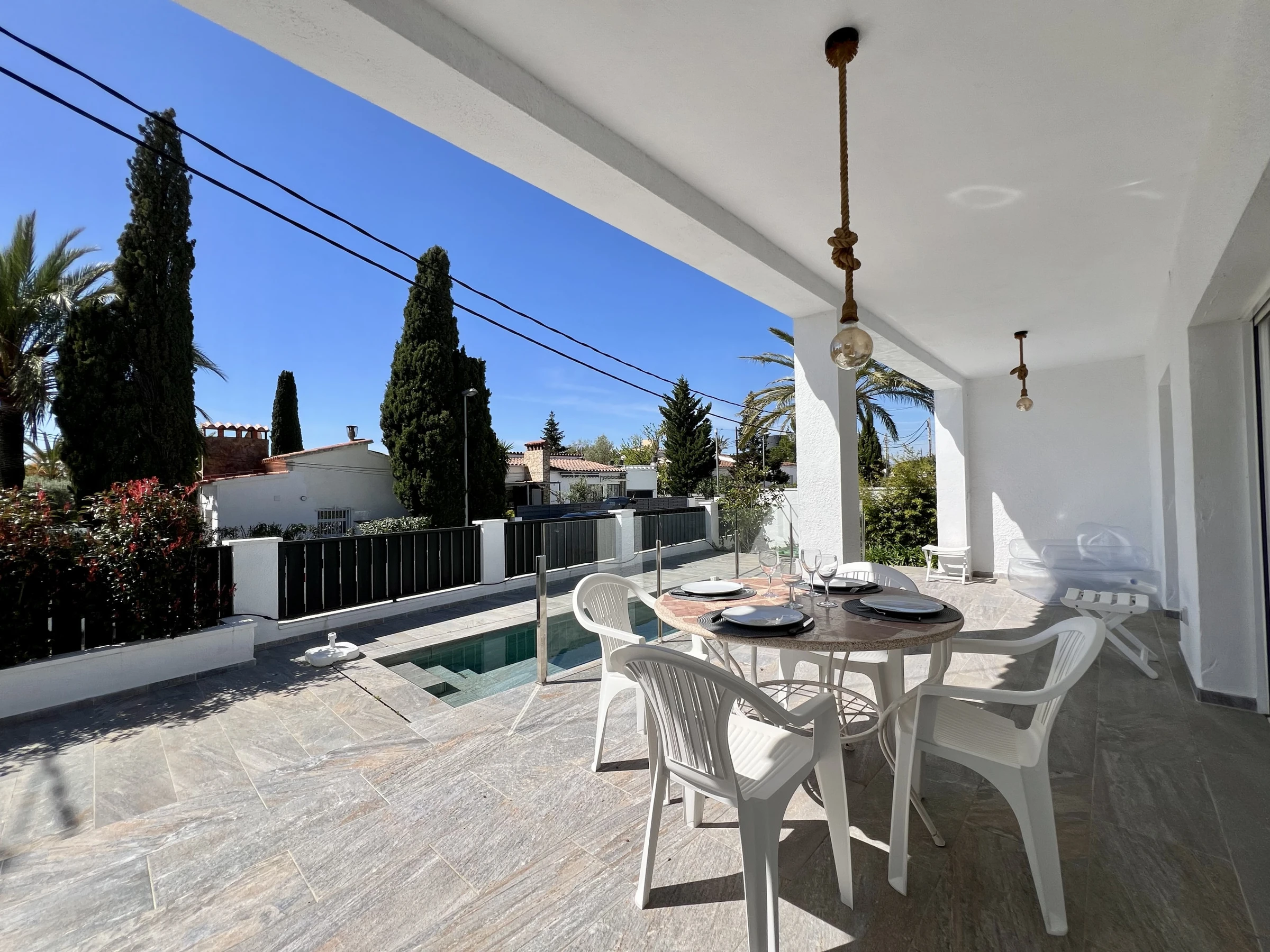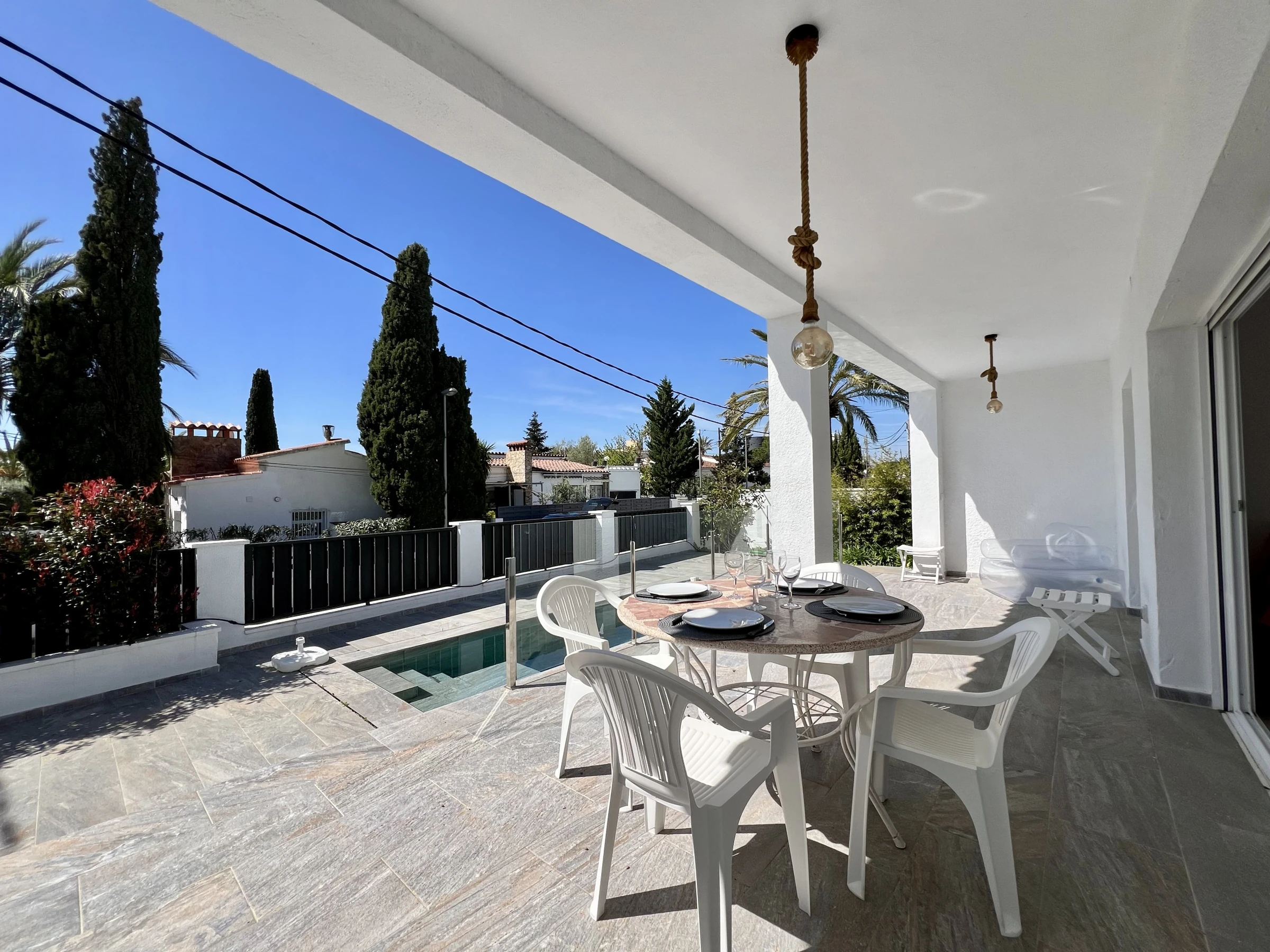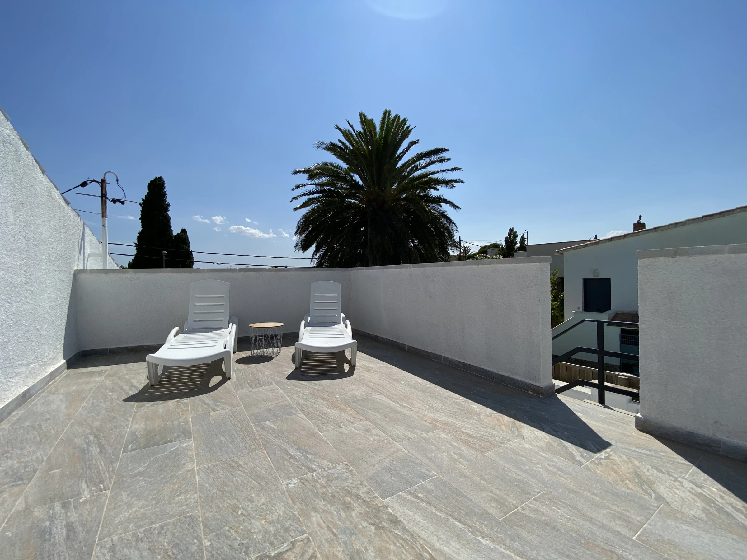 Situada en el tranquilo barrio de Mas Busca, en Rosas, esta casa totalmente renovada ofrece un marco ideal para unas vacaciones en familia, a solo 1500 metros de la playa y cerca de todos los comercios.