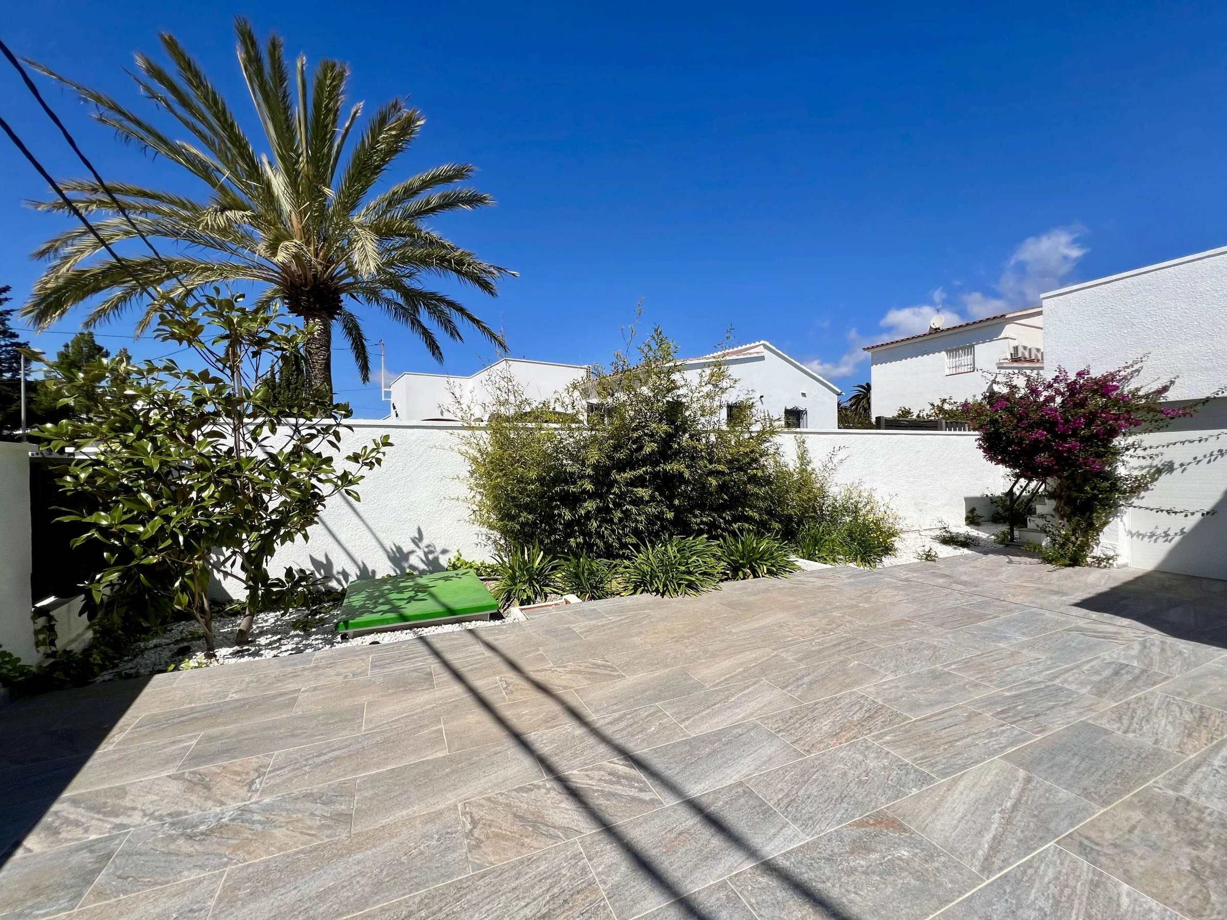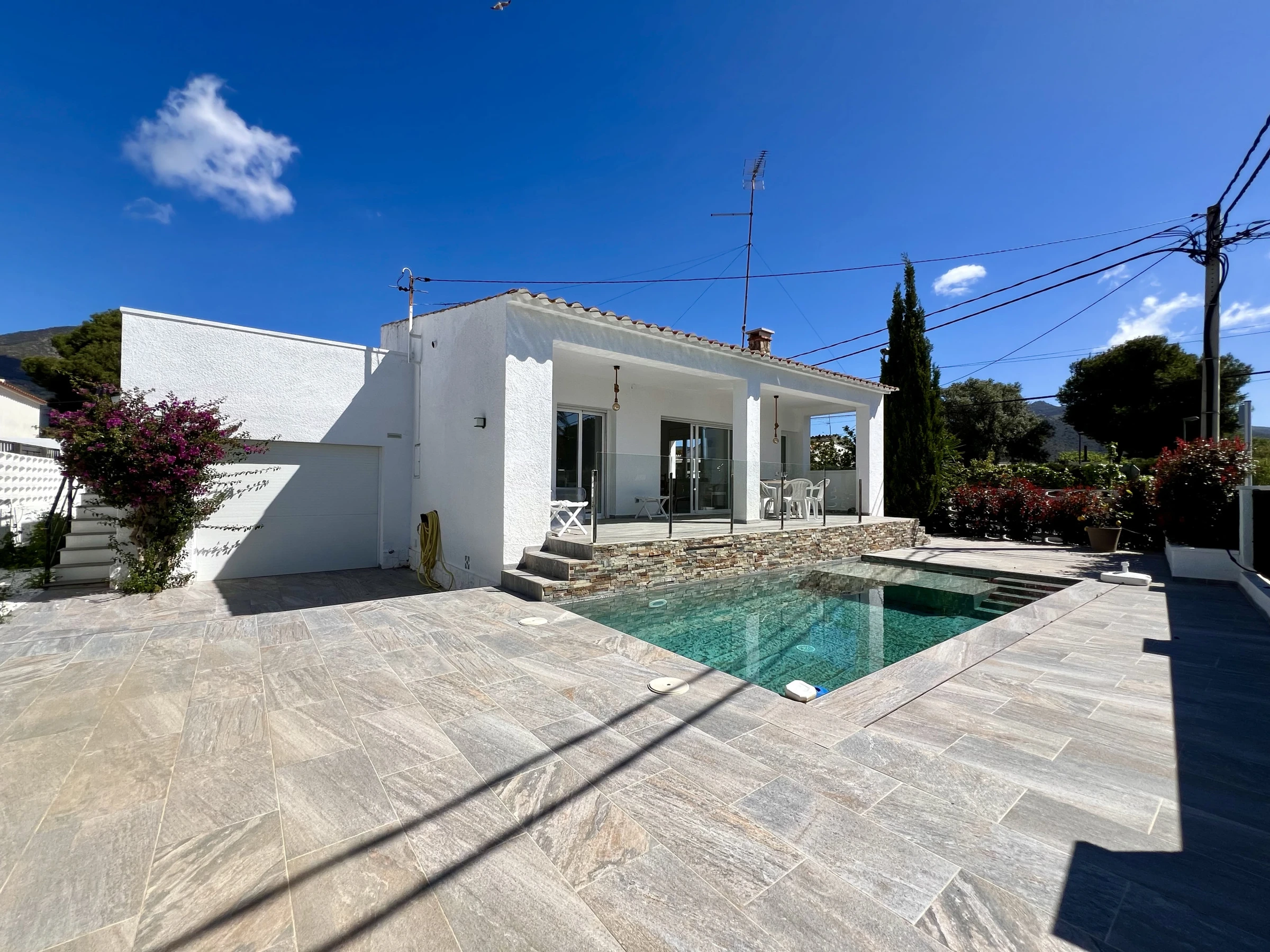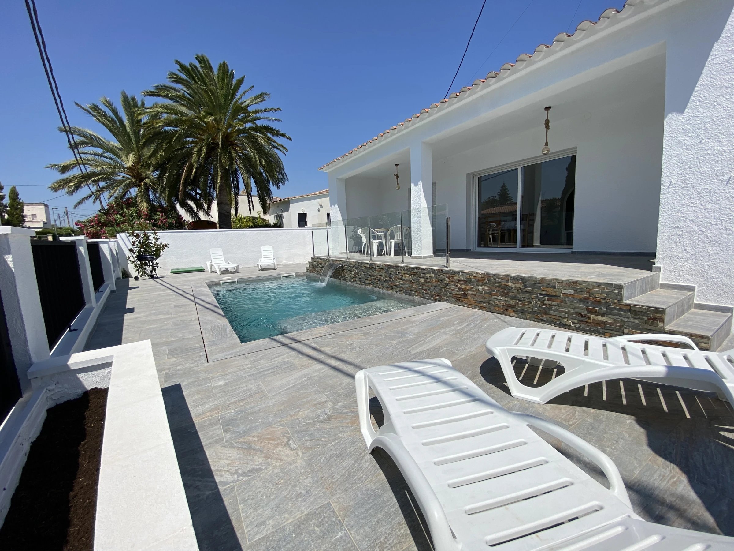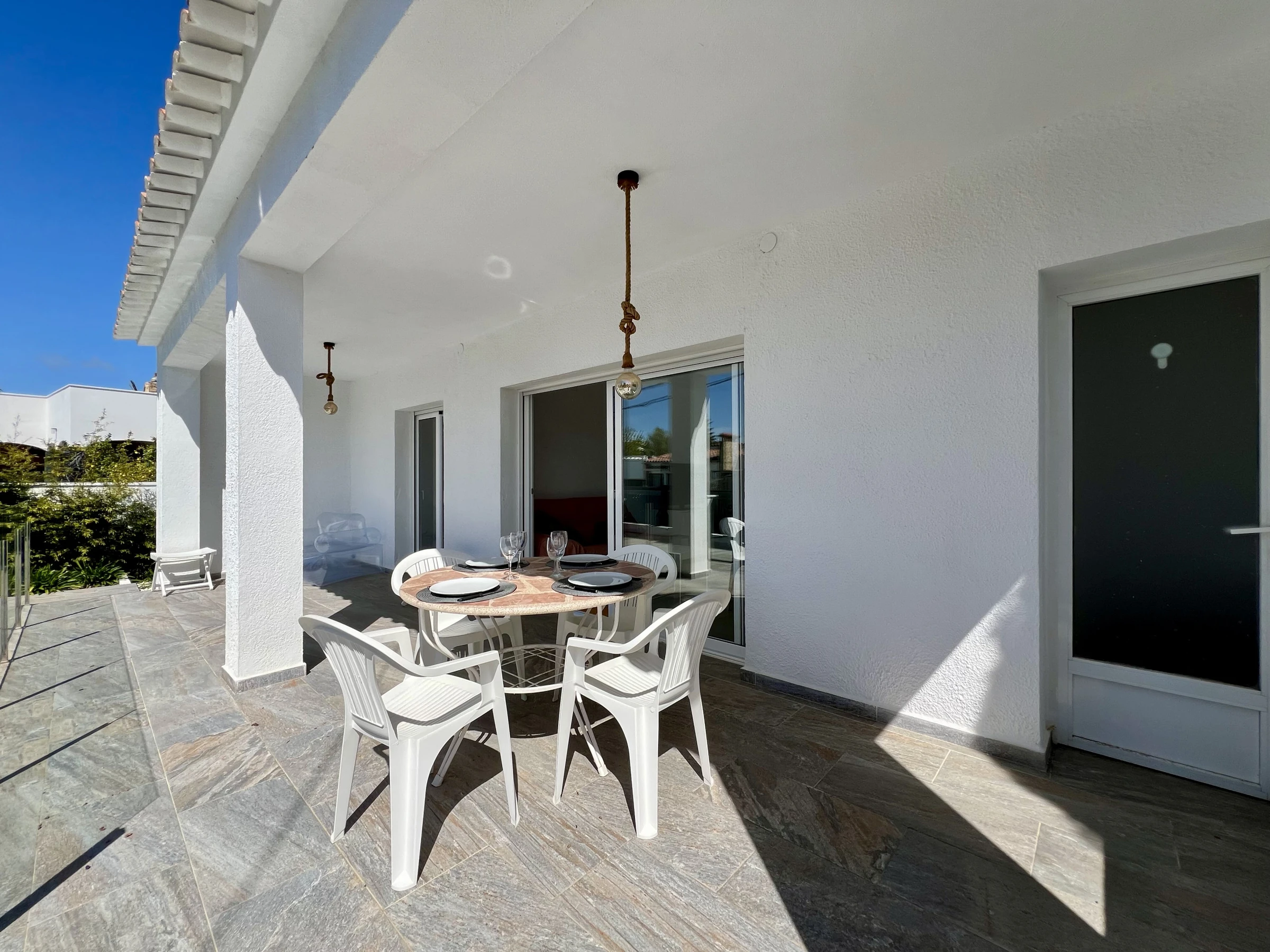 Situada en el tranquilo barrio de Mas Busca, en Rosas, esta casa totalmente renovada ofrece un marco ideal para unas vacaciones en familia, a solo 1500 metros de la playa y cerca de todos los comercios.