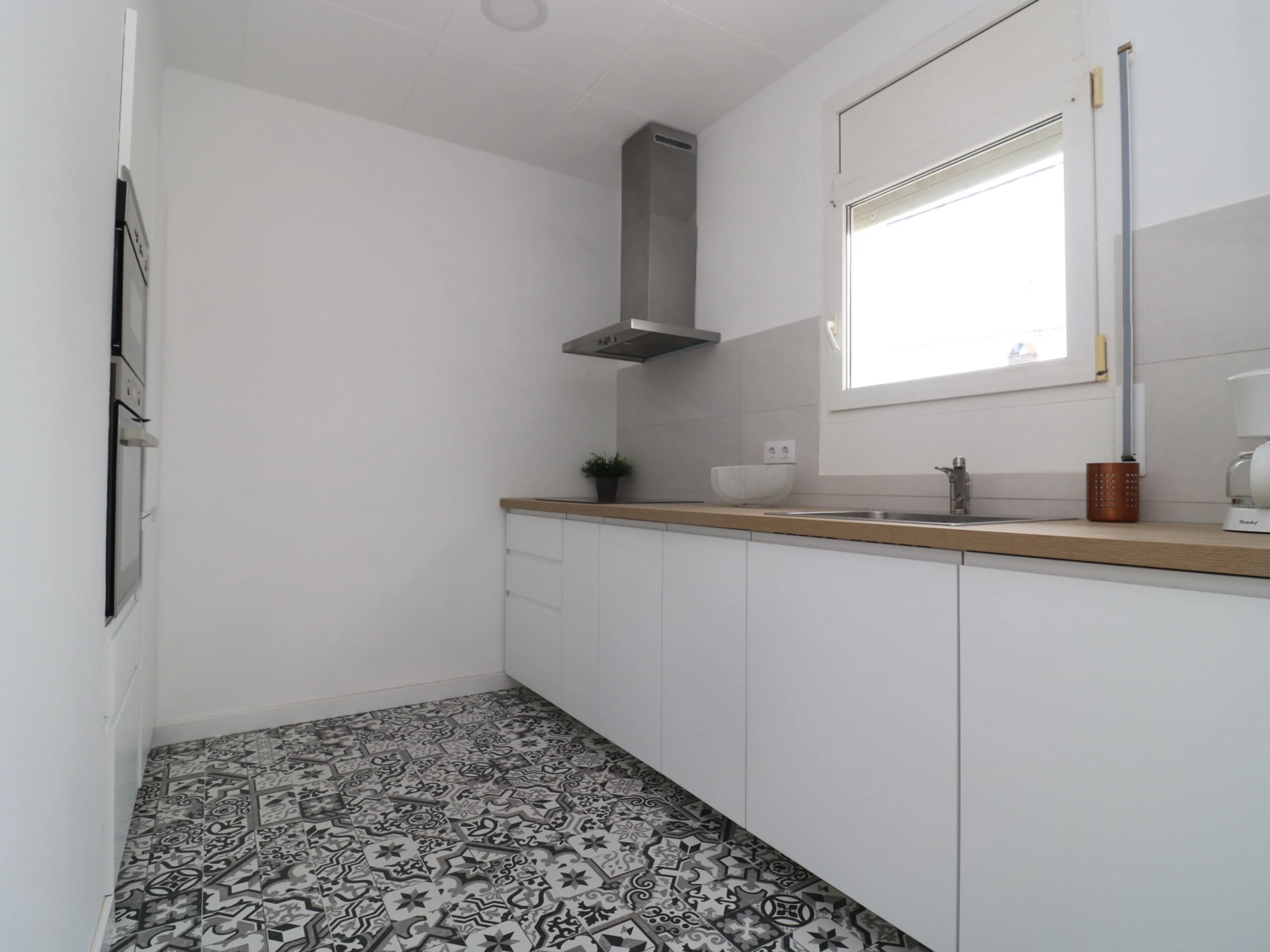 La cocina independiente, totalmente nueva, está perfectamente equipada: placas de inducción, frigorífico, horno, microondas, congelador, lavadora, lavavajillas, utensilios y vajilla completos, así como una cafetera.