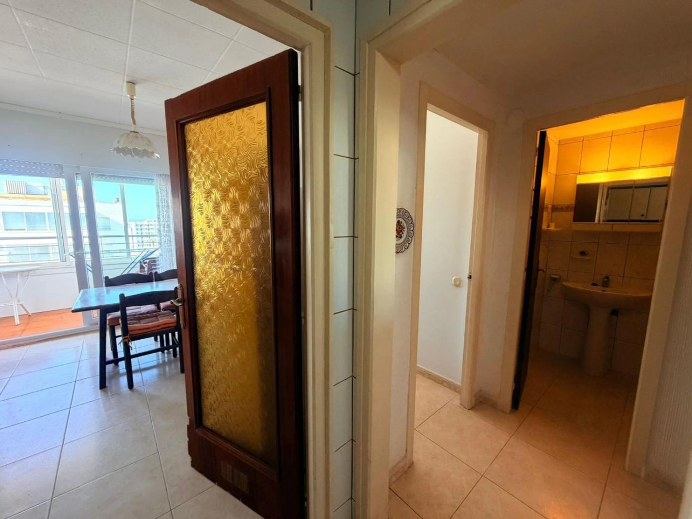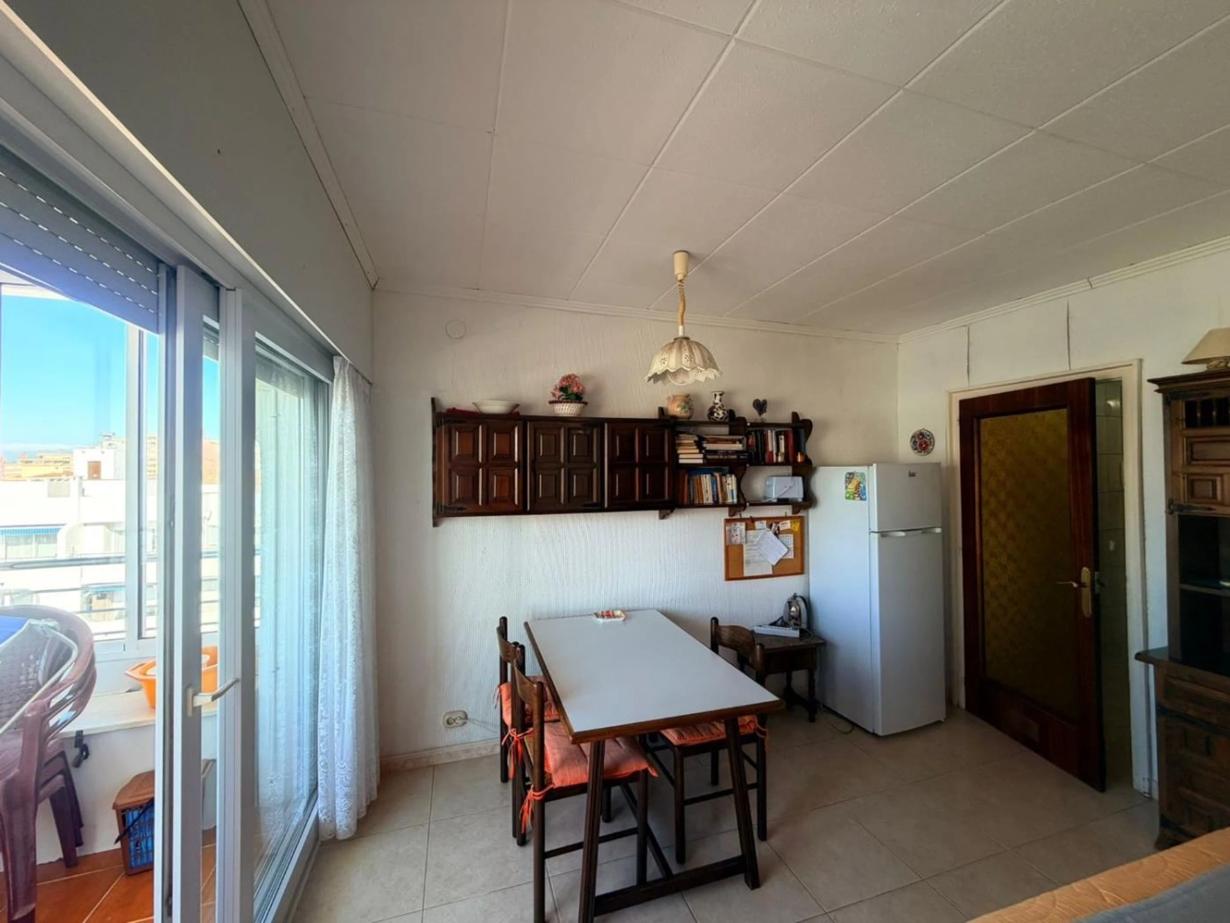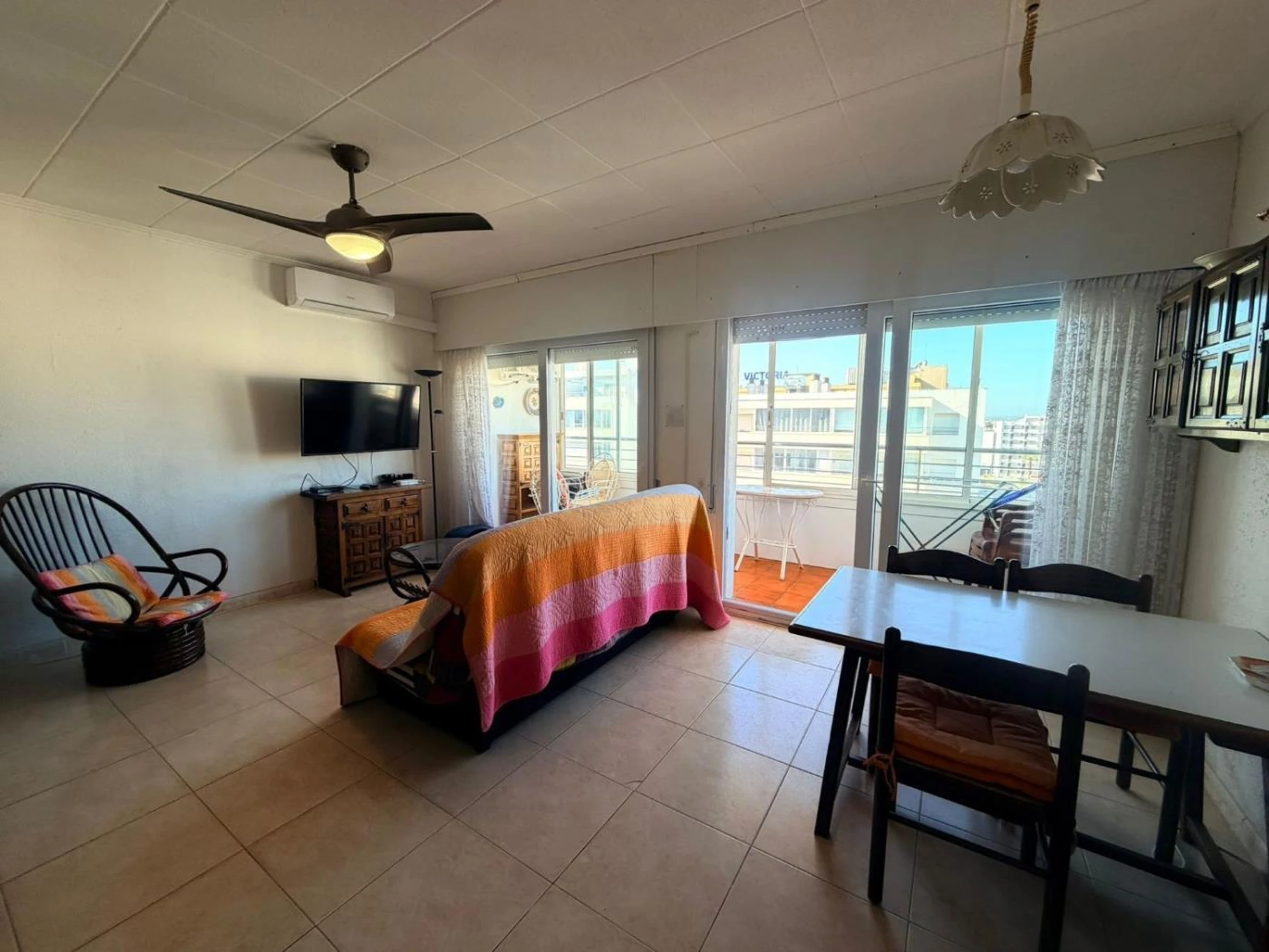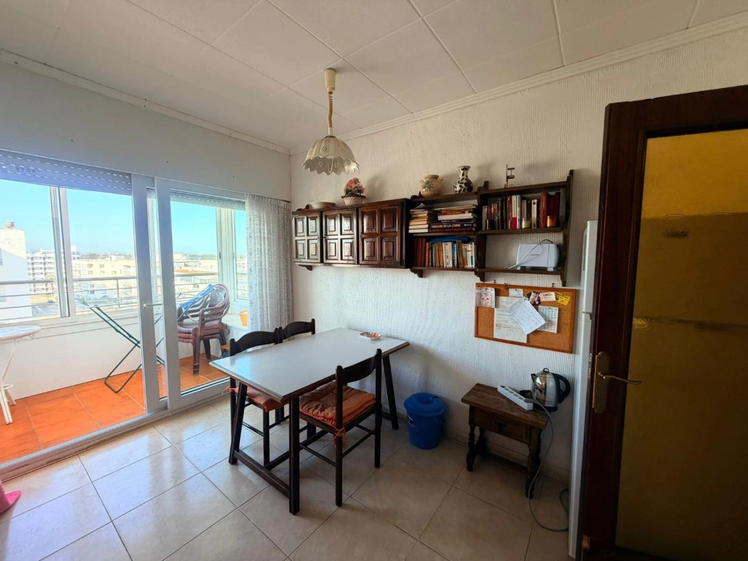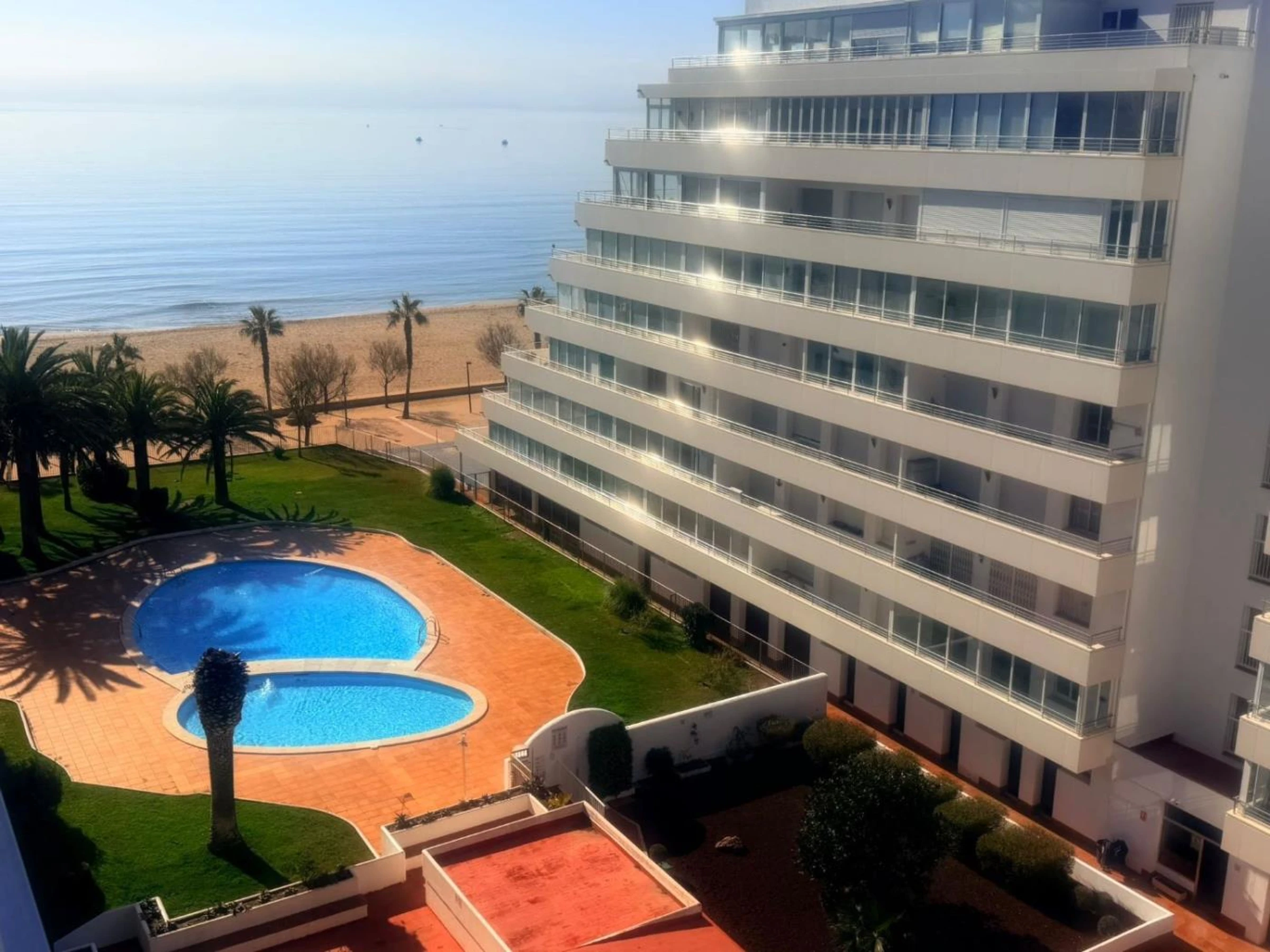 Residencia Rosas Holiday Center apartamento 2701, ubicado en Roses Santa-Margarita Av. Gola Estany 14.Residencia de 7 pisos en el borde de la playa con vista y acceso al mar.Apartamento para 6 personas en el 7mo piso con ascensores. Consta de: cocina (cafetera, nevera, vitrocerámica, microondas,), baño con ducha, inodoro, lavadora, sala de estar, alcoba de 1 dormitorio con 2 camas individuales, 1 dormitorio con cama doble, TV con canales franceses , terraza, piscina (del 1/6 al 01/10) y jardín.