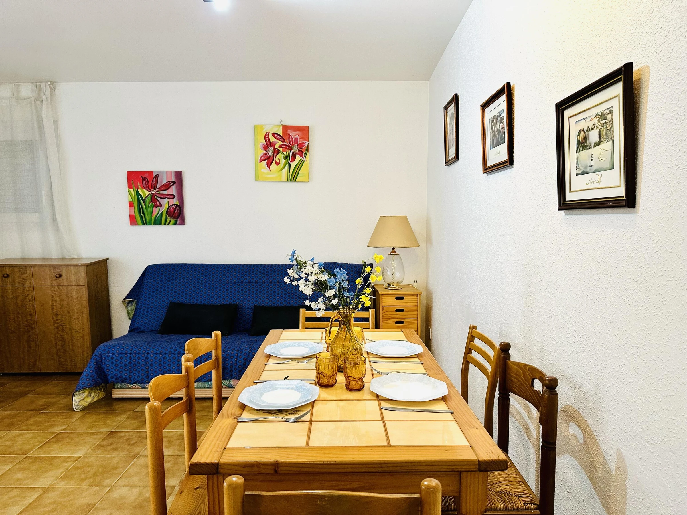 Disfruta de una estancia cómoda y relajada en este apartamento espacioso para hasta 6 personas, situado en Roses, en una zona tranquila pero bien conectada con el mar y los servicios. Ideal para familias o grupos de amigos que buscan combinación de confort y buena ubicación. Características del alojamiento: * Distribución diseñada para 6 personas: dos dormitorios equipados más sofá cama en el salón. * Al menos un baño completo para mayor comodidad durante la estancia. * Cocina funcional y bien equipada para que puedas preparar tus comidas a tu ritmo. * Salón luminoso con acceso a una terraza, perfecto para disfrutar del aire libre, desayunos al sol o cenas al atardecer. * Ubicación muy cómoda: zona tranquila de Roses, cercana al mar, a playas y a servicios, combinando serenidad con accesibilidad. * Alojamiento pensado para que te sientas bien: ambiente agradable, equipamiento completo y política deno fumar en el interior. Por qué te encantará: Este apartamento ofrece amplio espacio, ubicación ideal cercana al mar y comodidad total, lo que lo convierte en una excelente opción para quienes buscan unas vacaciones tranquilas, con libertad de moverse y relajarse cuando quieran. Con todo lo necesario para una estancia sin preocupaciones, tu visita a Roses será de lo más satisfactoria.