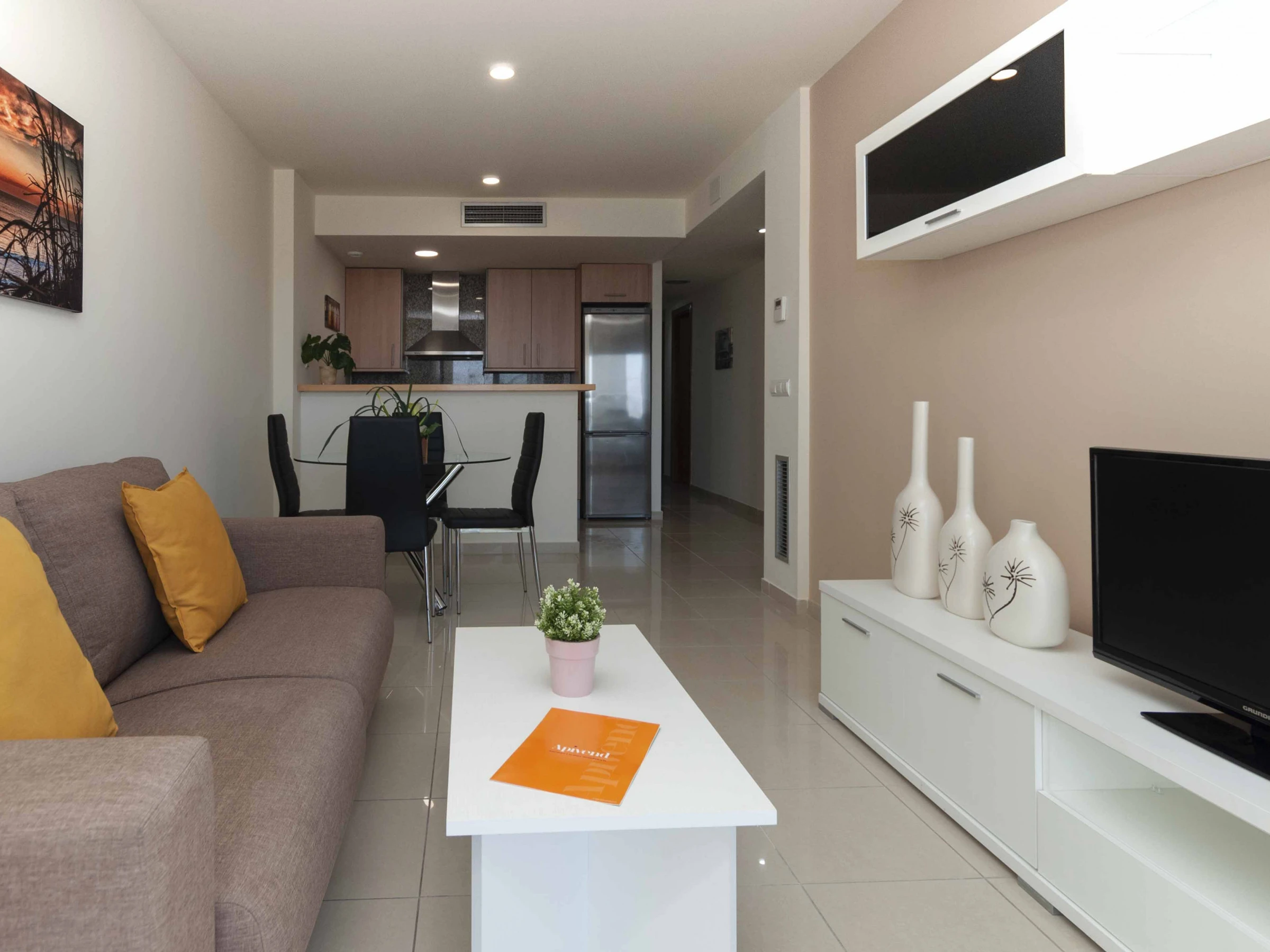 Dispone de ascensor, jardín, mobiliario jardín, 10 m² de terraza, plancha, acceso internet (wifi), calefacción central, aire acondicionado en todo el alojamiento, piscina comunitaria, parking cubierto en mismo edificio, 1 Televisor, tv satelite (Idiomas: Español, Inglés, Alemán, Francés).