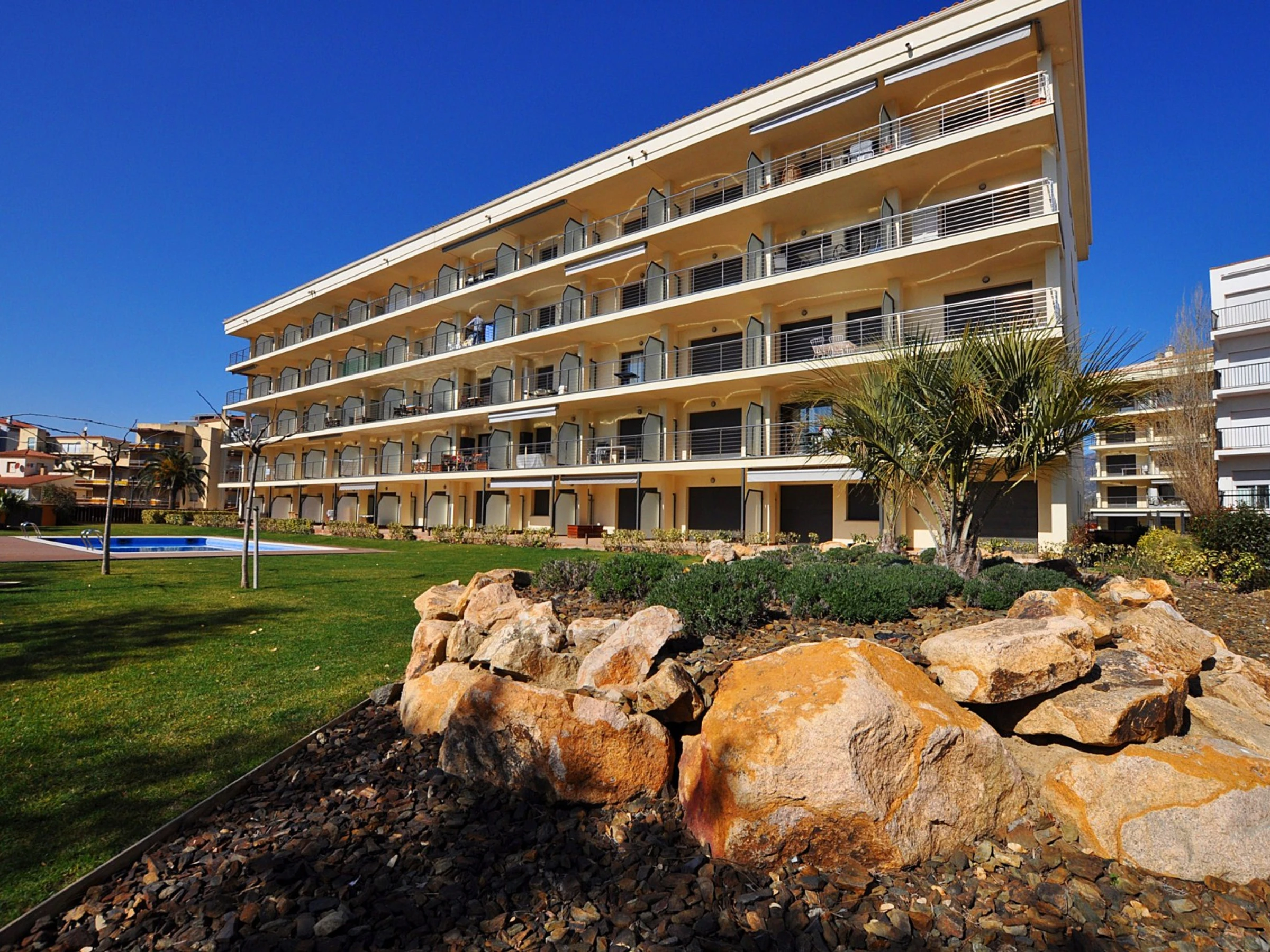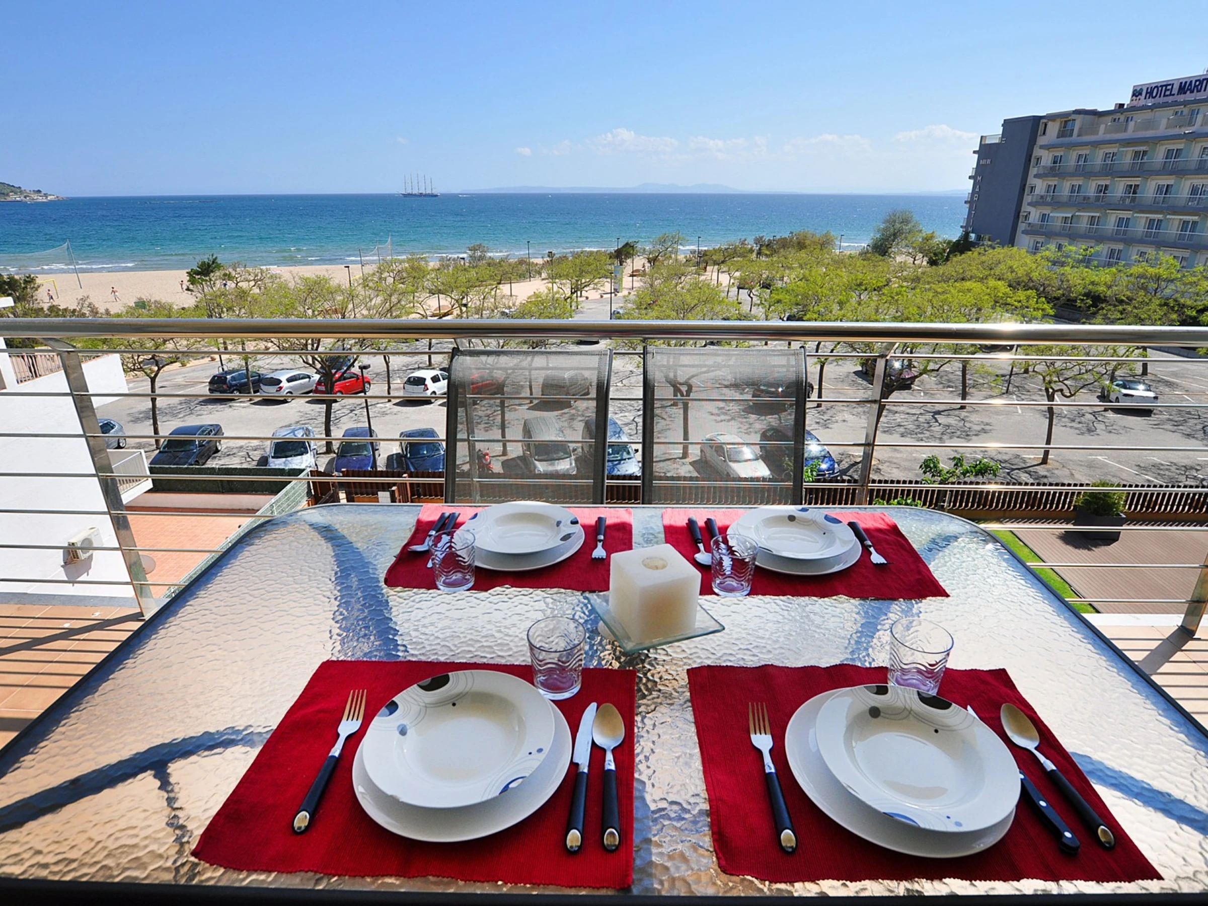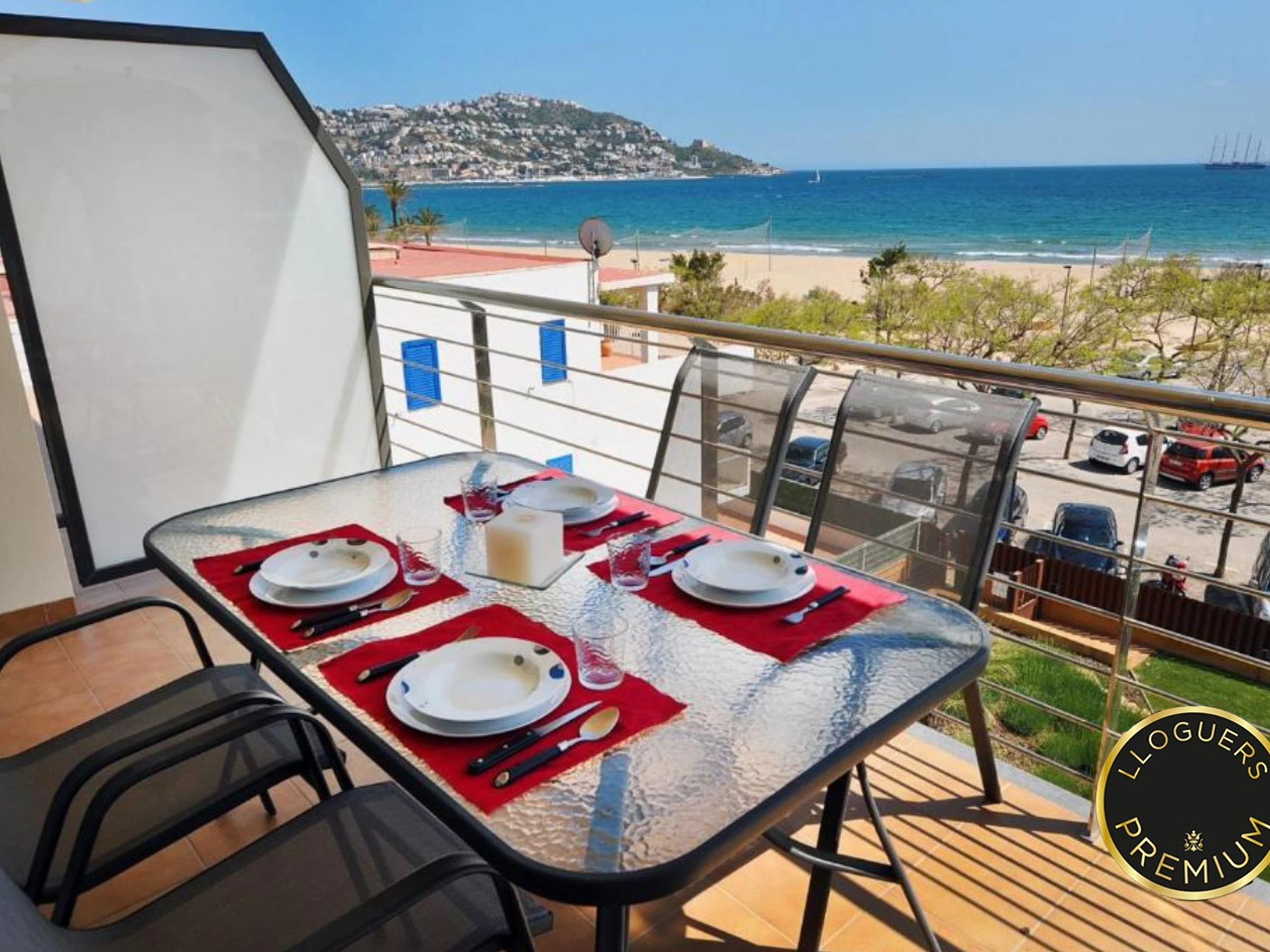 Moderno apartamento frente al mar con piscina, aire acondicionado, Wi-Fi y parking en Rosas