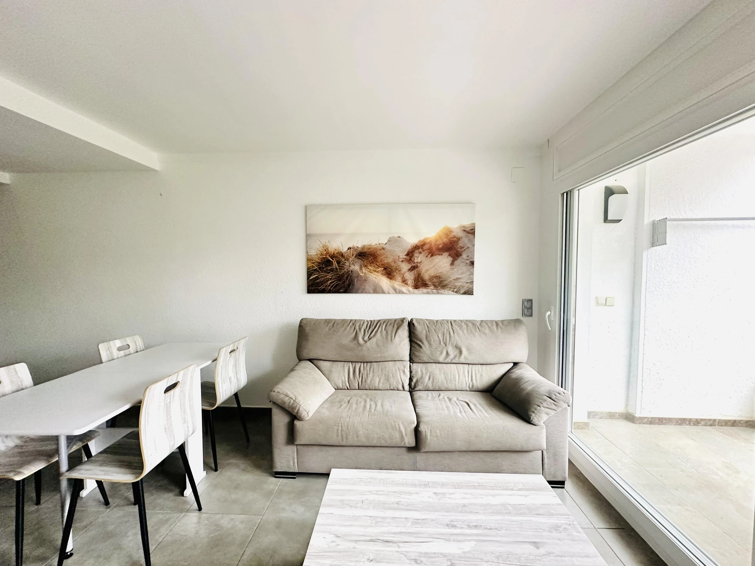 Disfrute de la ubicación de este apartamento en pleno corazón del pueblo, cerca de todo,del Puerto Deportivo y Pesquero, de la amplia playa y del paseo marítimo que le llevará al camino de Ronda donde podrá disfrutar del sonido de las olas y por qué no? ¡Un baño desde las rocas! Completamente renovado, muy espacioso, céntrico con todas las comodidades, AIRE ACONDICIONADO en pasillo y salón. wifi 60m2 para 4 pers.: 1 cama x 1,50 + 2 camas nido ( 90). terraza. NO SE ADMITEN ANIMALES. Sábanas y toallas no incluidas.