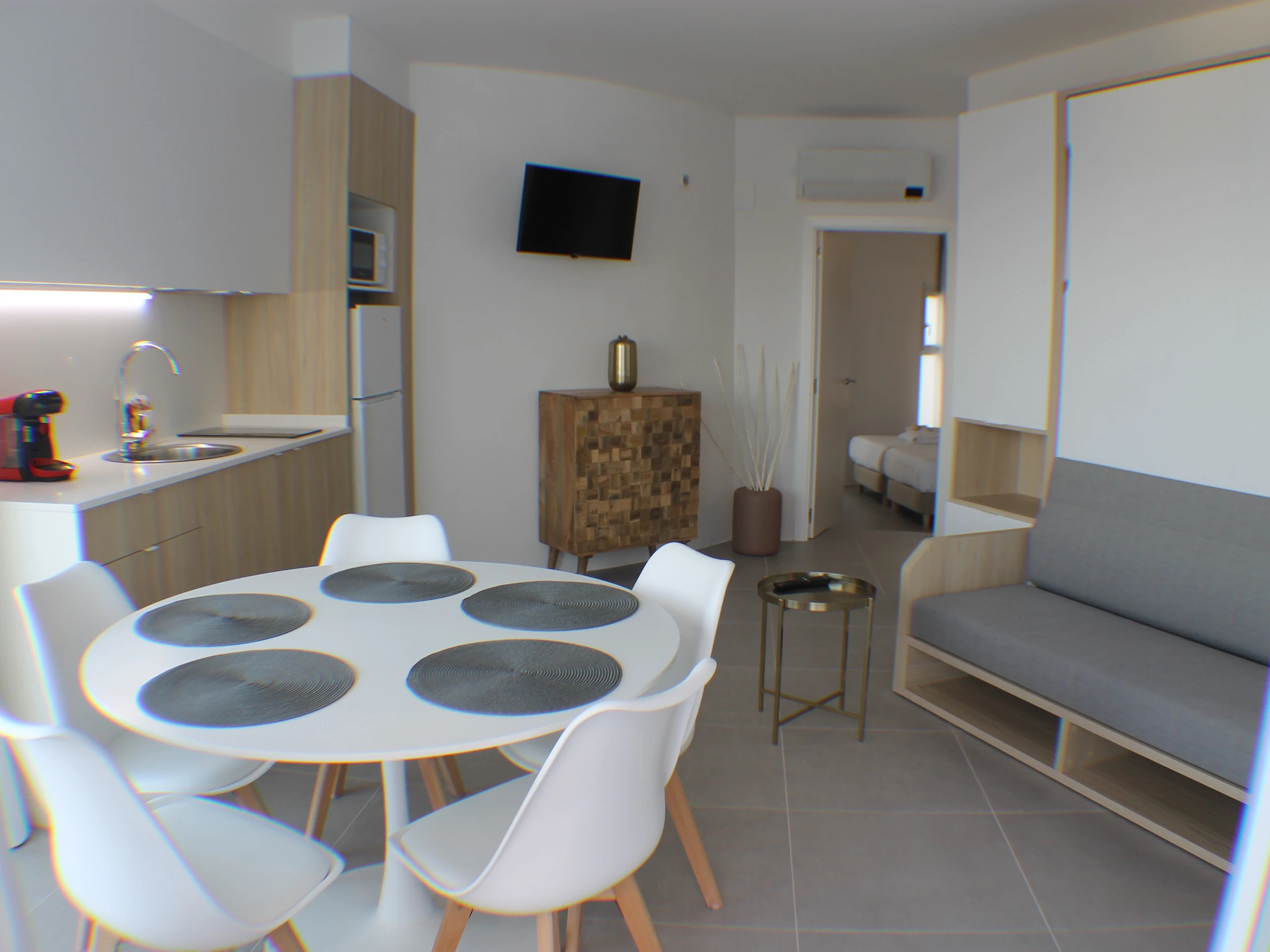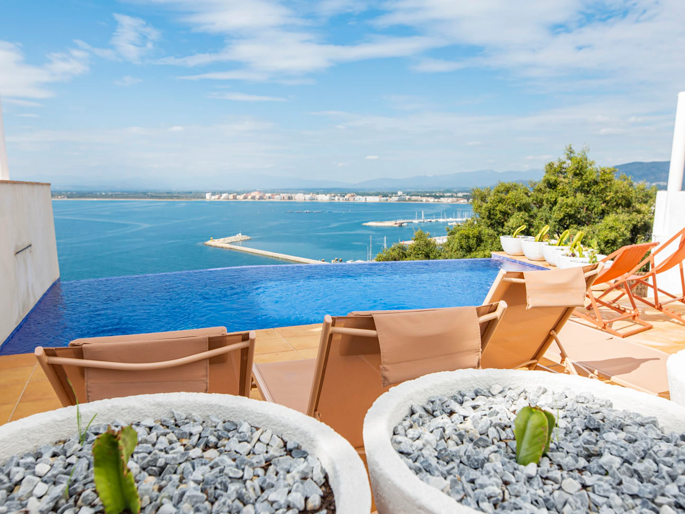 Exclusivo apartamento para cuatro personas, ideal para parejas o viajeros que buscan una experiencia única y de estilo en Roses. Este espacio cuenta con un diseño abierto y moderno. Desde la terraza, podrás disfrutar de unas vistas inigualables sobre la bahía de Roses, donde las puestas de sol recrean un maravilloso atardecer.