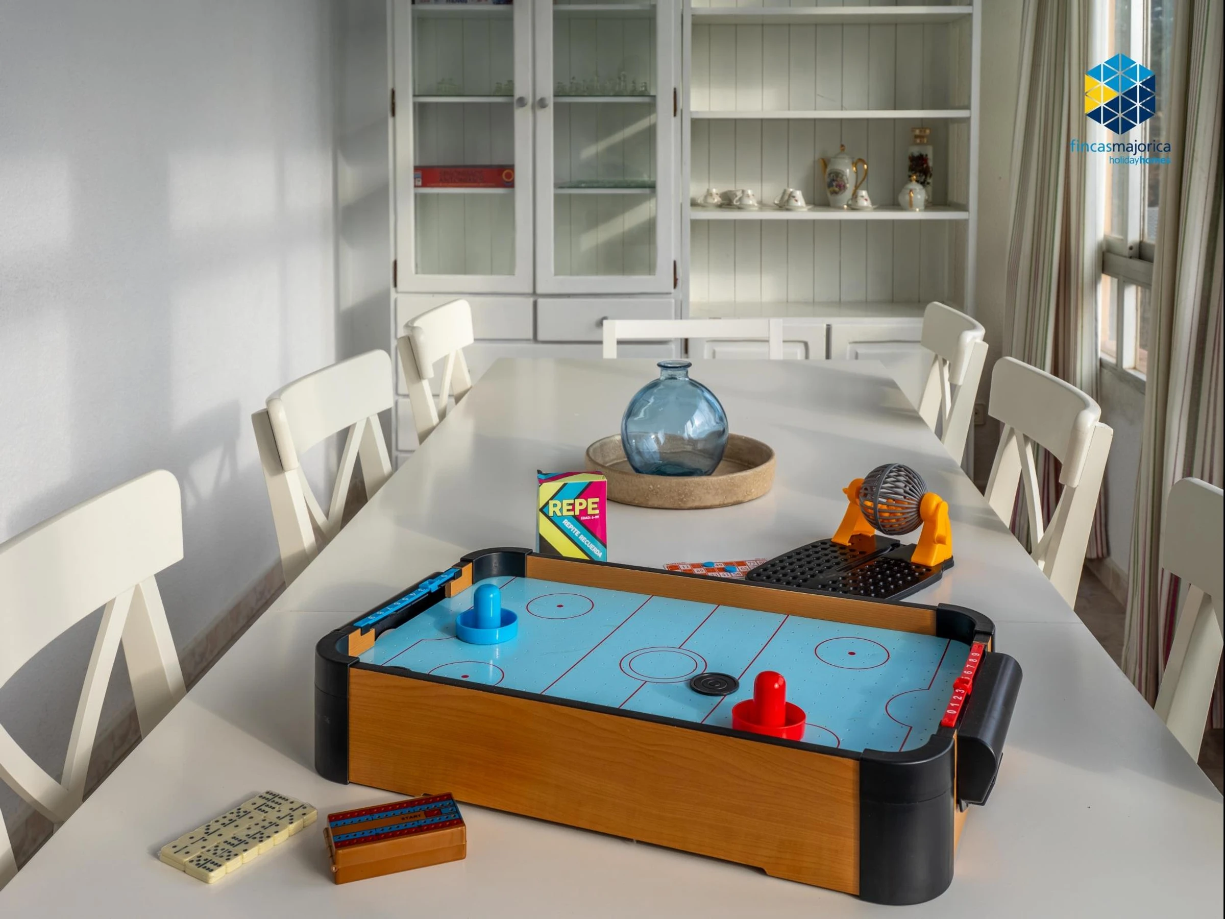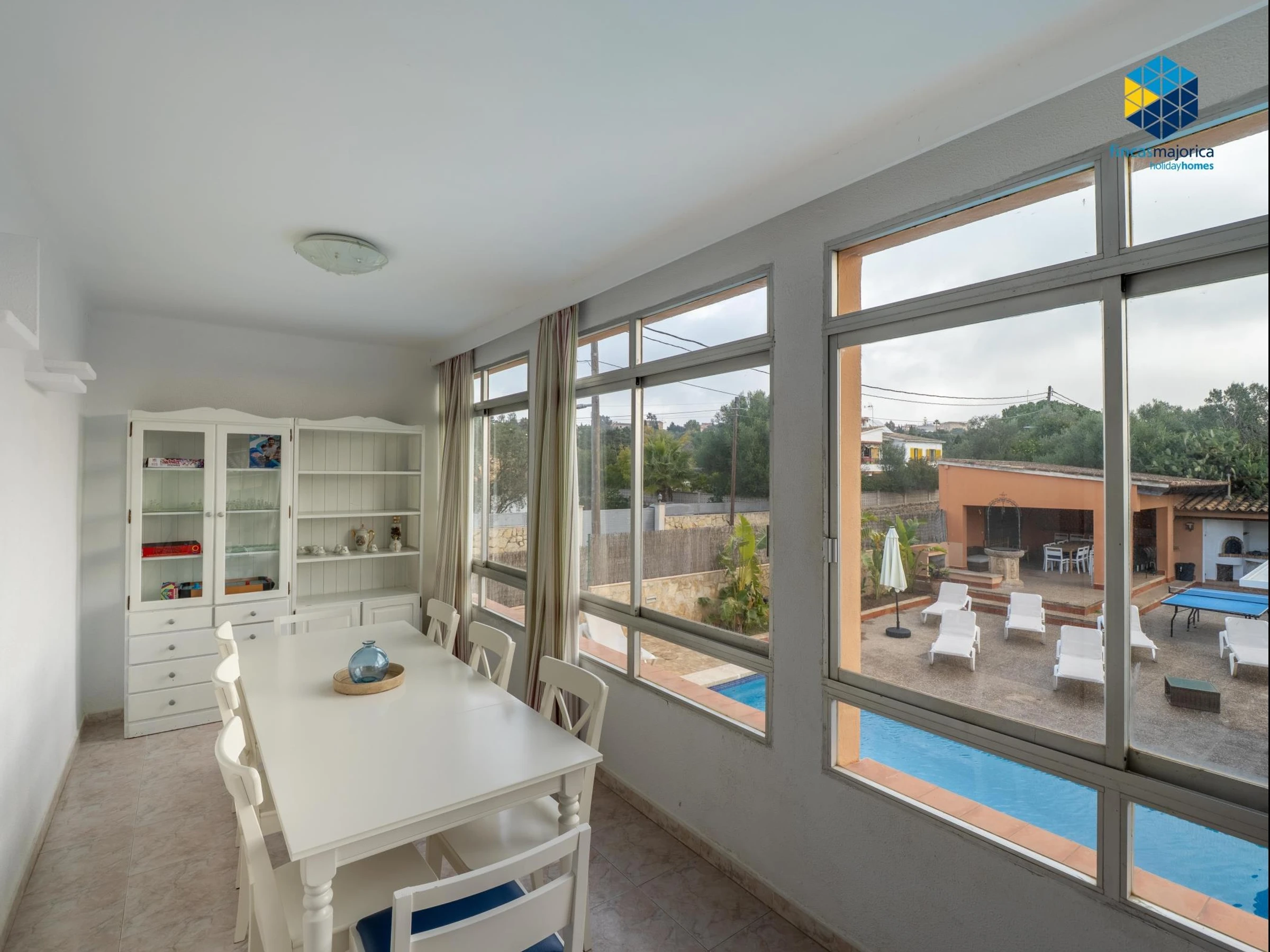 En la zona de estar encontrarás una Smart TV, ideal para relajarse tras un día de playa o excursiones. En el exterior, la vivienda ofrece una espectacular piscina privada de 12 x 6 metros(profundidad de 1,20 a 3 m) con dos escaleras metálicasy 8 hamacas, barbacoa exterior, mesa de ping-pong y una pista de tenis privada exclusiva para los clientes.
