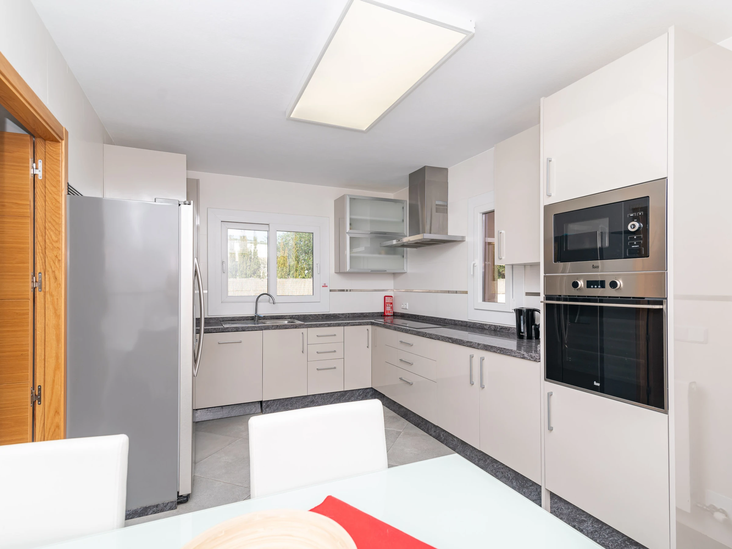 La villa, construida con esmero y dedicación, tiene todo lo que necesitas para una experiencia de vacaciones única. Afuera, la gran piscina, rodeada de un espacioso jardín y terraza, te invita a relajarte al sol, mientras la terraza cubierta es el lugar perfecto para disfrutar de una comida preparada en la barbacoa, tomar una bebida o simplemente descansar con una buena lectura. Desde aquí, puedes vigilar a los más pequeños mientras juegan en el jardín, sintiendo la tranquilidad del entorno.