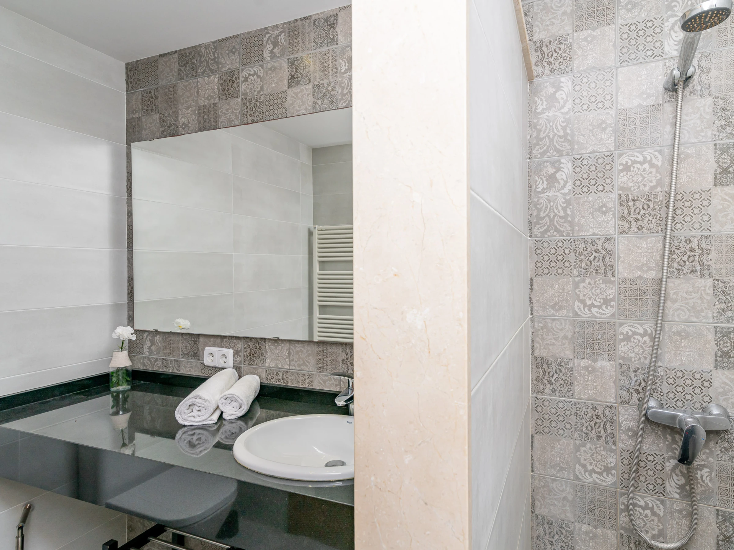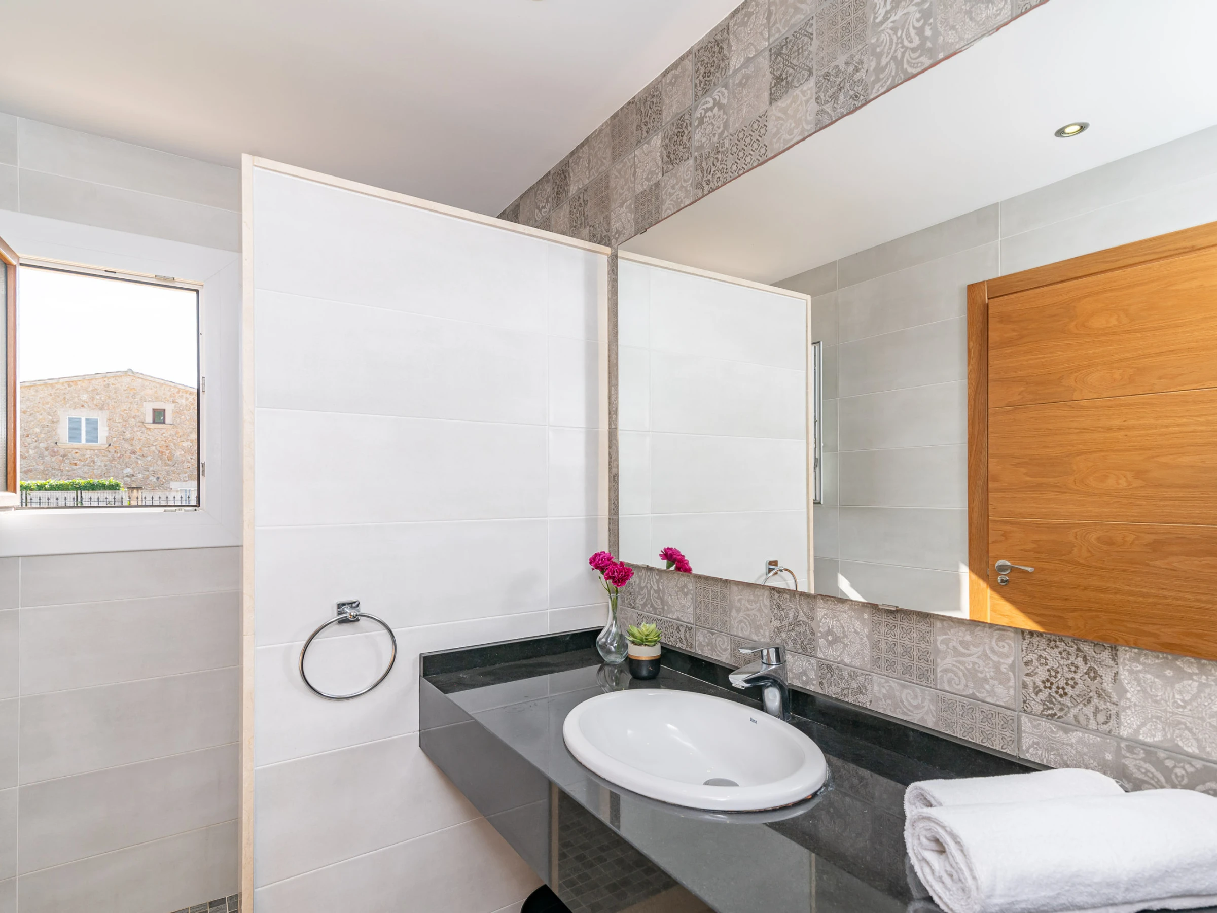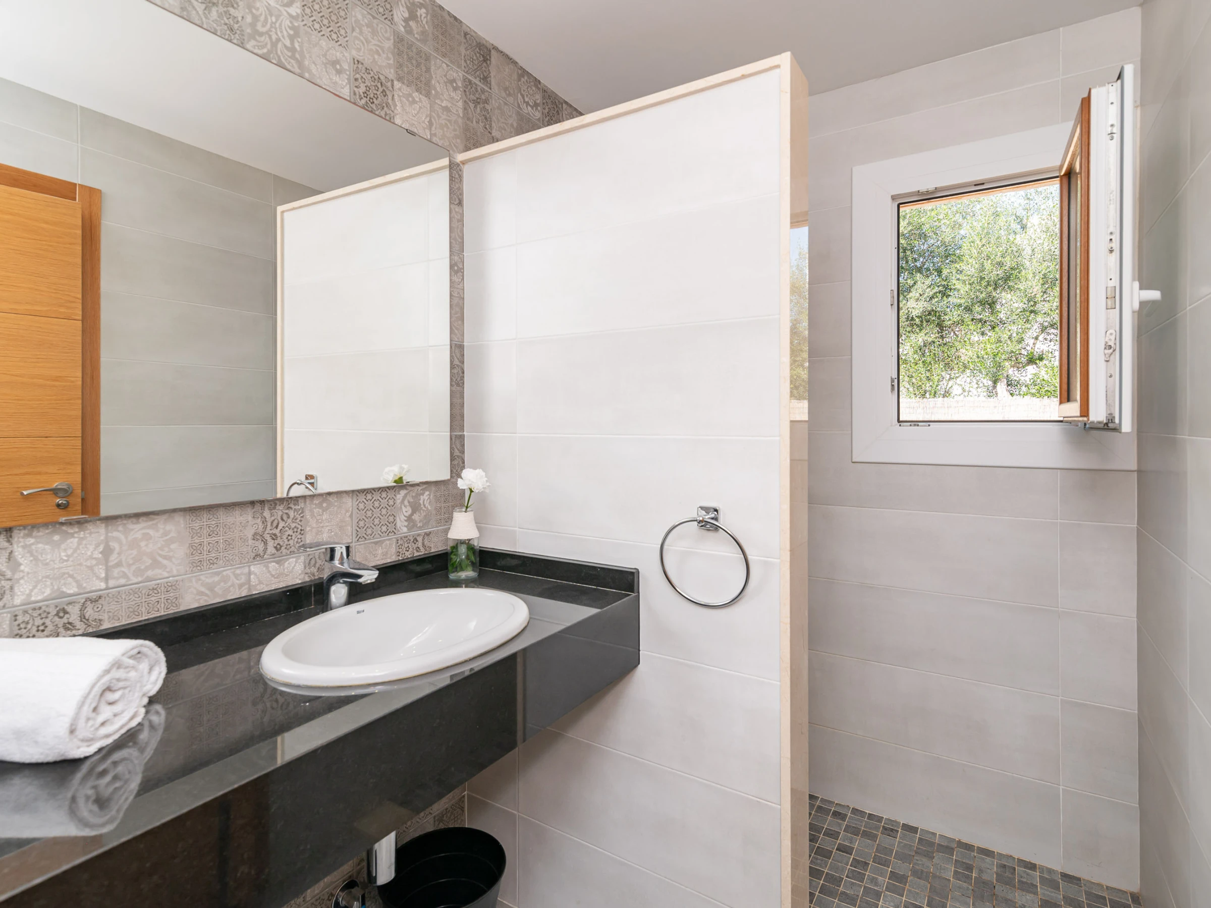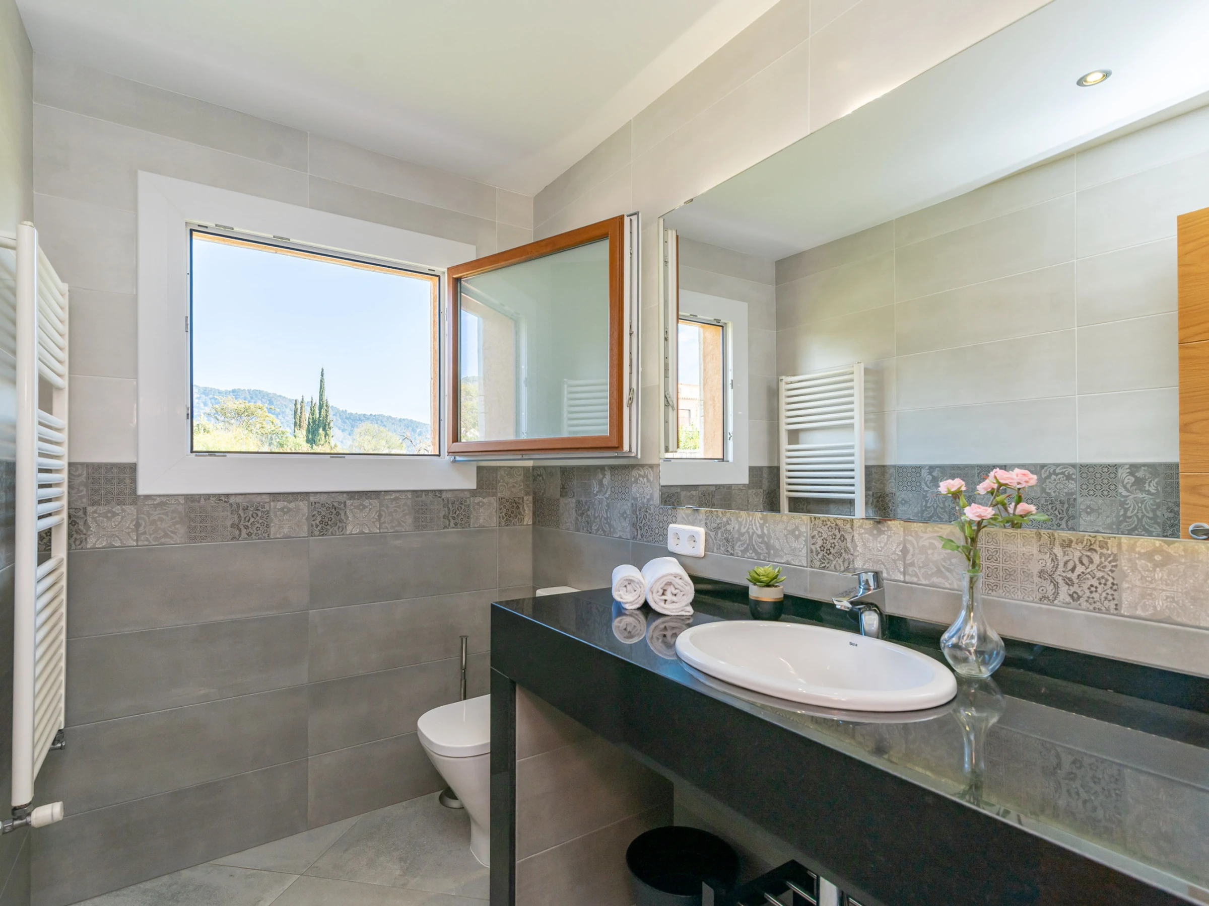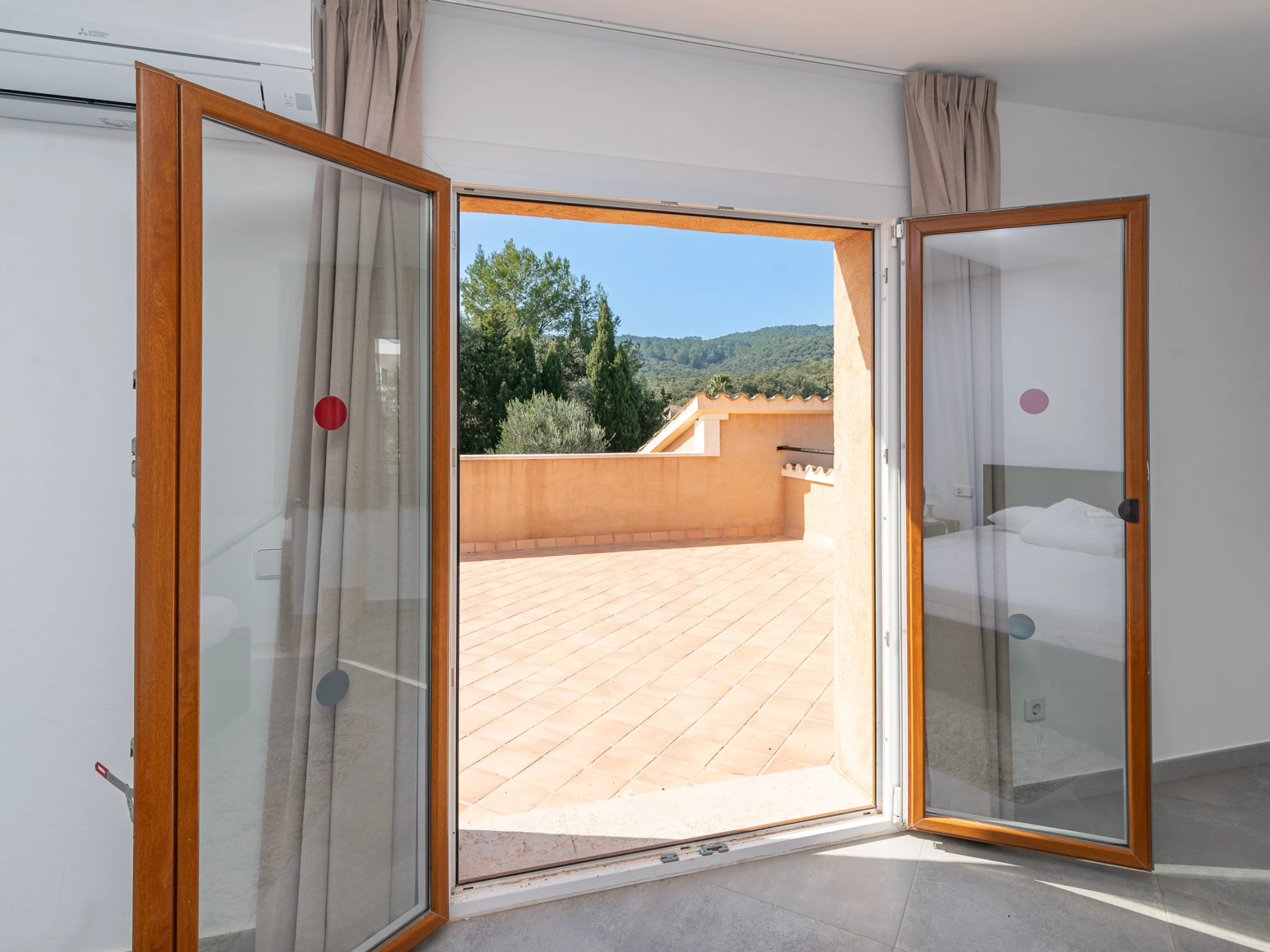En la primera planta, encontrará una cuarta habitación con cama doble, baño en suite con bañera y un balcón desde donde podrá admirar las espectaculares vistas de la Serra de Tramuntana, un lugar que invita a la calma y la reflexión.