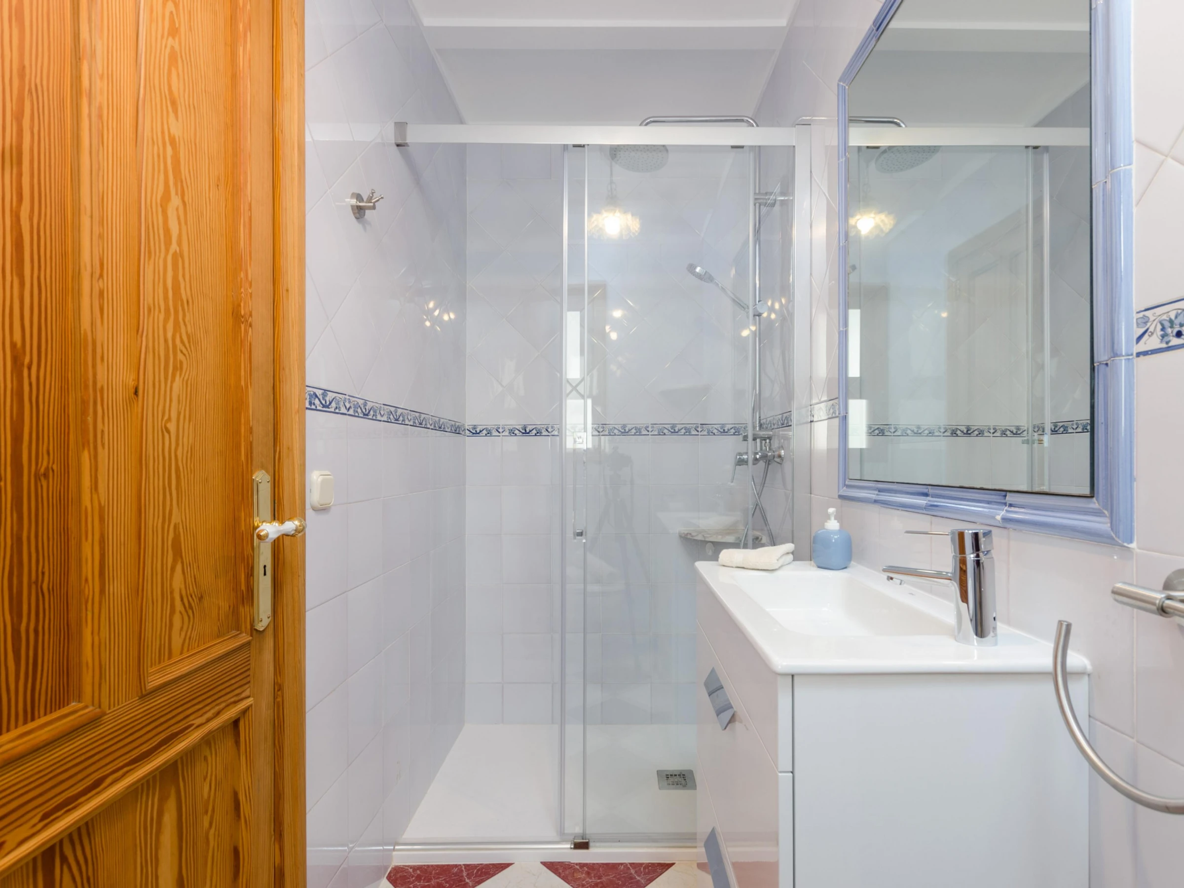 Dentro, encuentran un tradicional salón, con TV-Satélite y aire acondicionado, abierto a la zona de comedor tras un gran arco mallorquín. Seguido tienen la cocina, equipada con una cocina industrial de gas, una mesa con sillas y un banco y mucho espacio. Hay tres habitaciones con armario y A/C, dos de ellas con cama de matrimonio y una con dos camas individuales. Si se alojan con un bebé, prepararemos una cuna y una trona. Dos baños, uno con bañera y otro con ducha completan el alojamiento. Hay lavadora, plancha y tabla de planchar. La vivienda ofrece calefacción central gasoil.