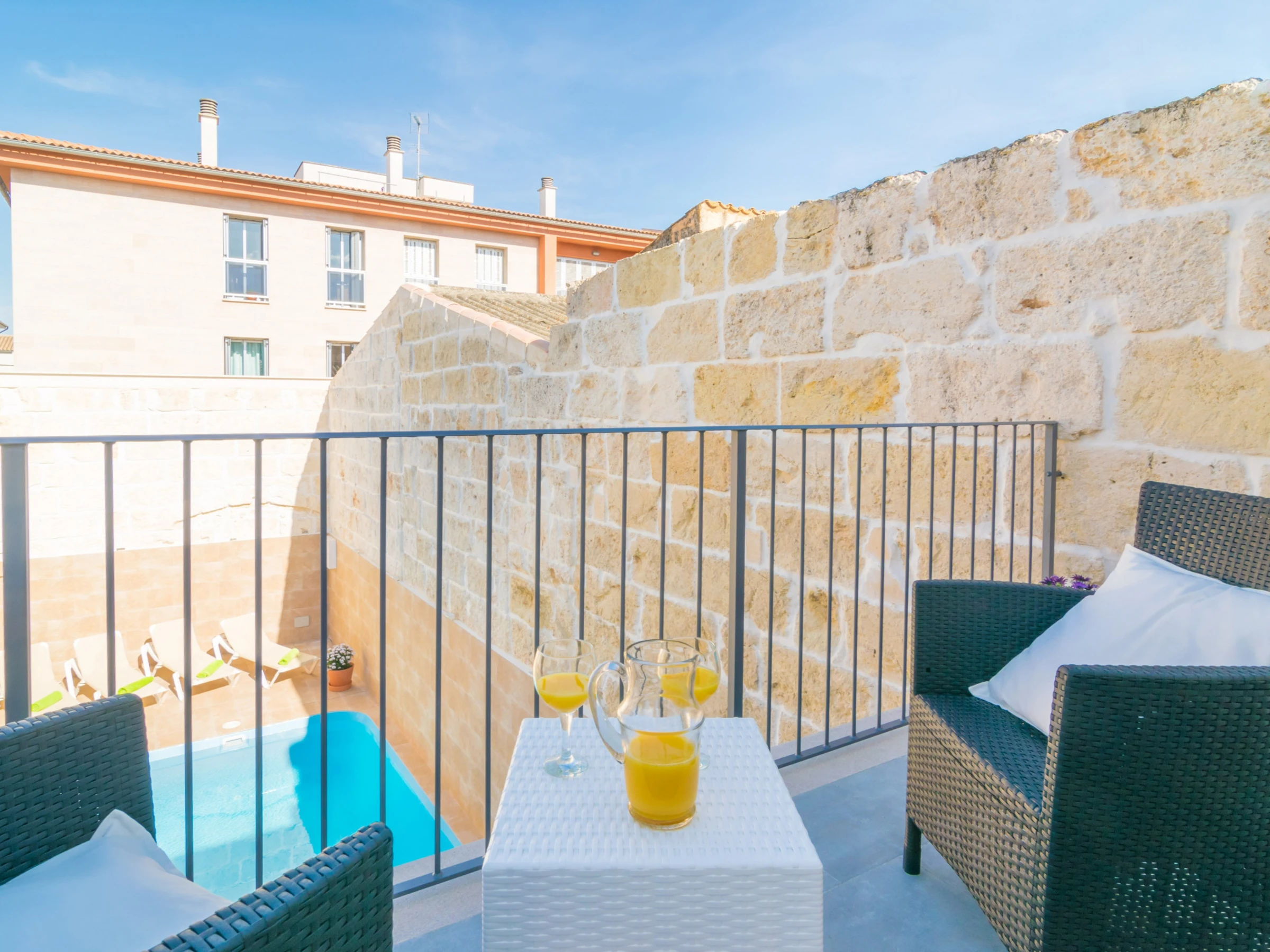 La terraza de esta estupenda casa de dos plantas es sin duda el lugar favorito de nuestros huéspedes. La calidez que ofrecen los altos muros de piedra, que rodean la espectacular piscina, transforma el espacio en un auténtico paraíso, imagen de revista, dentro de la ciudad. La piscina de cloro mide 6,5 x 3,35 metros y tiene una profundidad de agua de 1,53 metros. Alrededor de la piscina encontrarás la ducha exterior, 4 tumbonas para tomar el sol o disfrutar de una interesante lectura y una estupenda mesa exterior con sillas para tus barbacoas y largas veladas.
