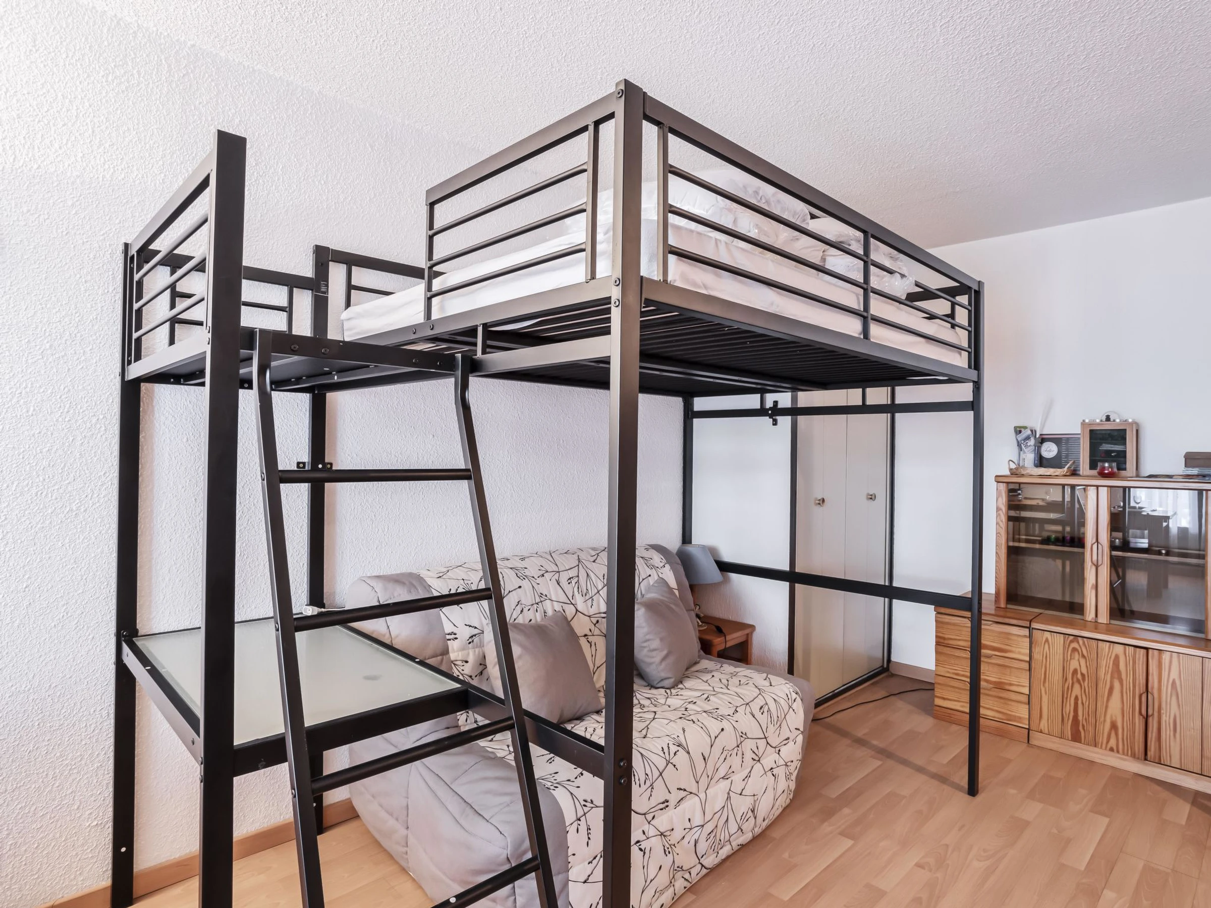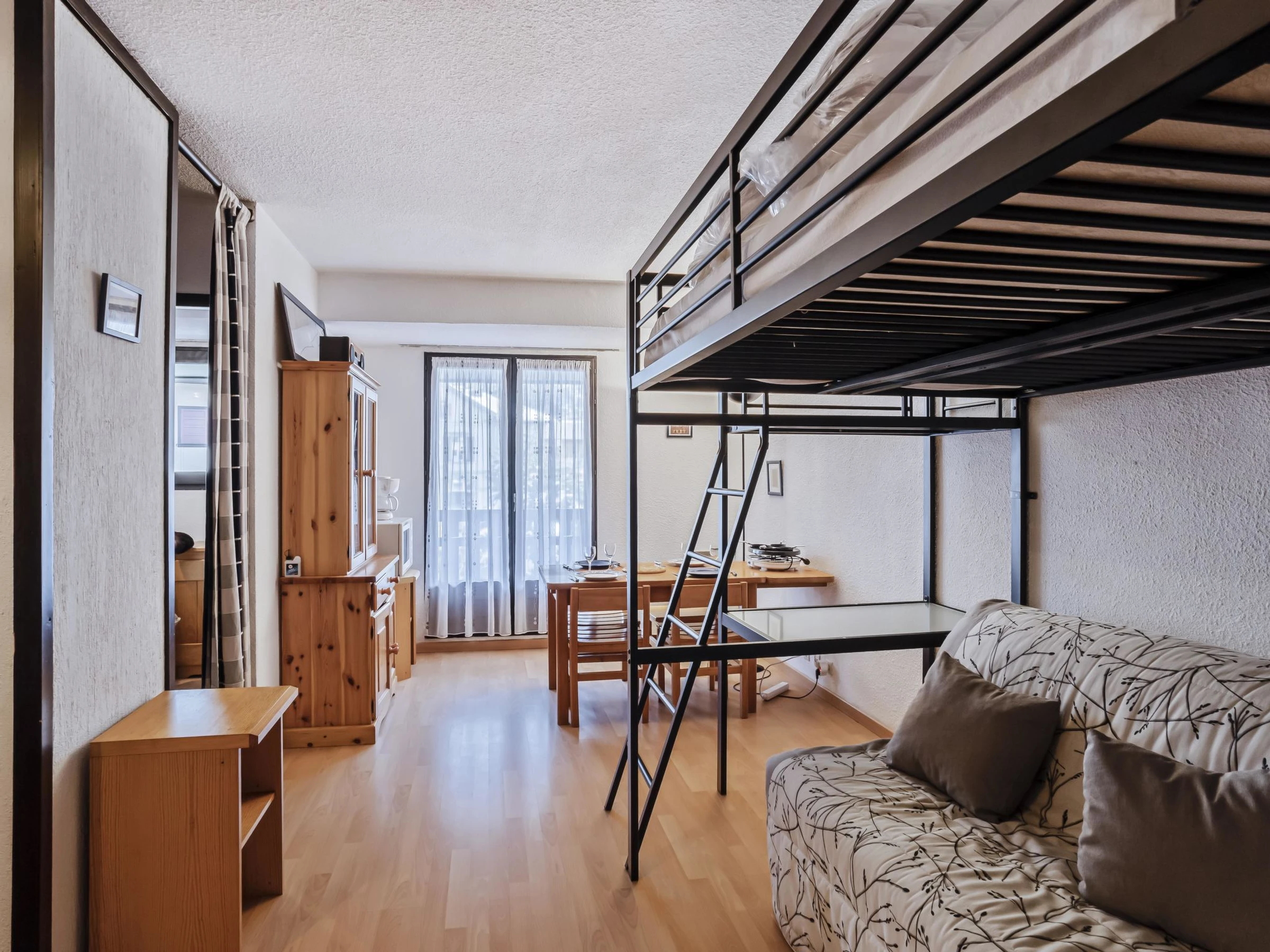 "La Comtesse", apartamento de 2 estancias 34 m2 en el 3° piso. Salón-comedor con 1 x 1 literas (140 cm, 190 cm de longitud), TV (pantalla plana). Salida al balcón. 1 dorm. con 1 cama de matrimonio (140 cm, 190 cm de longitud). Rincón-cocina (lavavajillas, 2 placas de vitrocerámica, tostadora, hervidor de agua eléctrico, microondas, cafetera eléctrica, horno Raclette). Baño/WC. Calefacción eléctrica. Balcón 6 m2, orientación este. Vista a las montañas. El alojamiento dispone de: Internet (Wifi, extra). Plaza de aparcamiento n. 331 (cubierto, 1 coche). A tener en cuenta: TV solamente FR. Detector de humo. Oferta de un particular según el art. 155, IV del CGI.