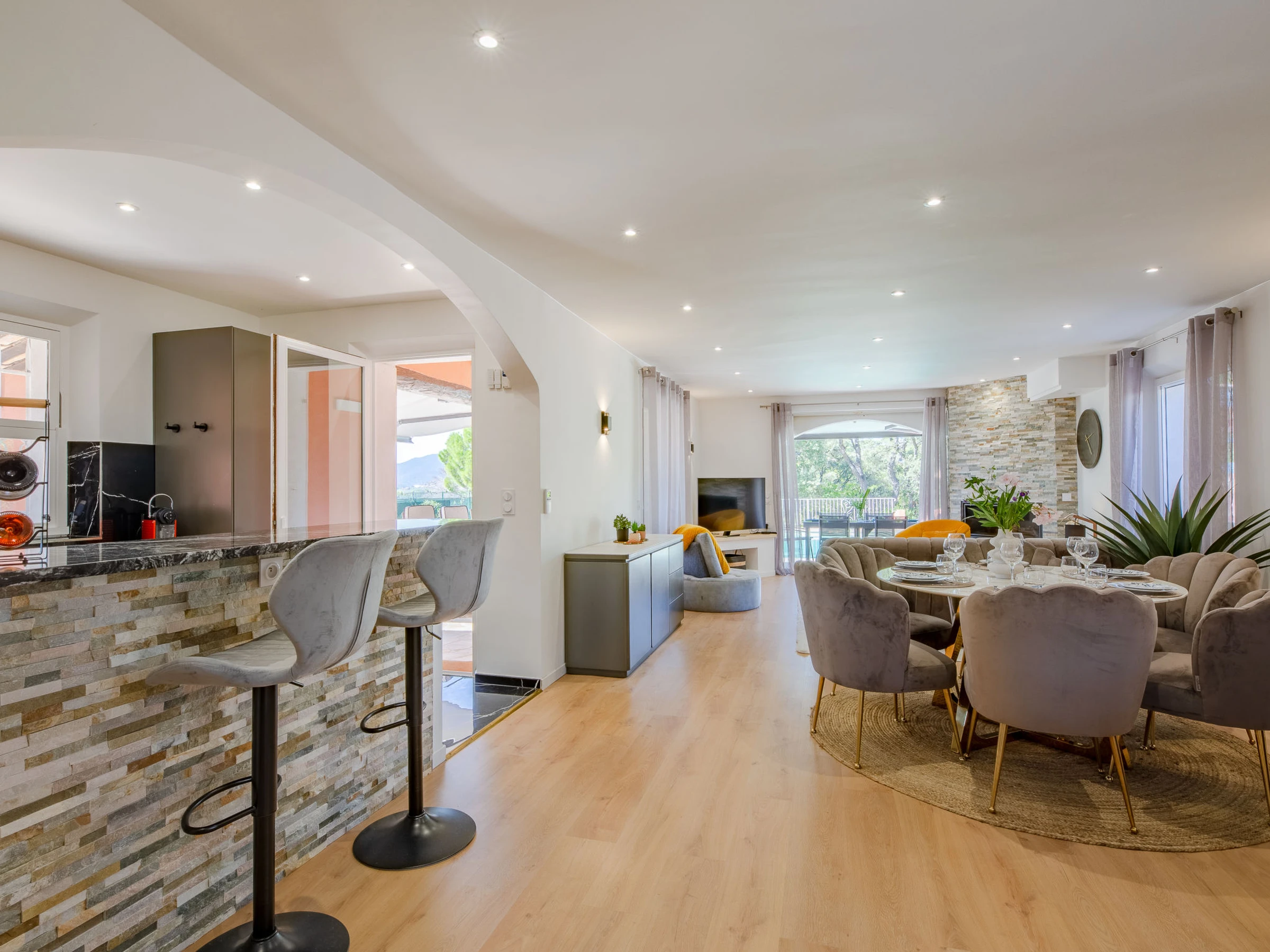 Casa unifamiliar "Villa Adie", bonita, confortable. En el barrio de Saquèdes, a 1.5 km del centro, en un barrio residencial, a 1.7 km del mar, a 1.7 km de la playa, en una calle sin salida. Privado: terreno 2'000 m2 (vallada), jardín, piscina rectangular (9 x 4 m, 110 - 160 cm de profundidad, Disponible por temporada: [hidden] - [hidden] con escalera interior y alarma. Petanca. En el inmueble: bañera de hidromasaje. Aparcamiento (para 3 coches). Estación de carga eléctrica. Tienda de comestibles 1 km, supermercado 1.5 km, panadería 500 m, parada autobús 650 m, estación de tren "TGV Saint Raphael" 25 km, playa de arena "Centre ville" 1.7 km, piscina termal "Thalasso Spa Les Issambres" 7 km. Puerto deportivo 1.7 km, campo de golf (18 hoyos) 3.5 km, tenis 3 km, rutas de senderismo desde la casa 950 m, caminos para bicicletas 300 m. Atracciones en los alrededores: Aqualand waterpark 2.5 km, Navette / shuttle boat St-Tropez 15min 2 km, Port-Grimaud 12 km, Saint-Tropez/Ramatuelle 16 km, Gorges du Verdon 80 km. Zona de senderismo Massif des Maures 1 km, Massif de l'Esterel 20 km. A tener en cuenta: coche recomendable. El propietario no acepta grupos de adolescentes/jóvenes. La entrega de llaves se realiza por la agencia en Sainte Maxime, 2 km.