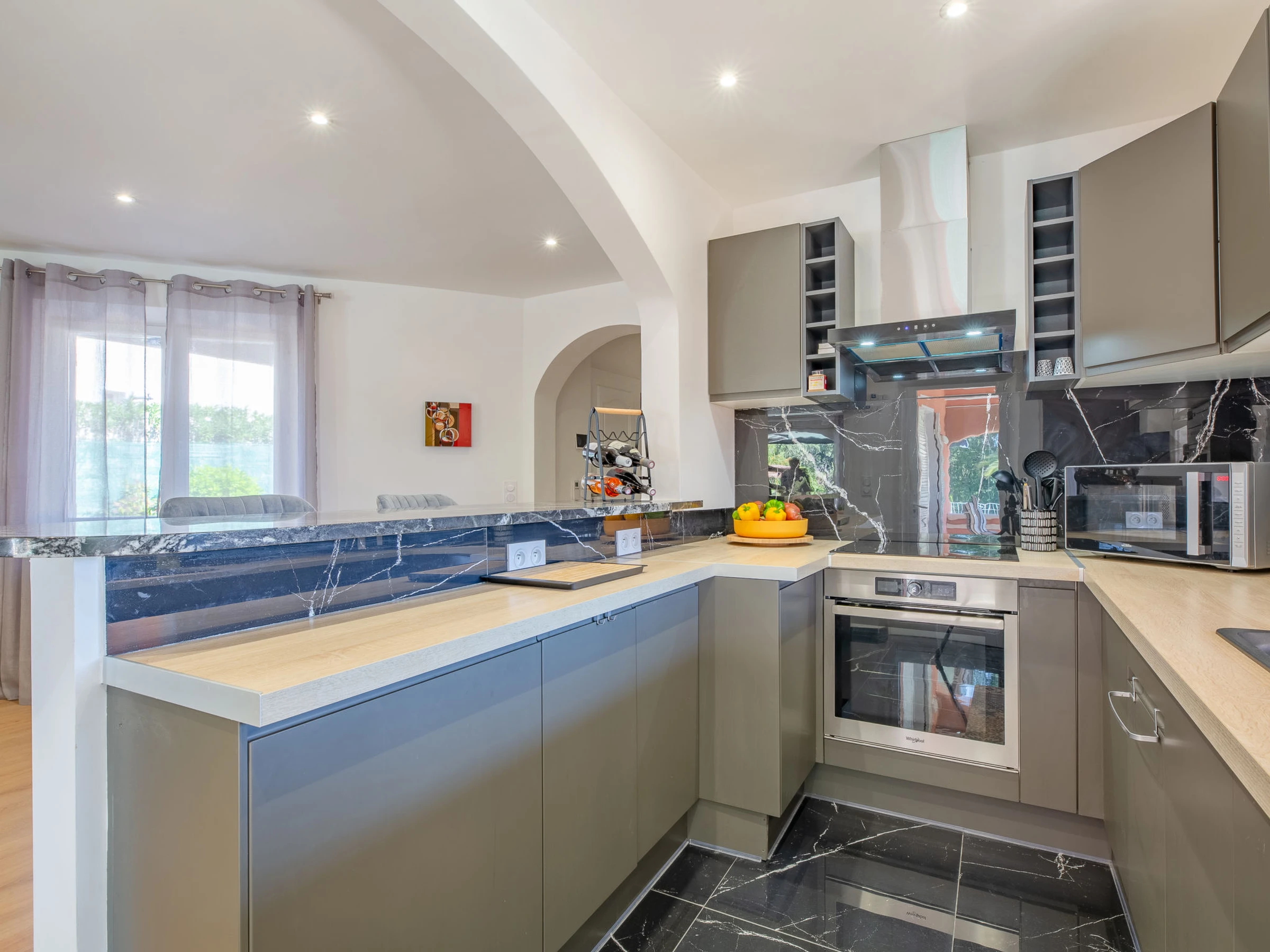 Villa 5 estancias 120 m2, orientación noroeste. Con mobiliario confortable y de buen gusto: entrada con WC separado. Salón-comedor con chimenea (sólo con función decorativa), TV (pantalla plana), aire acondicionado. Salida a la terraza, a la piscina. 1 dorm. con 1 cama de matrimonio (1 x 160 cm, 200 cm de longitud), TV (pantalla plana), aire acondicionado. 1 dorm. con 1 cama de matrimonio (1 x 160 cm, 200 cm de longitud), ducha/WC y TV (pantalla plana), aire acondicionado. Salida al jardín. Oficina. 1 dorm. con 1 cama de matrimonio (1 x 140 cm, 190 cm de longitud). Cocina abierta (horno, lavavajillas, 3 Placas de inducción, tostadora, hervidor de agua eléctrico, microondas, congelador, cafetera eléctrica). Ducha. Aire caliente. Terraza 30 m2, orientación norte terraza 15 m2, cubierta, orientación oeste. Muebles de terraza, barbacoa. Vista al paisaje. El alojamiento dispone de: lavadora, plancha, secador de pelo. Internet (Wifi, gratis). Plaza de aparcamiento (3 Coches). A tener en cuenta: casa para no fumadores. Detector de humo. Oferta de un propietario comercial según el art. 155, IV, CGI [hidden]