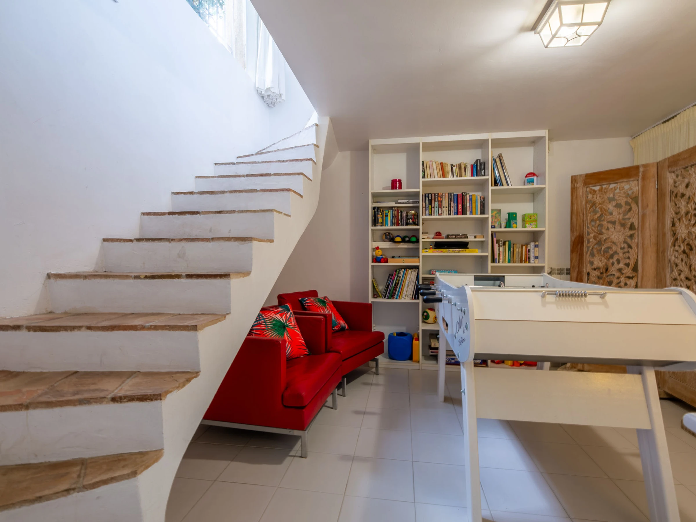 Casa 5 estancias 200 m2 en 3 plantas. Con mobiliario confortable y bonito: salón-comedor grande con chimenea (sólo con función decorativa), TV satélite. Salida al jardín, a la piscina. 1 dorm. con 2 camas (90 cm, 200 cm de longitud), aire acondicionado. Salida al jardín. 1 dorm. con 2 camas (90 cm, 200 cm de longitud), aire acondicionado. Cocina abierta (2 fogones, horno, lavavajillas, 2 placas de vitrocerámica, tostadora, hervidor de agua eléctrico, microondas, congelador, cafetera eléctrica). Salida al jardín. Ducha, WC separado. En planta inferior: 1 dorm. con 2 camas (90 cm, 200 cm de longitud), ducha/WC y aire acondicionado. Sala de juegos abierta. Planta superior: 1 dorm. con 1 cama de matrimonio (180 cm, 200 cm de longitud), aire acondicionado. Baño, WC separado. Calefacción eléctrica. Muebles de terraza. Vista muy bonita al mar. El alojamiento dispone de: lavadora, trona, cuna hasta 2 años. Internet (Wifi, gratis). Plaza de aparcamiento. A tener en cuenta: apartamento para no fumadores. Detector de humo. [hidden]
