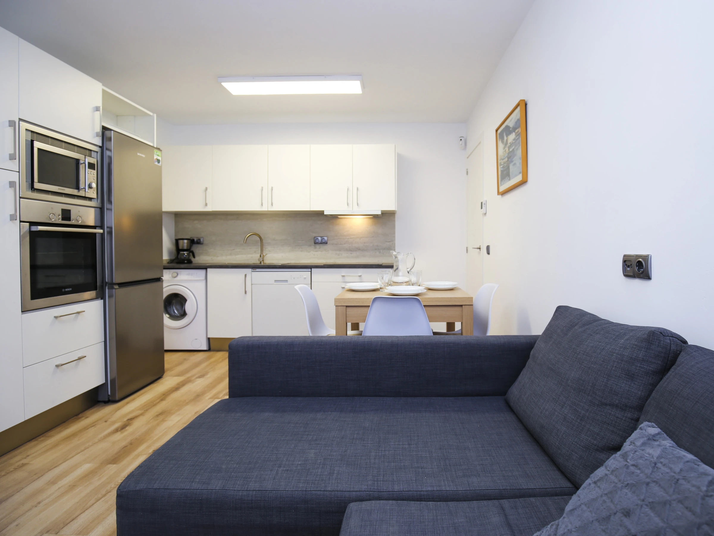 Cocina americana totalmente equipada con los utensilios y electrodomésticos necesarios para preparar tus comidas durante la estancia.