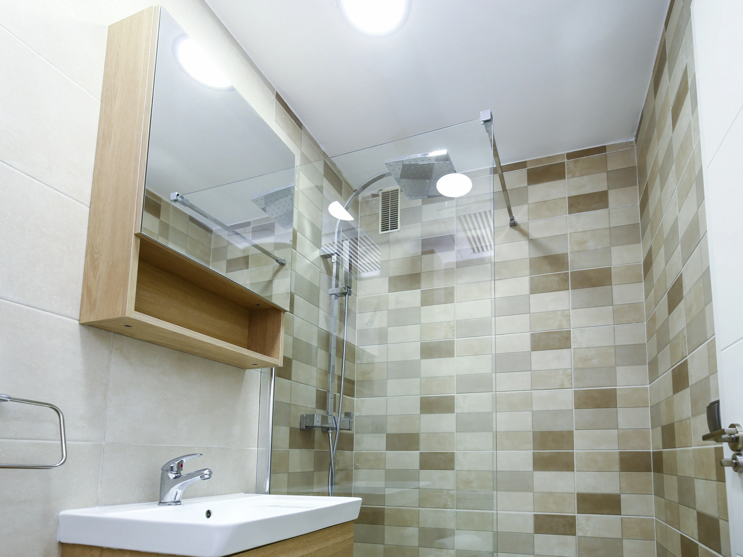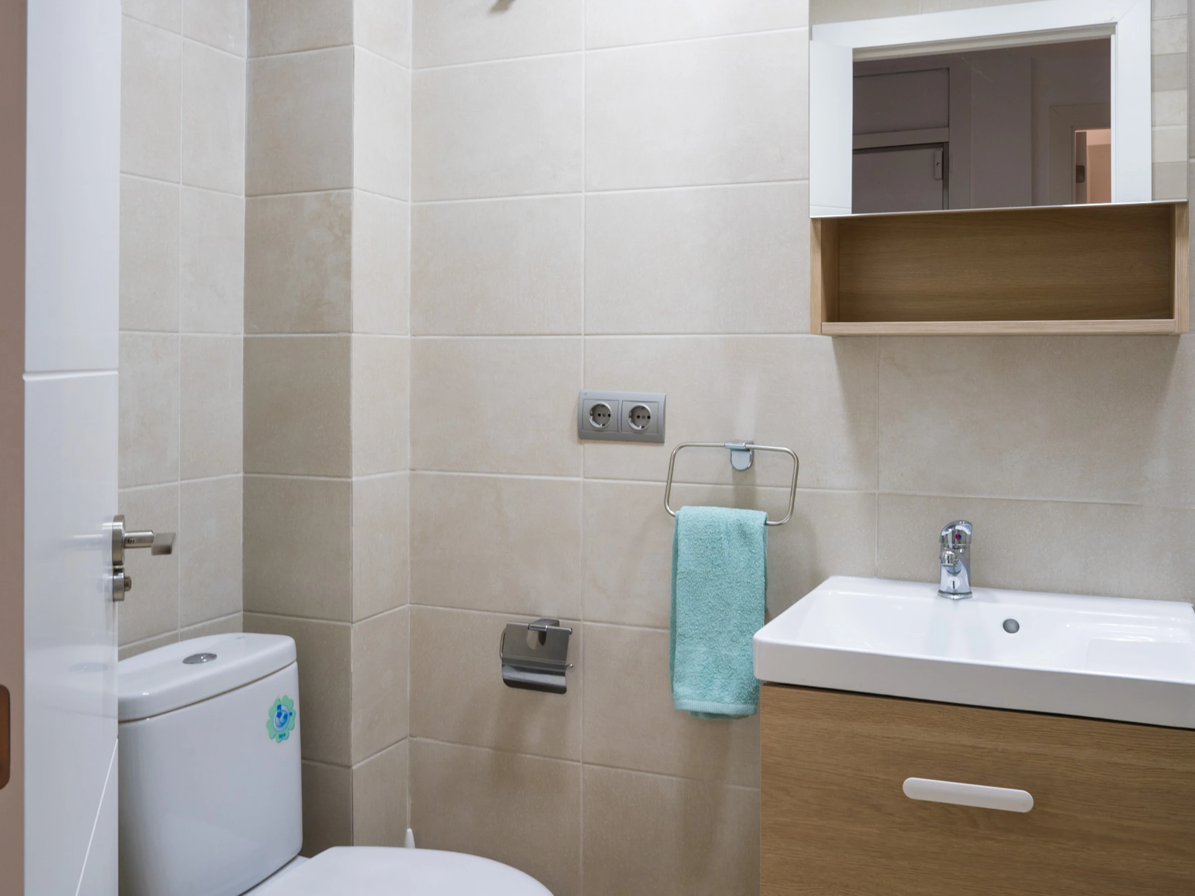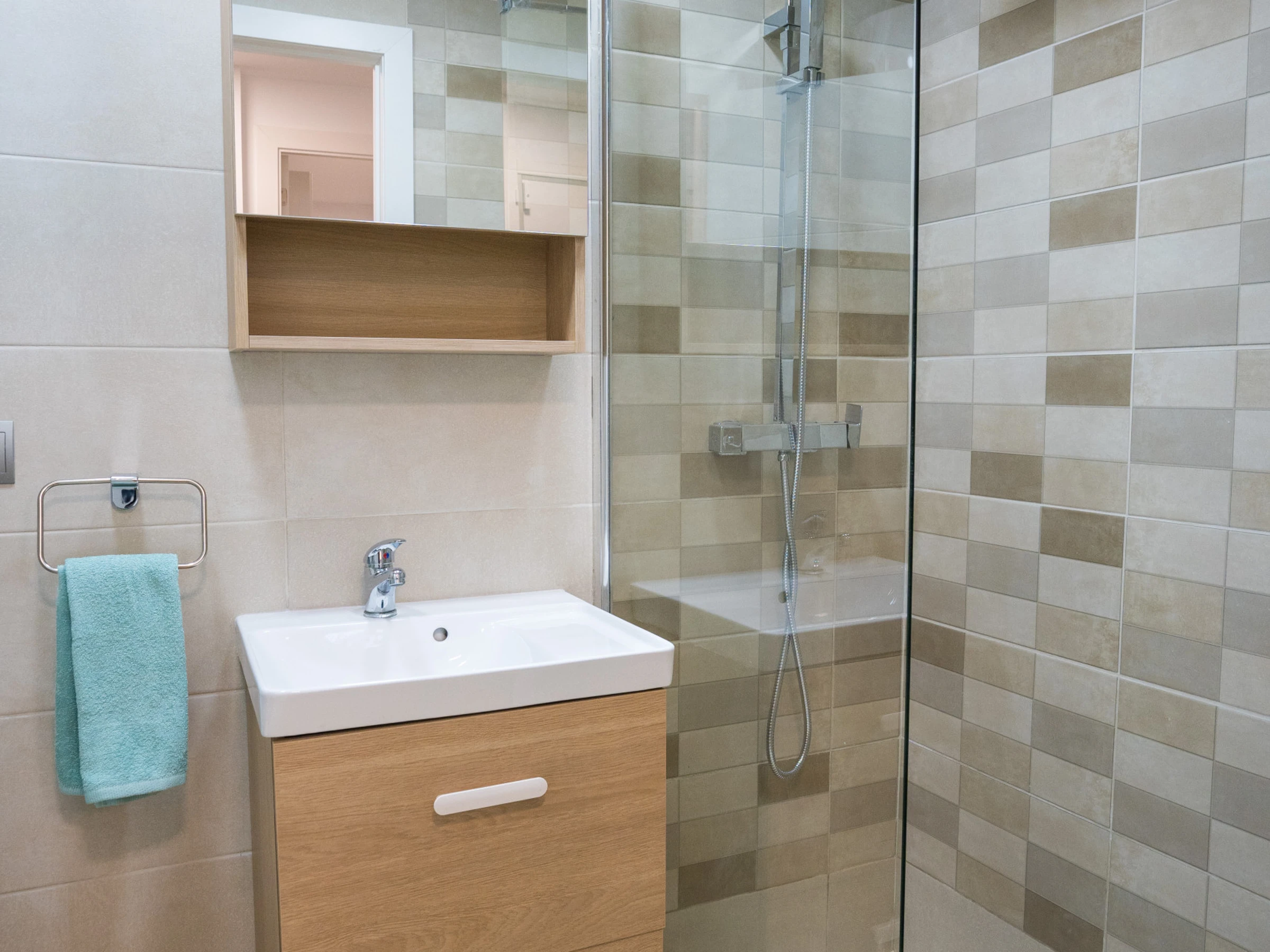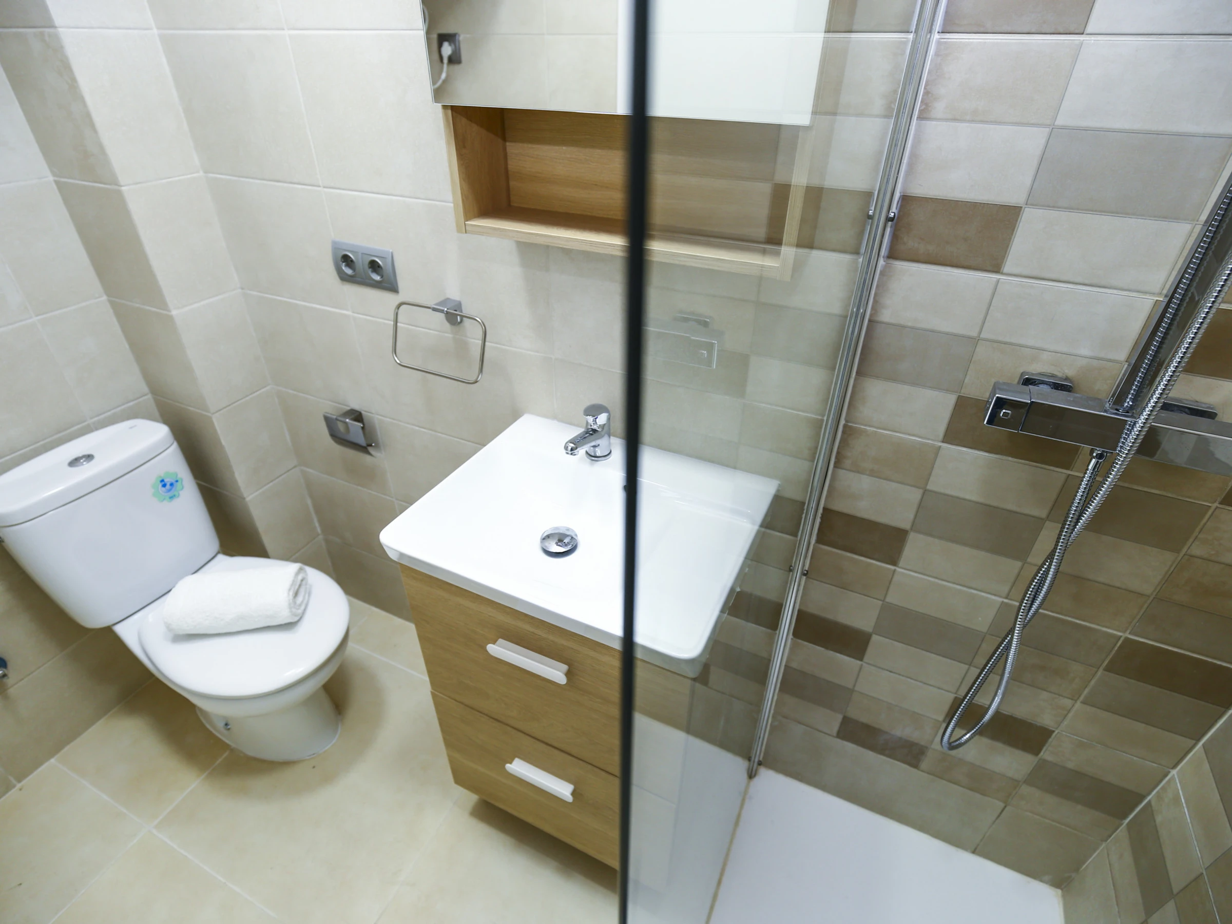 1 baño con ducha, moderno y funcional.