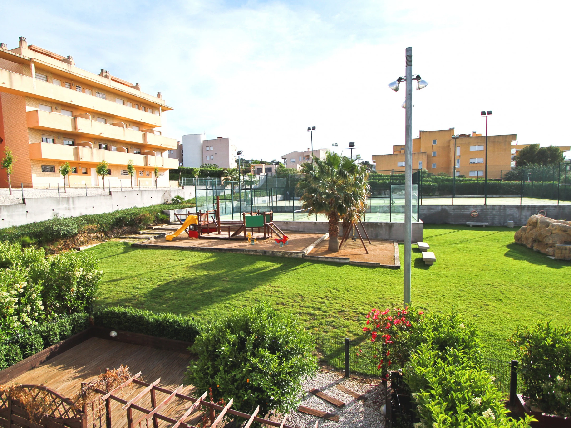 Cuentan con unas instalaciones comunitarias de calidad, que se componen de zona ajardinada con piscinas, pistas de tenis, paddle y 2 parques infantiles .