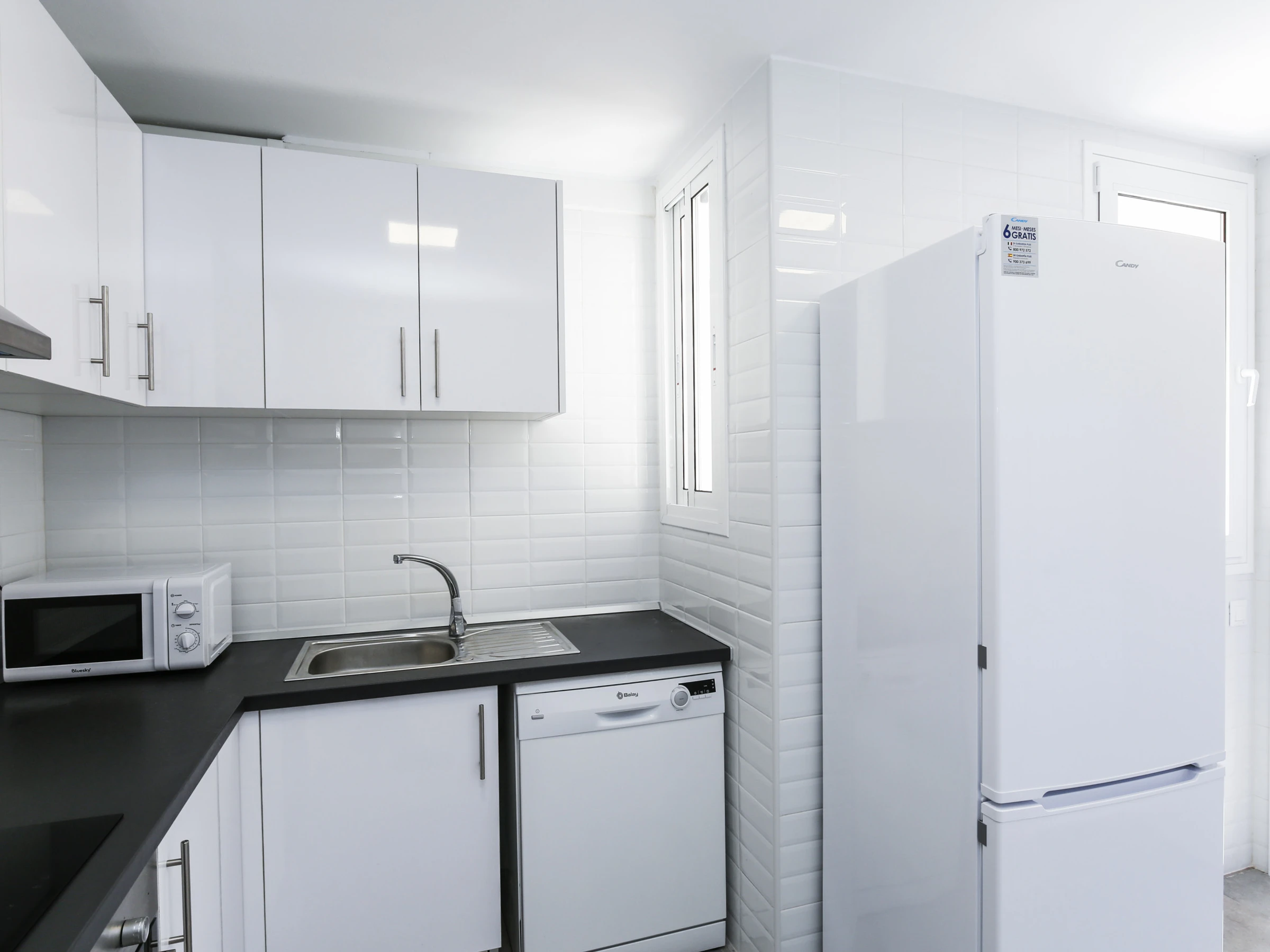 La amplia cocina está totalmente equipada con electrodomésticos de última generación, incluido un práctico lavavajillas, que hará que la preparación de tus comidas sea más sencilla y cómoda.