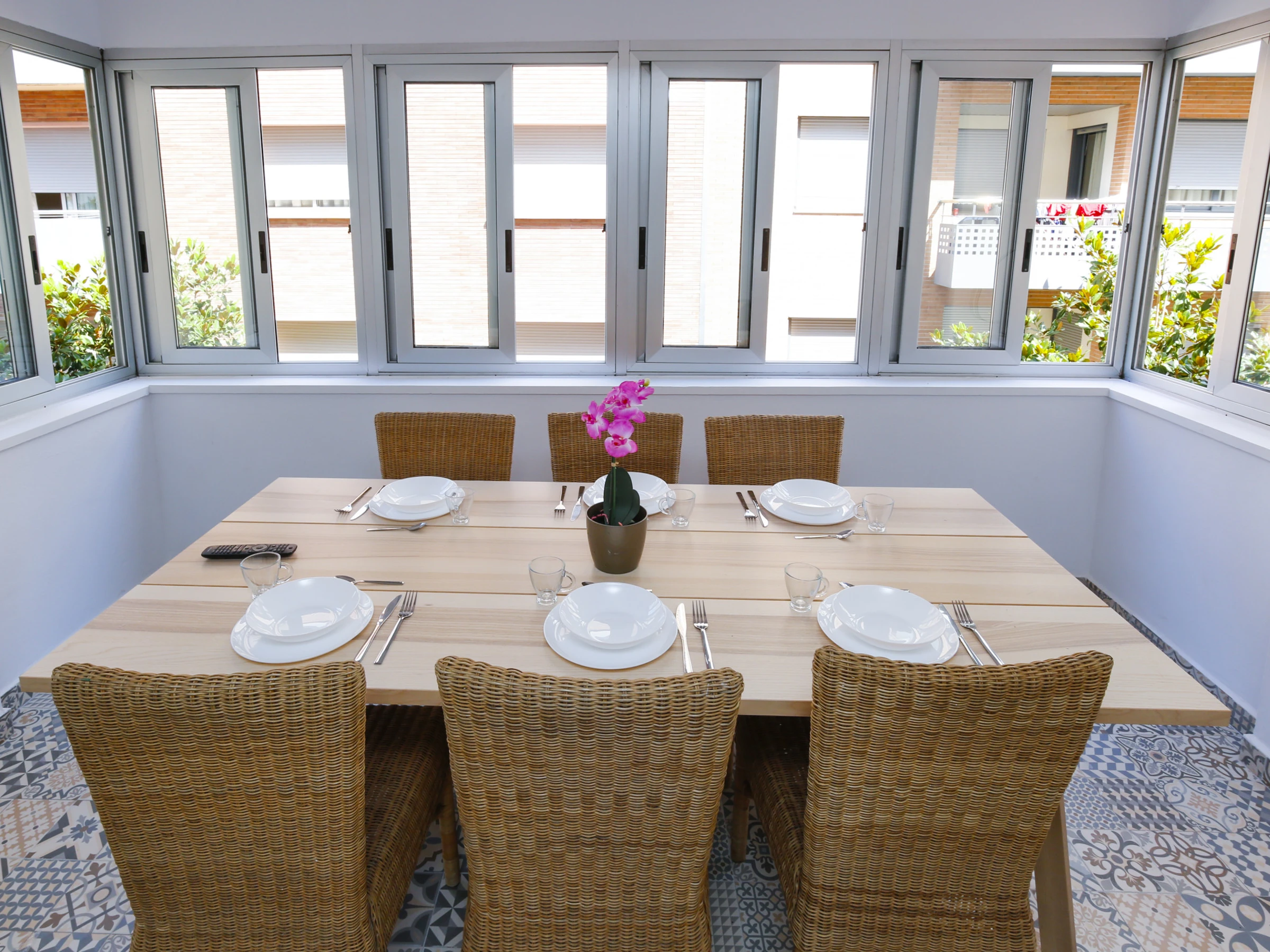 El Apartamento Valencia cuenta con dos unidades de aire acondicionado split, ubicadas en el comedor y el pasillo, para garantizar una temperatura agradable en todo momento.