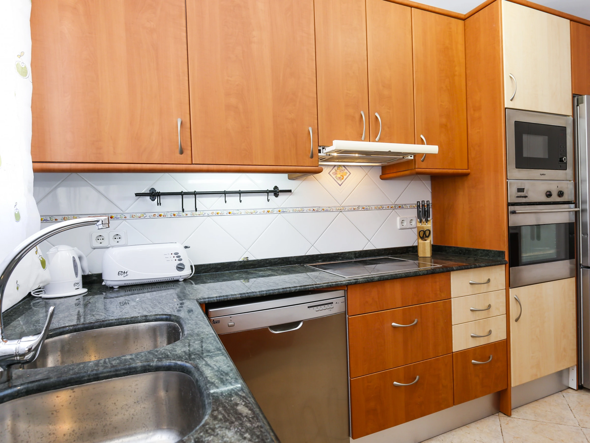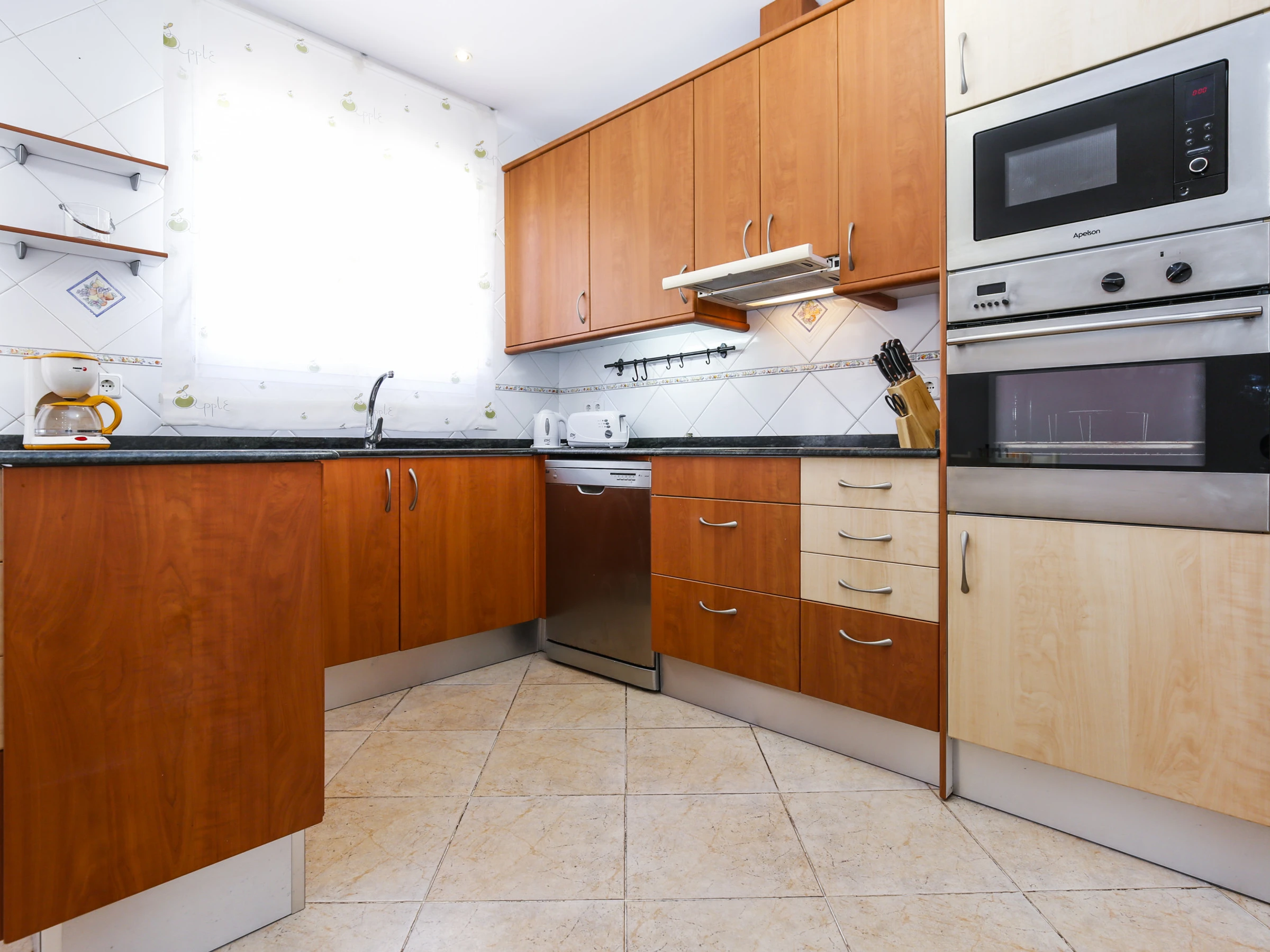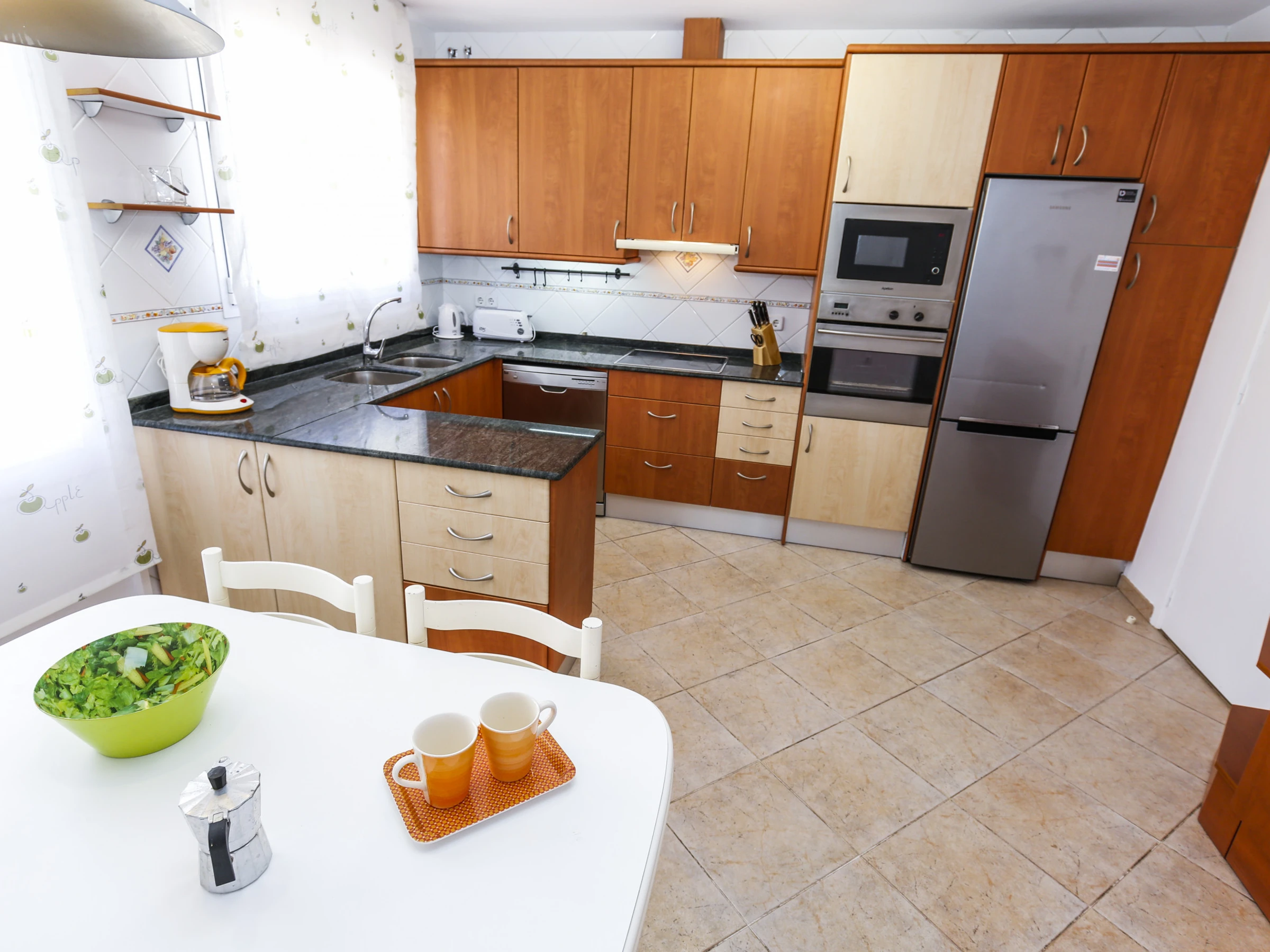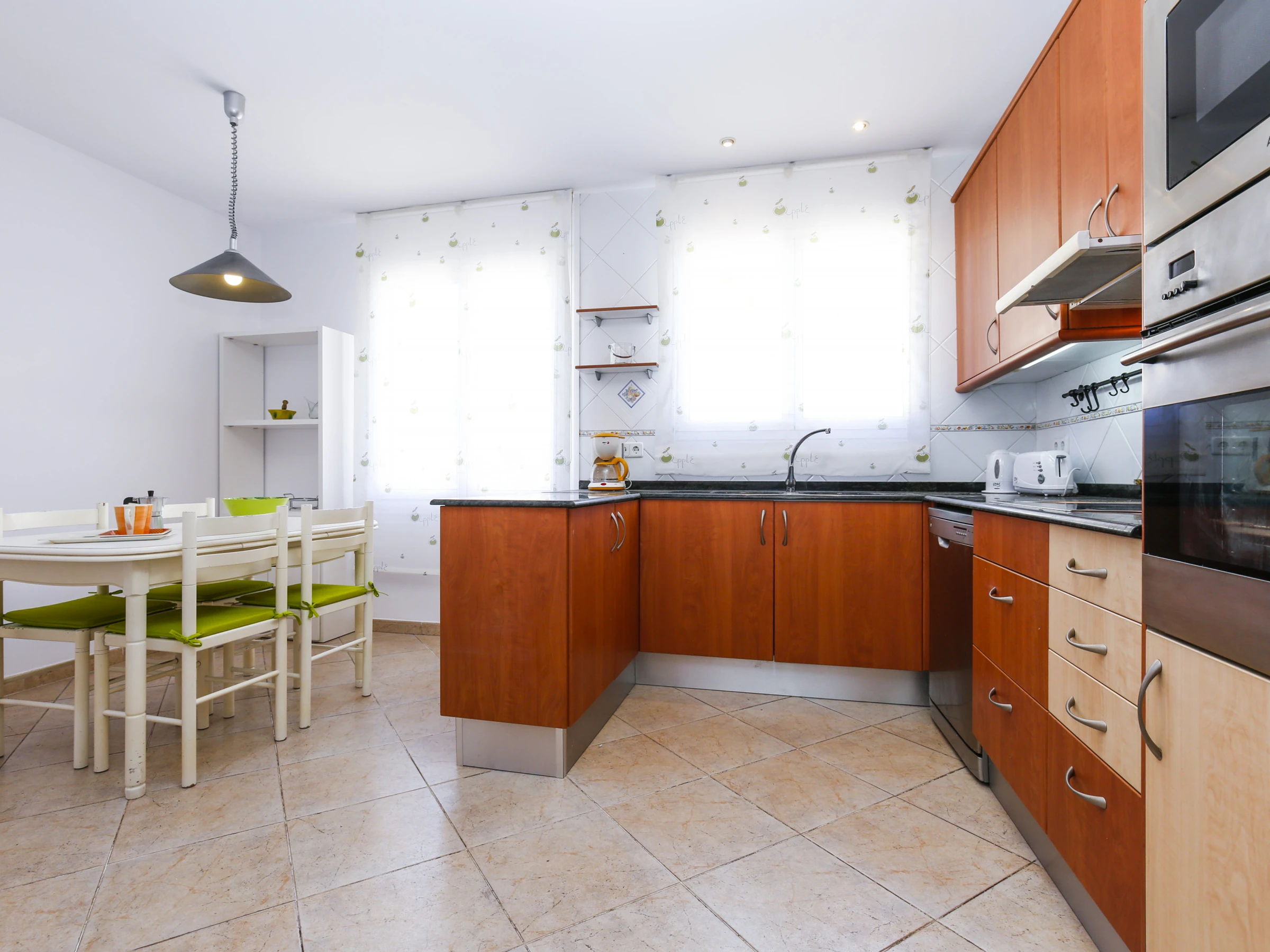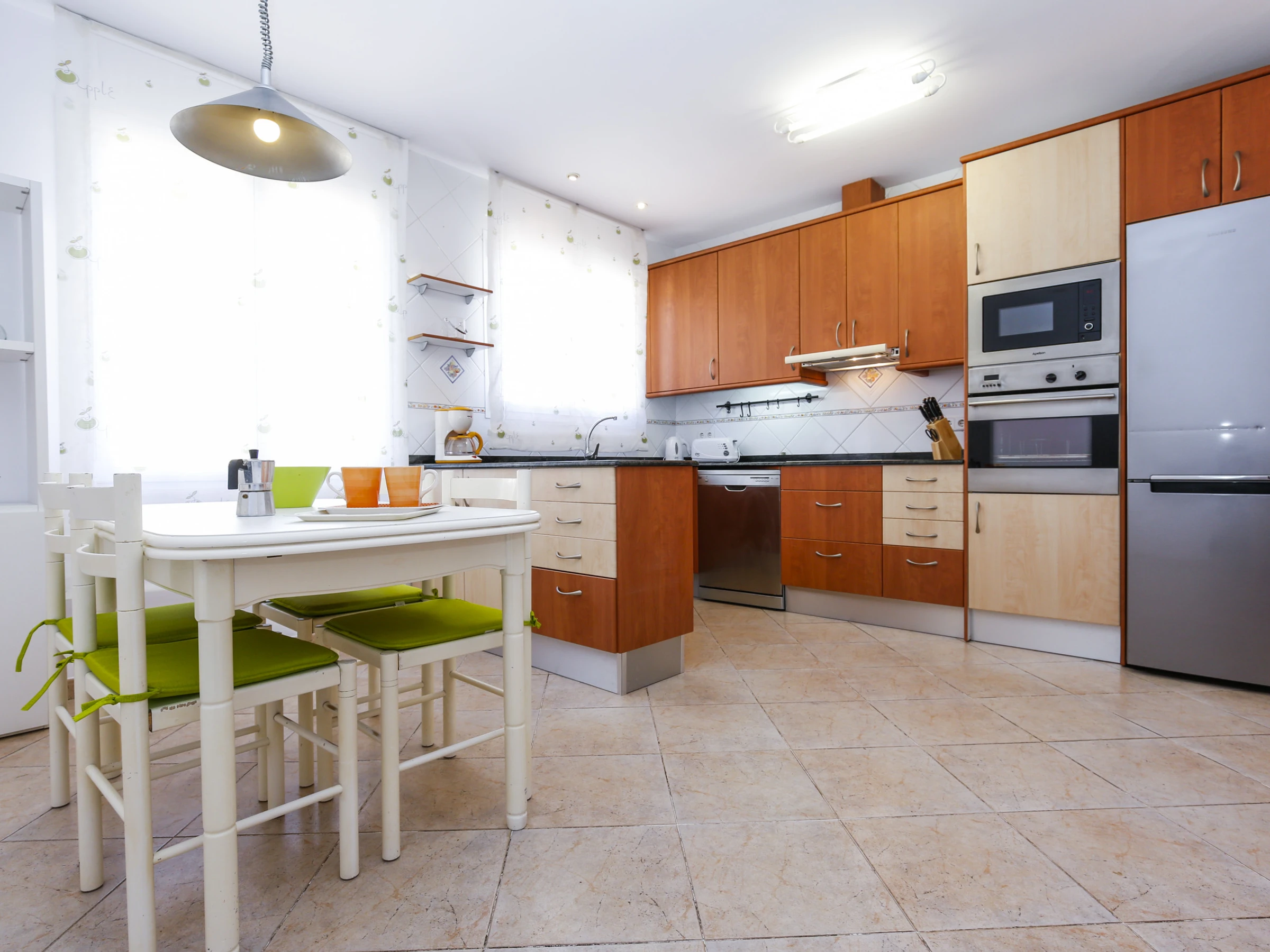 Amplia cocina totalmente equipada con menaje y electrodomésticos, incluido el lavavajillas.