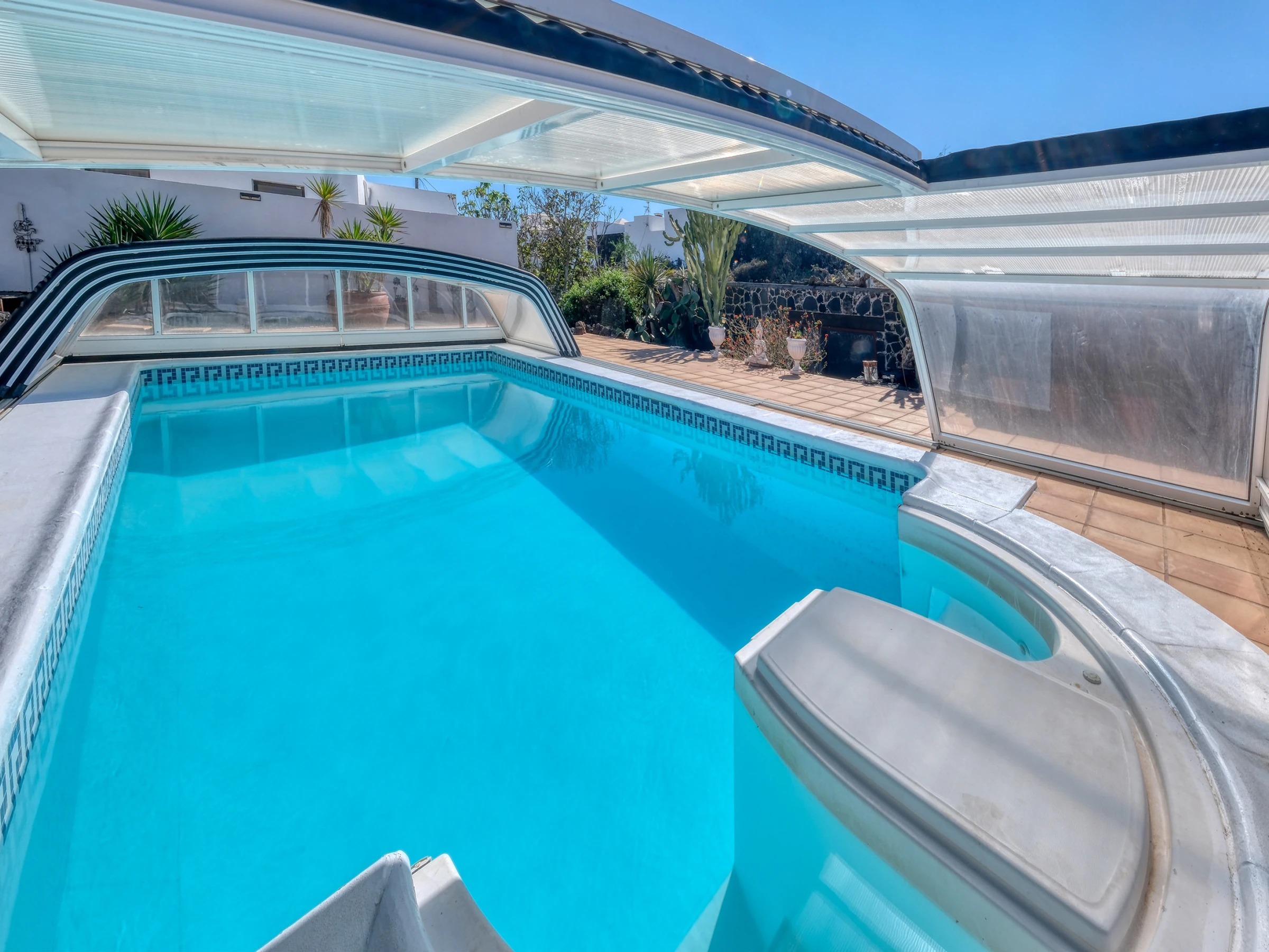El gran atractivo de la casa es su zona exterior, donde podrá disfrutar de una espectacular piscina compartida, cubierta y climatizada de forma natural, lo que permite su uso durante todo el año. En la amplia terraza encontrará hamacas para tomar el sol, además de una acogedora zona de descanso con sofá y mesa, ideal para relajarse o compartir buenos momentos.