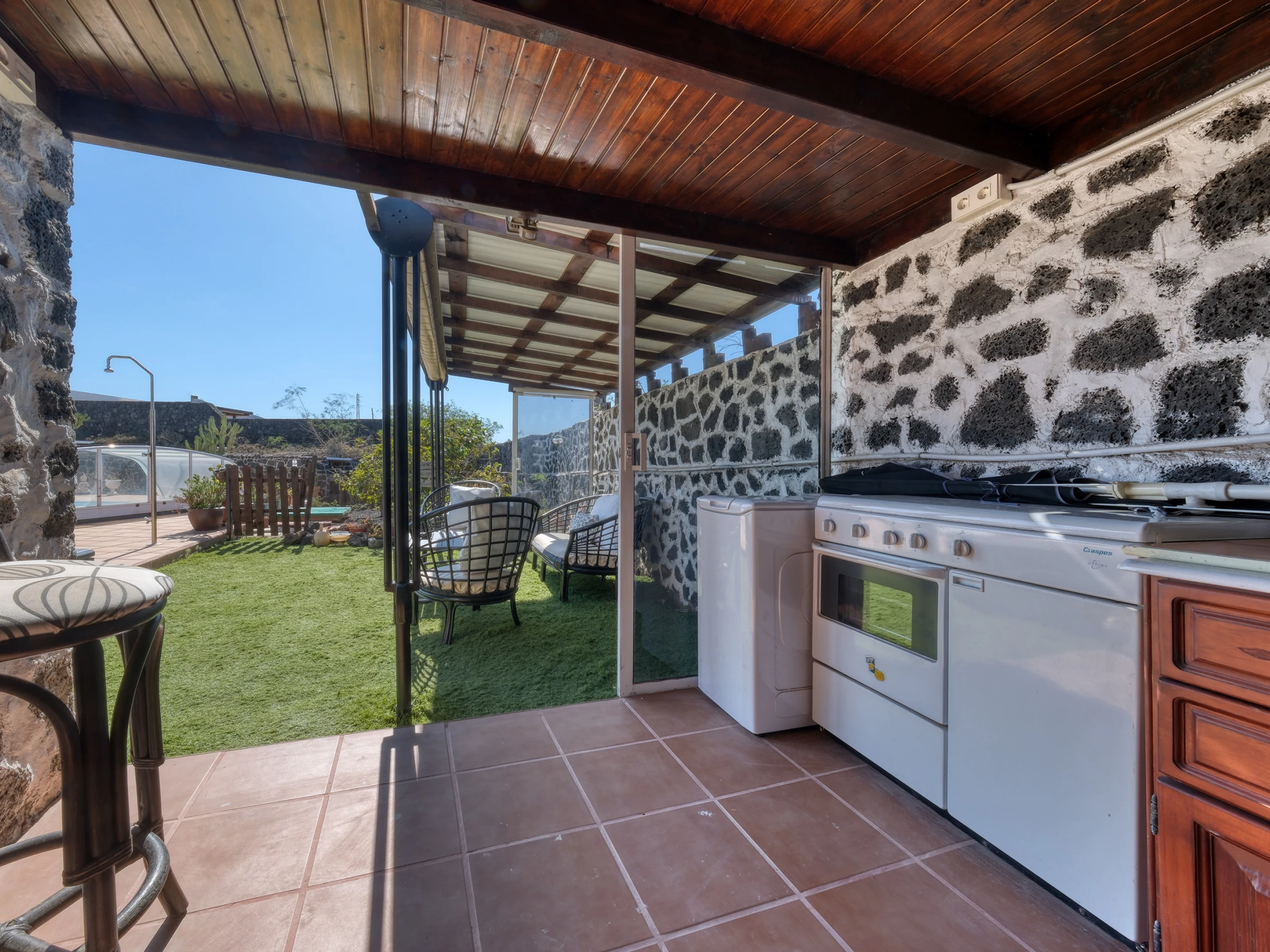 El gran atractivo de la casa es su zona exterior, donde podrá disfrutar de una espectacular piscina compartida, cubierta y climatizada de forma natural, lo que permite su uso durante todo el año. En la amplia terraza encontrará hamacas para tomar el sol, además de una acogedora zona de descanso con sofá y mesa, ideal para relajarse o compartir buenos momentos.