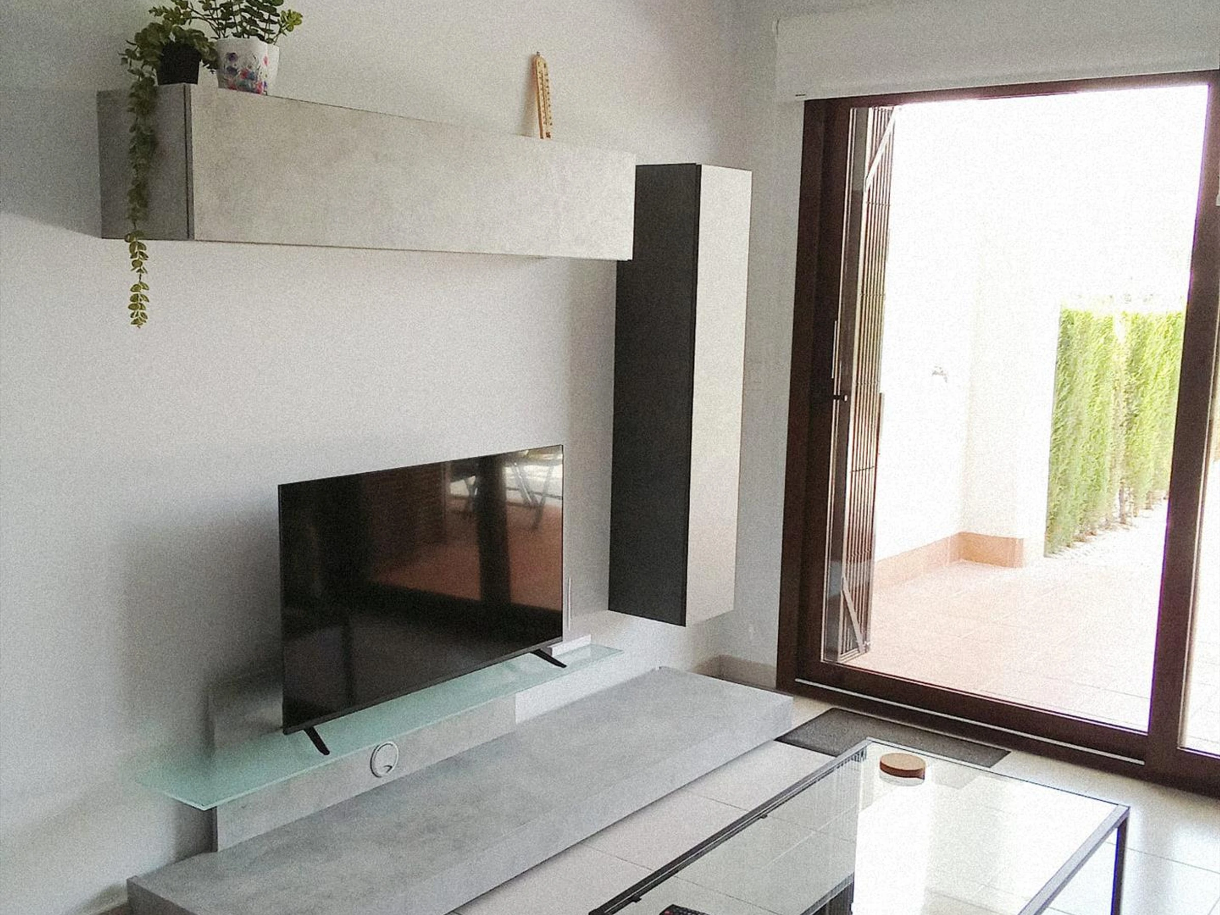* salón de estar con aire acondicionado y televisión
