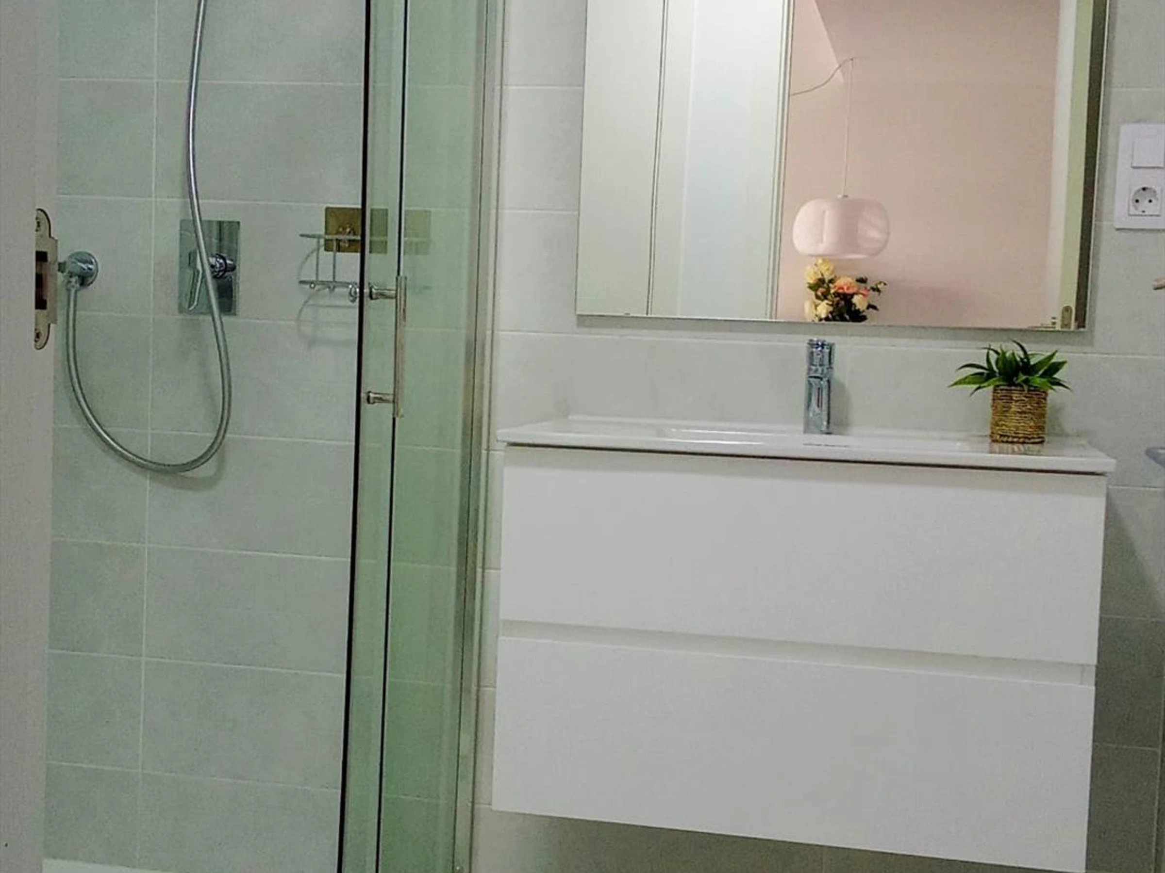 * cuarto de baño en suite con lavabo, ducha, váter y secador de peloExterior