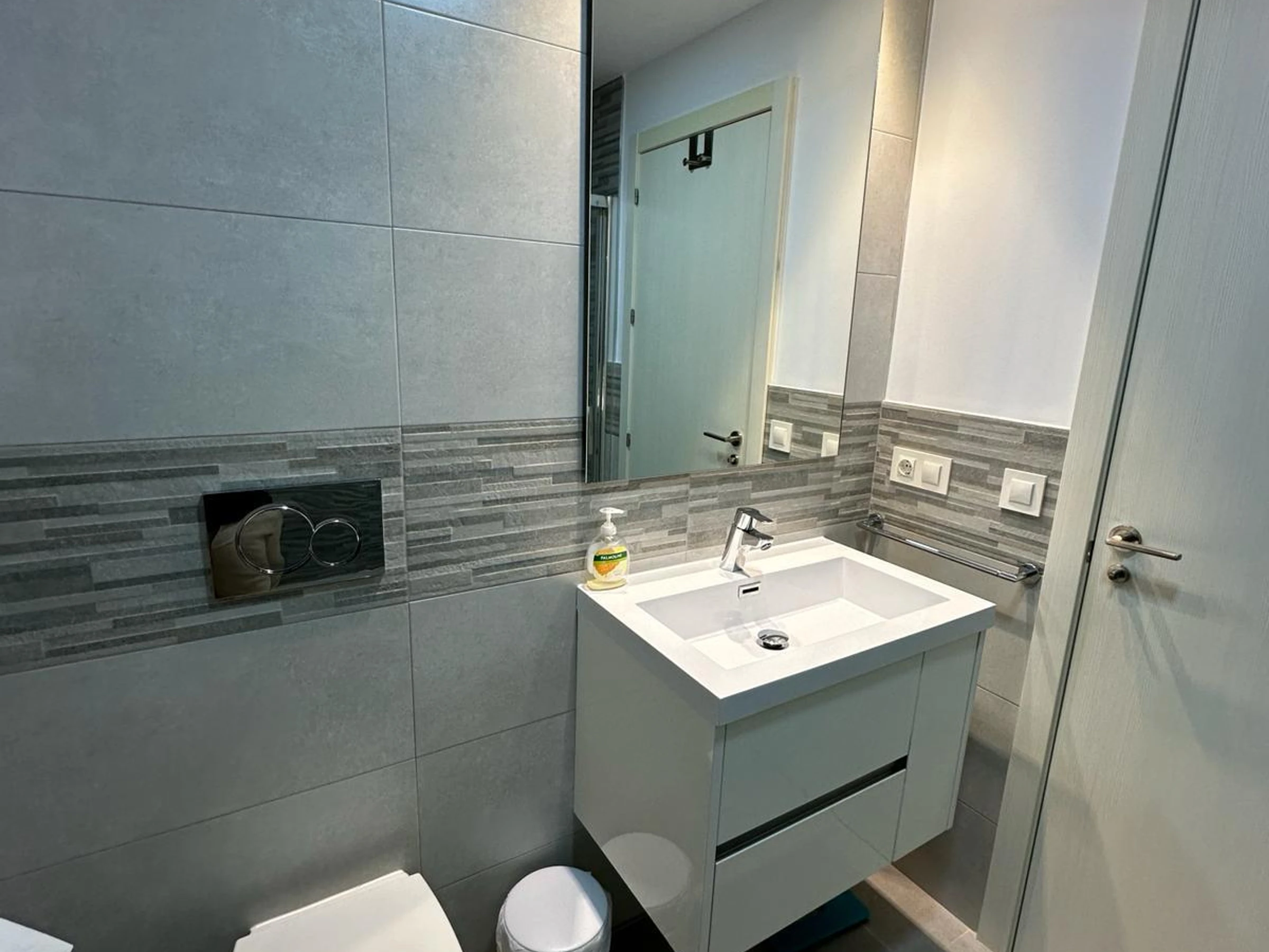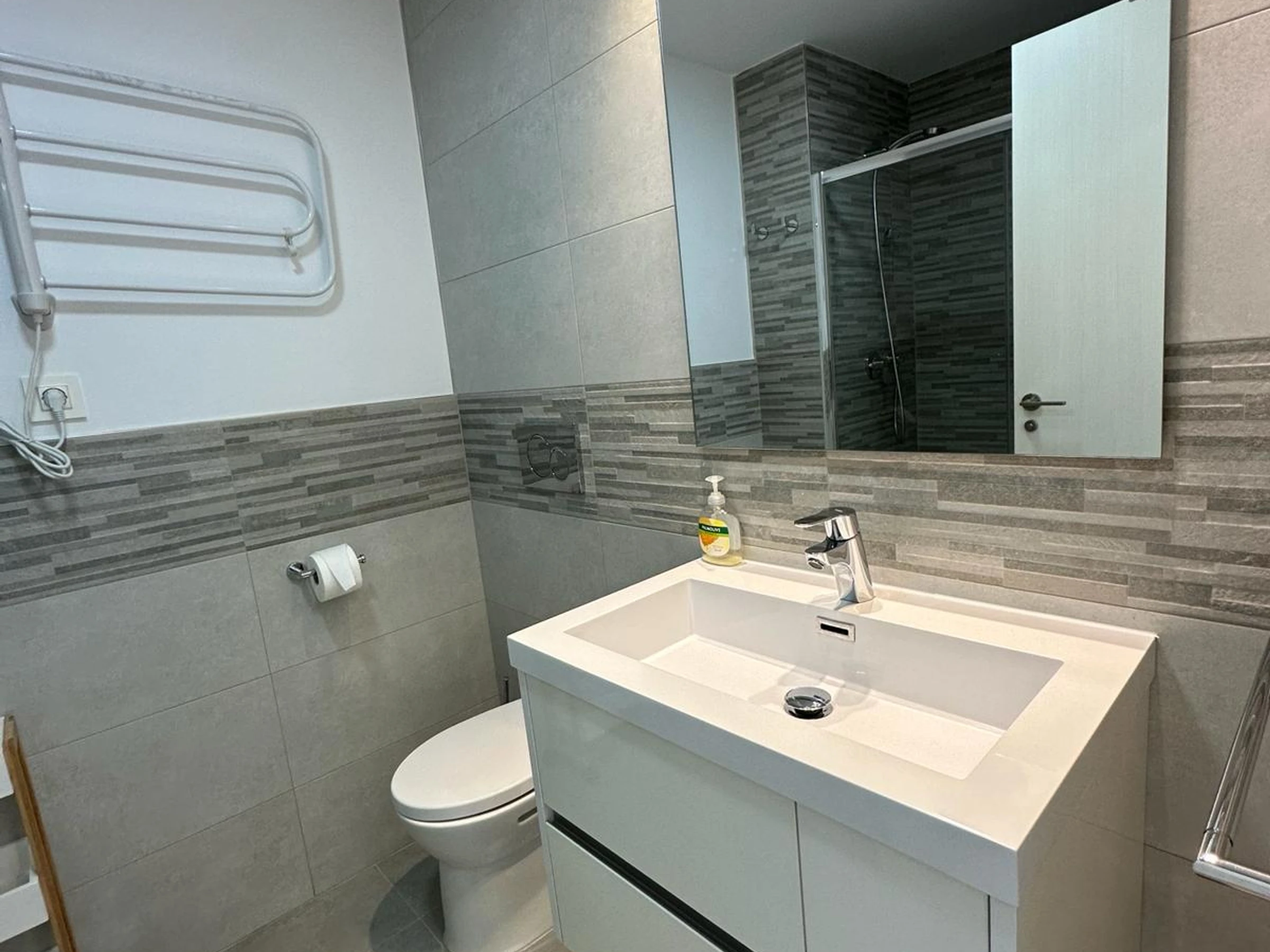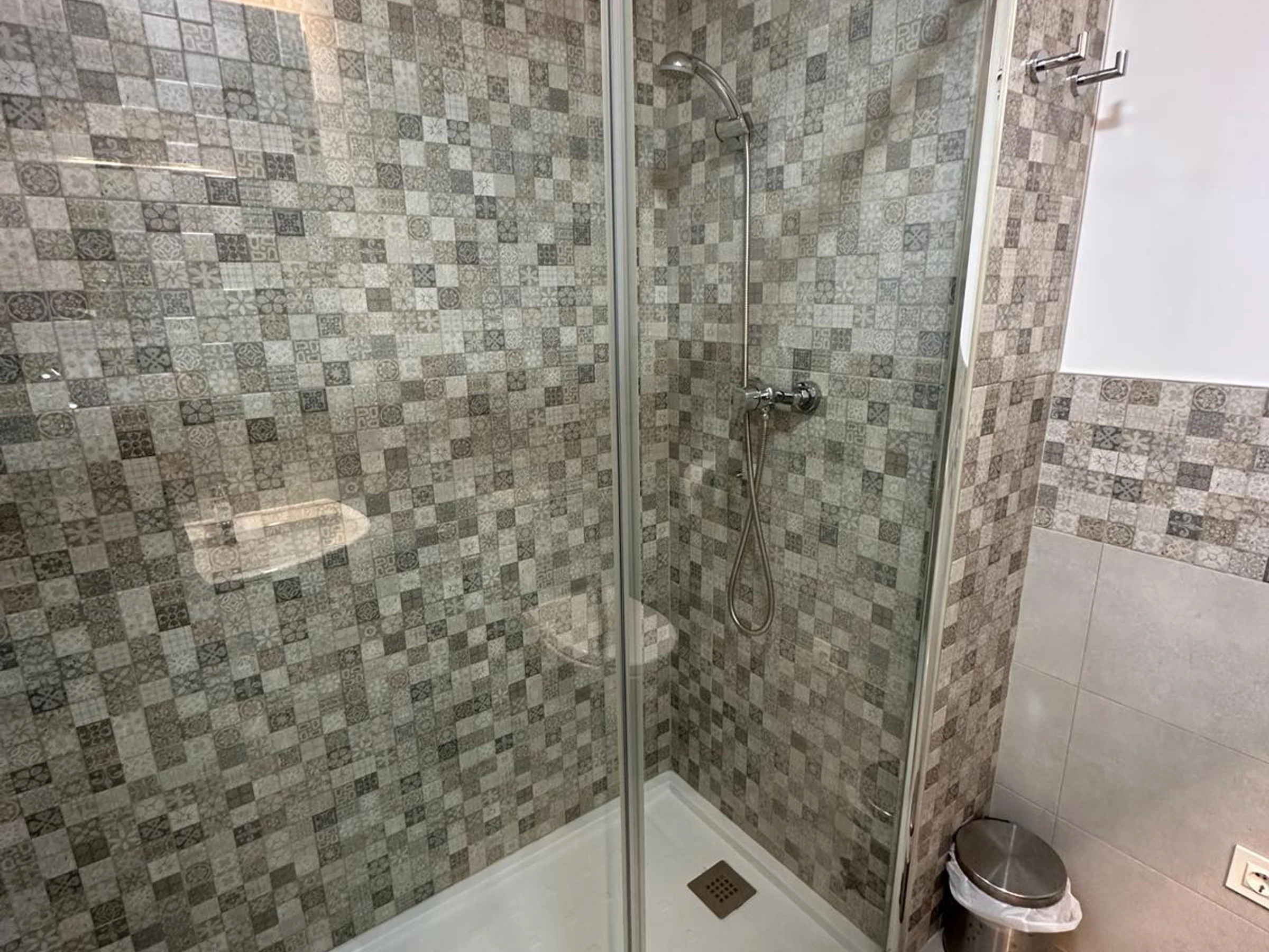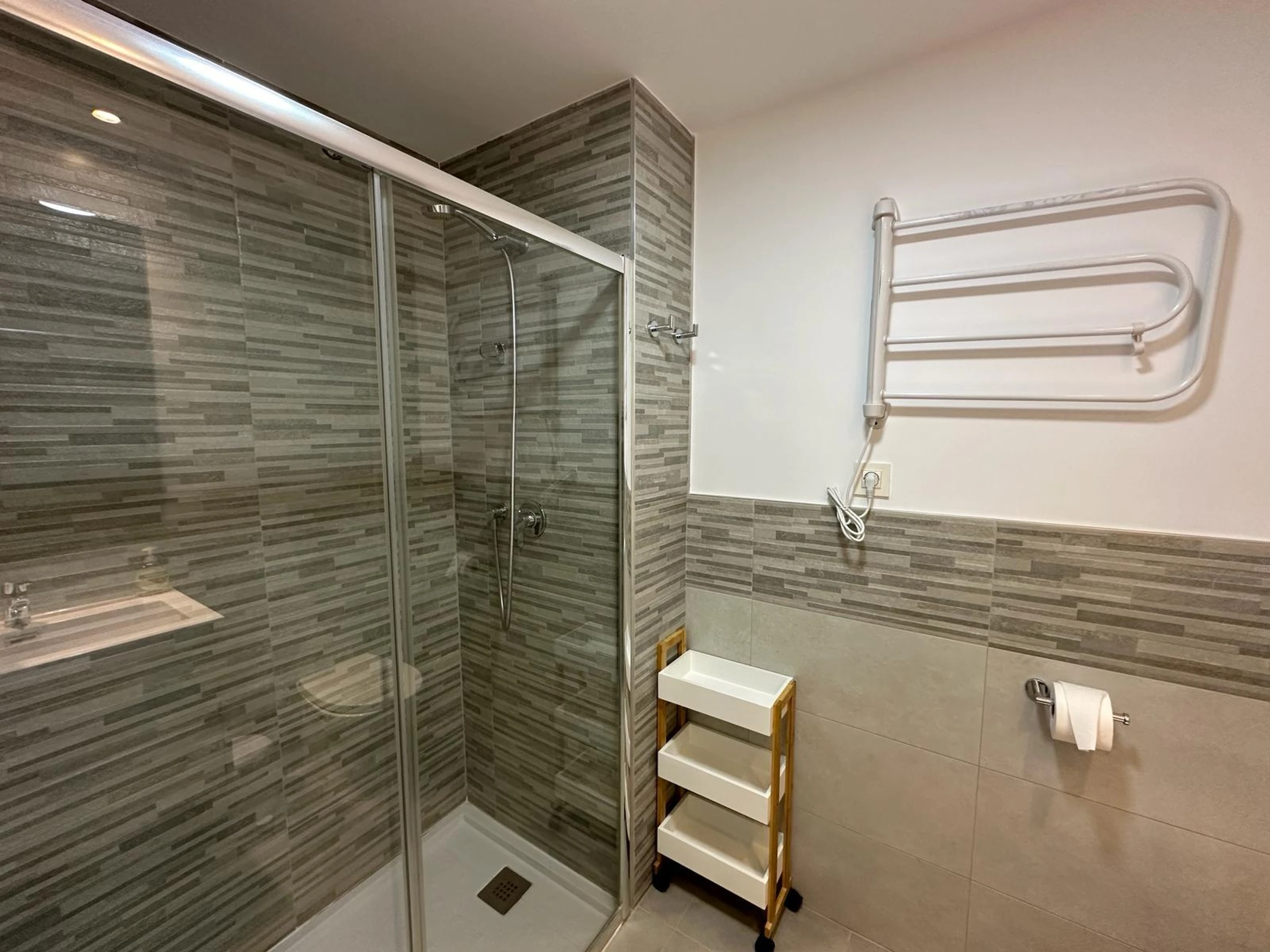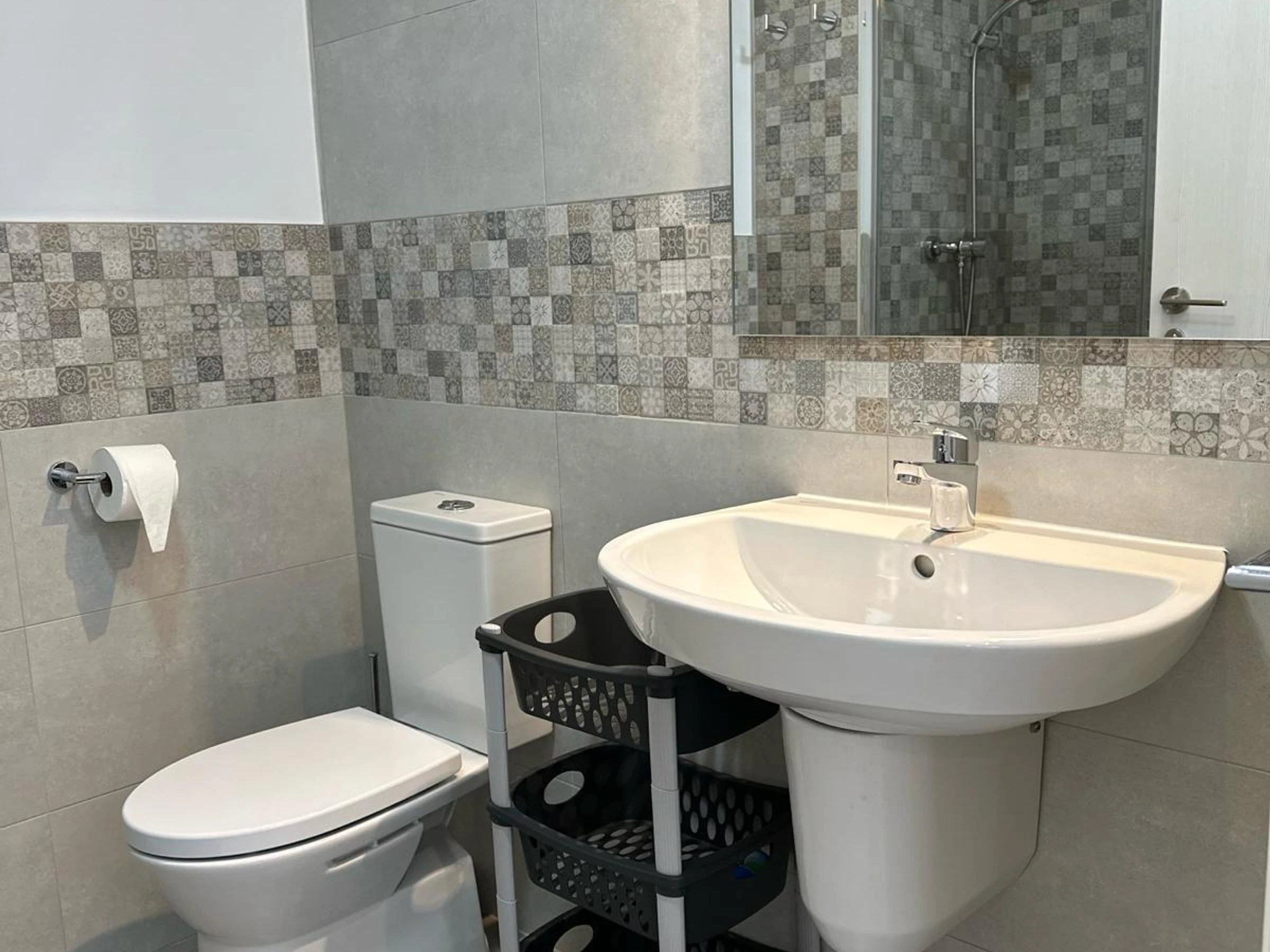 * cuarto de baño con lavabo, ducha y váterExterior del apartamento
