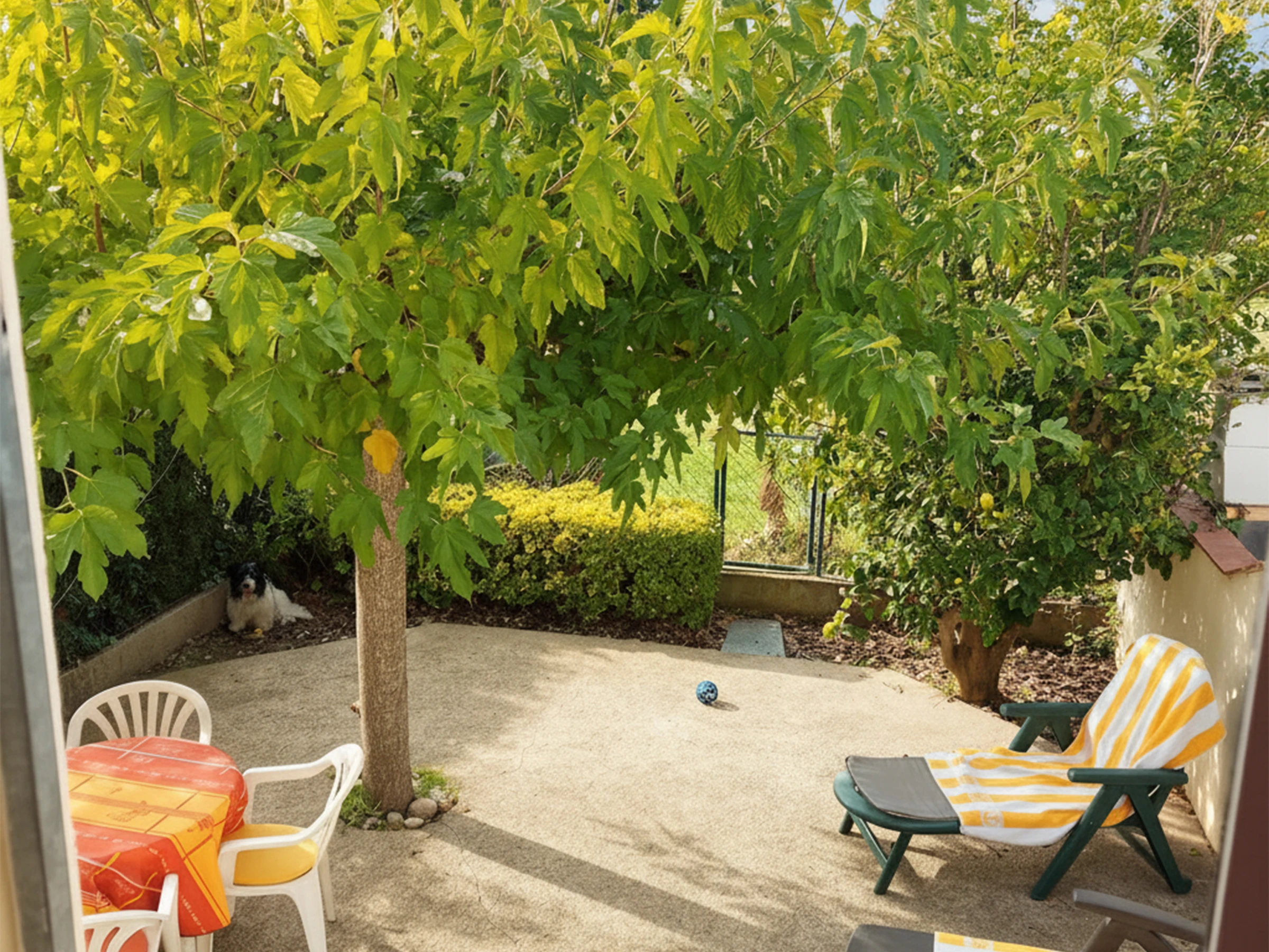 En el exterior, disfruta de una terraza privada, un jardín vallado, tumbonas y una barbacoa, ideal para comer al aire libre y relajarse bajo el sol. La casa también incluye wifi, aire acondicionado, calefacción central, televisión, lavadora y aparcamiento al aire libre delante de la casa.